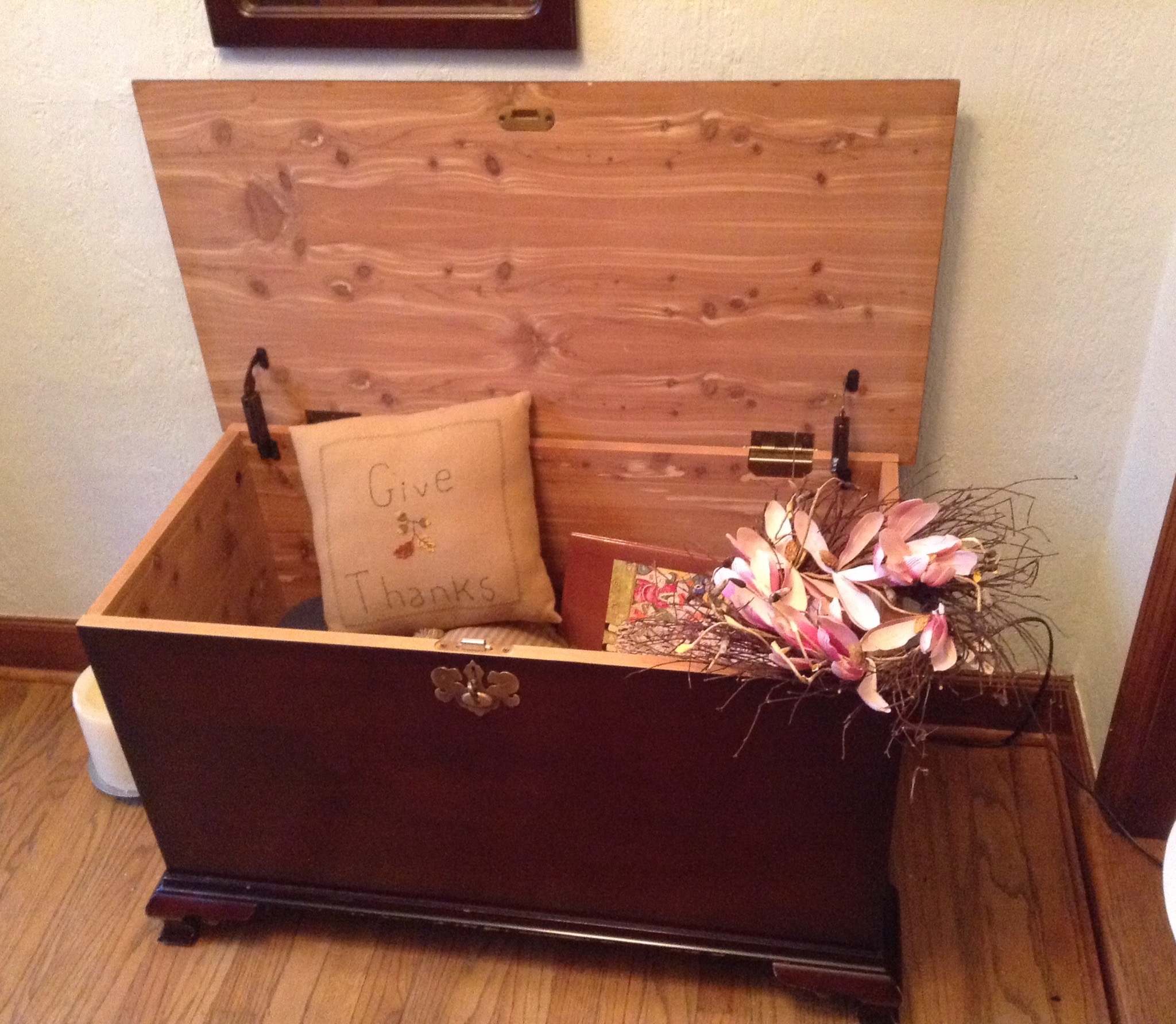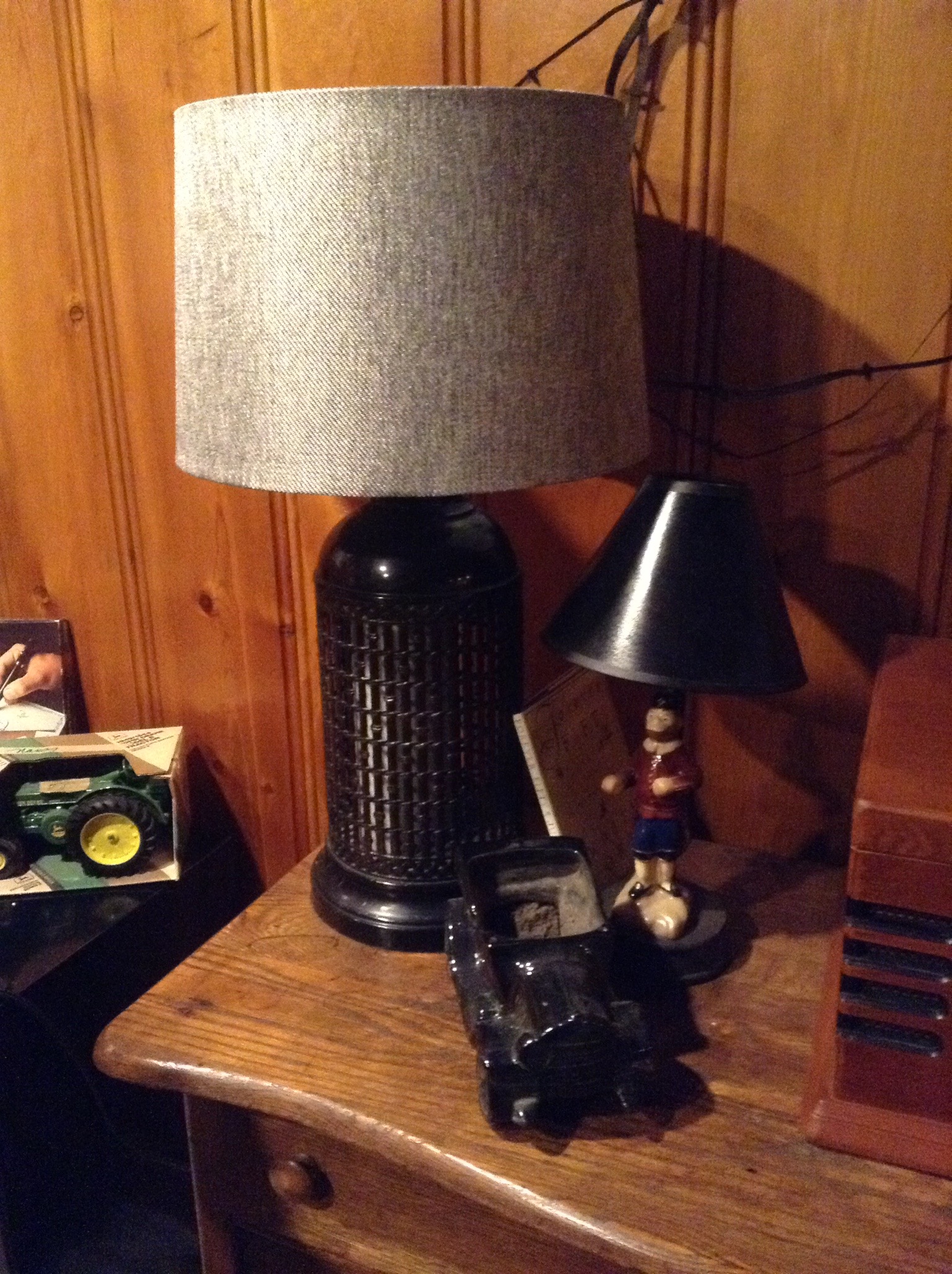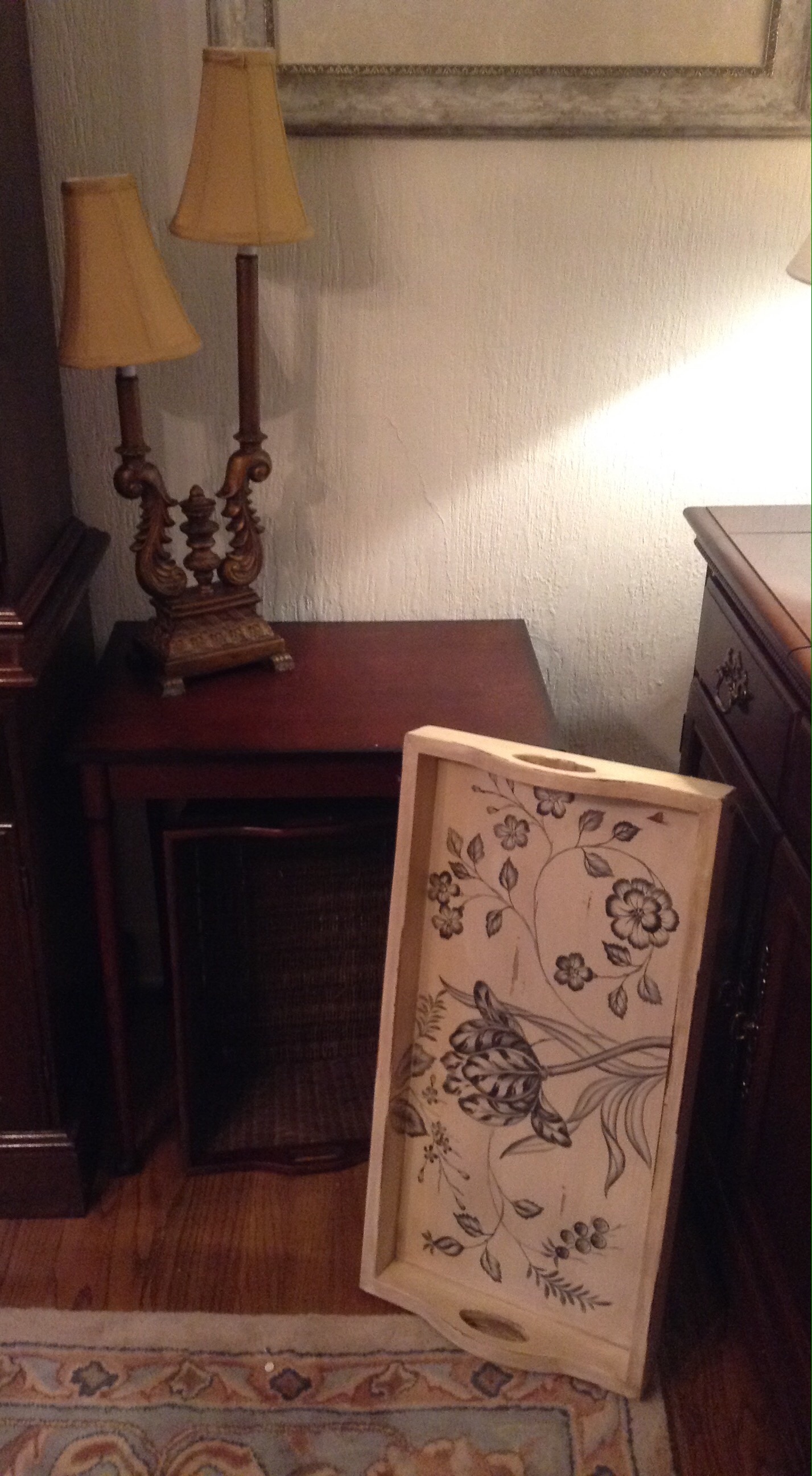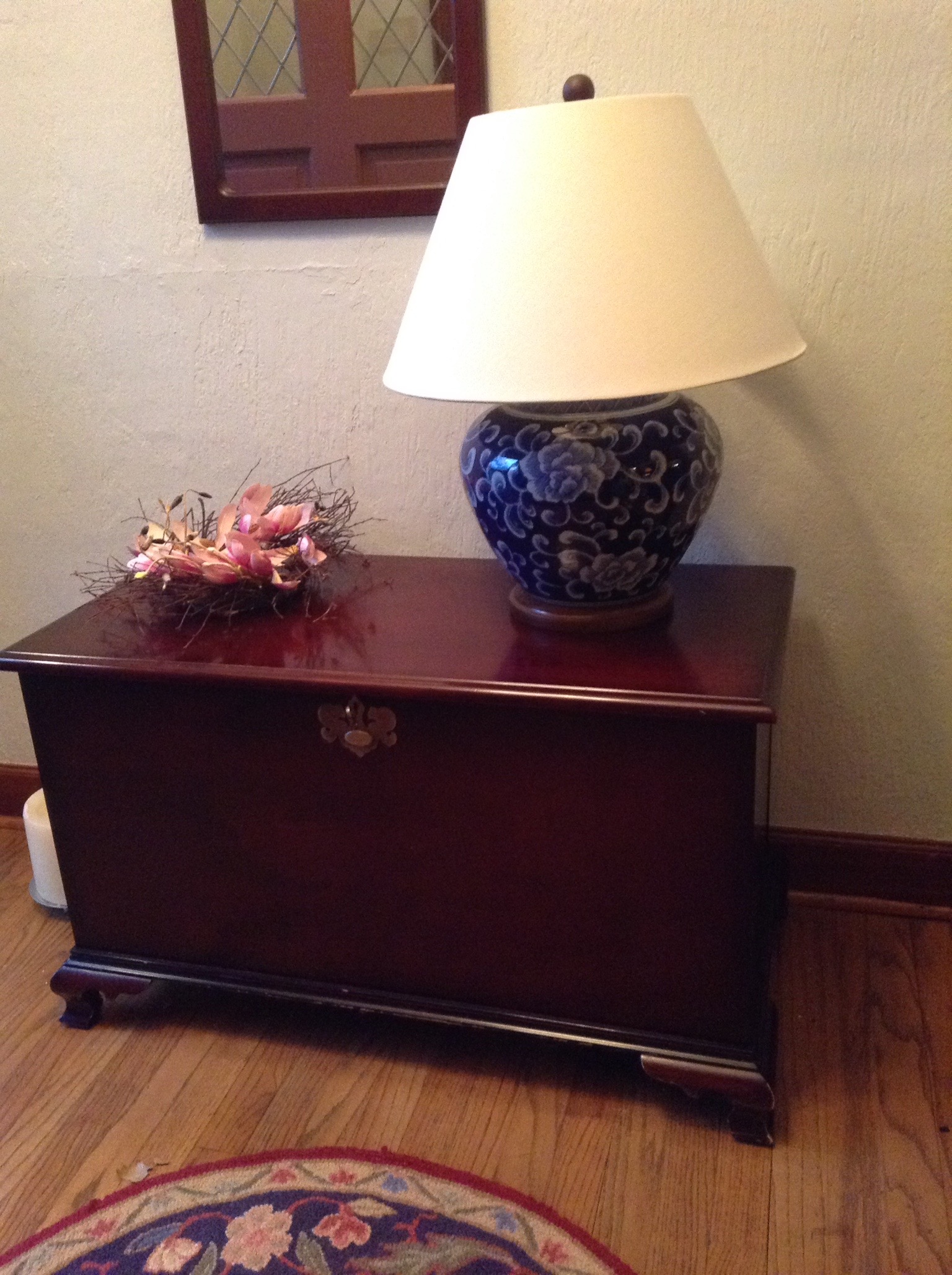 Several tables full of Christmas Spode dishes/serv pcs, framed artwork, Cedar chest, terrific selection of nice lamps, decorative Holiday Houses …