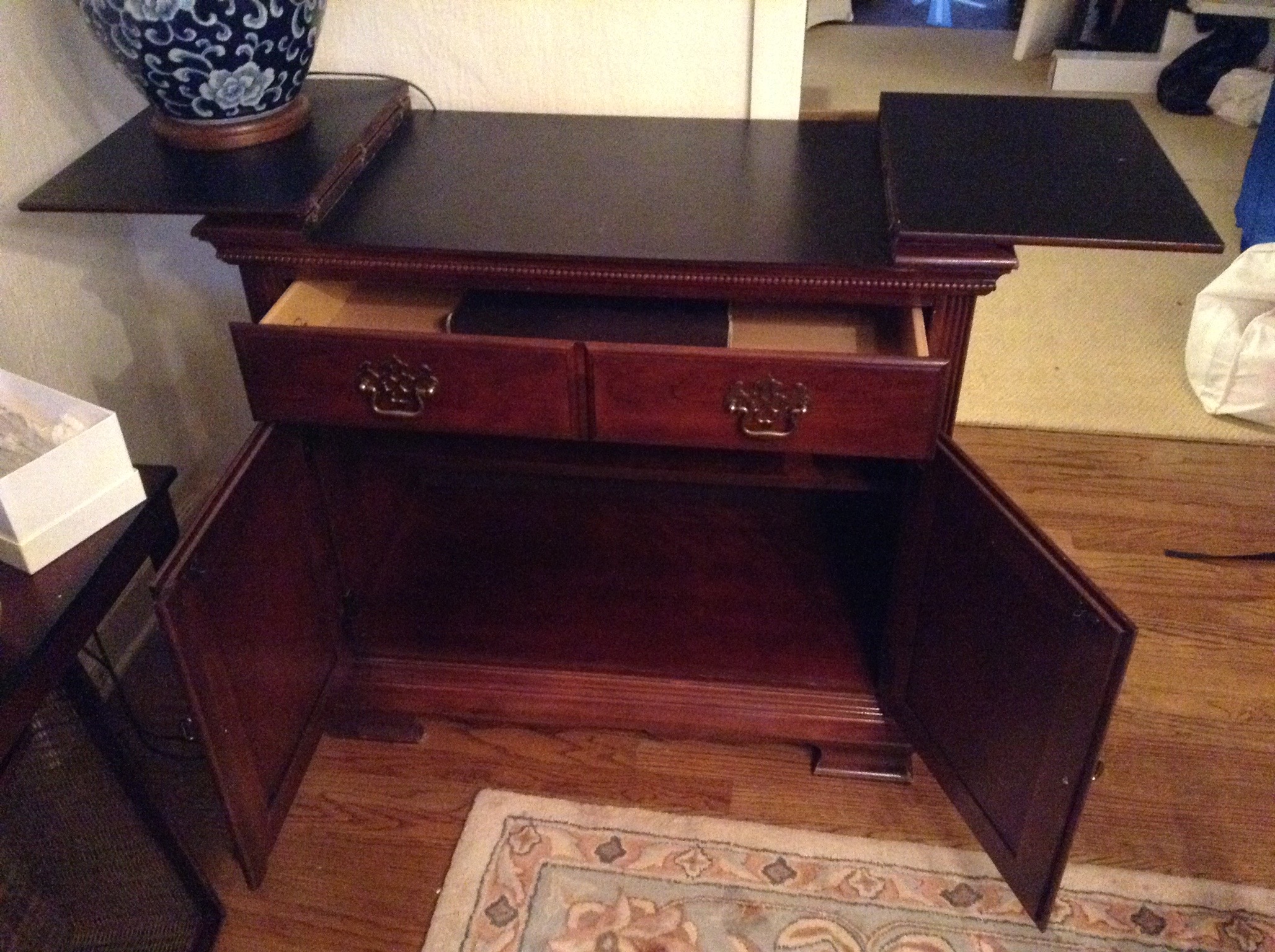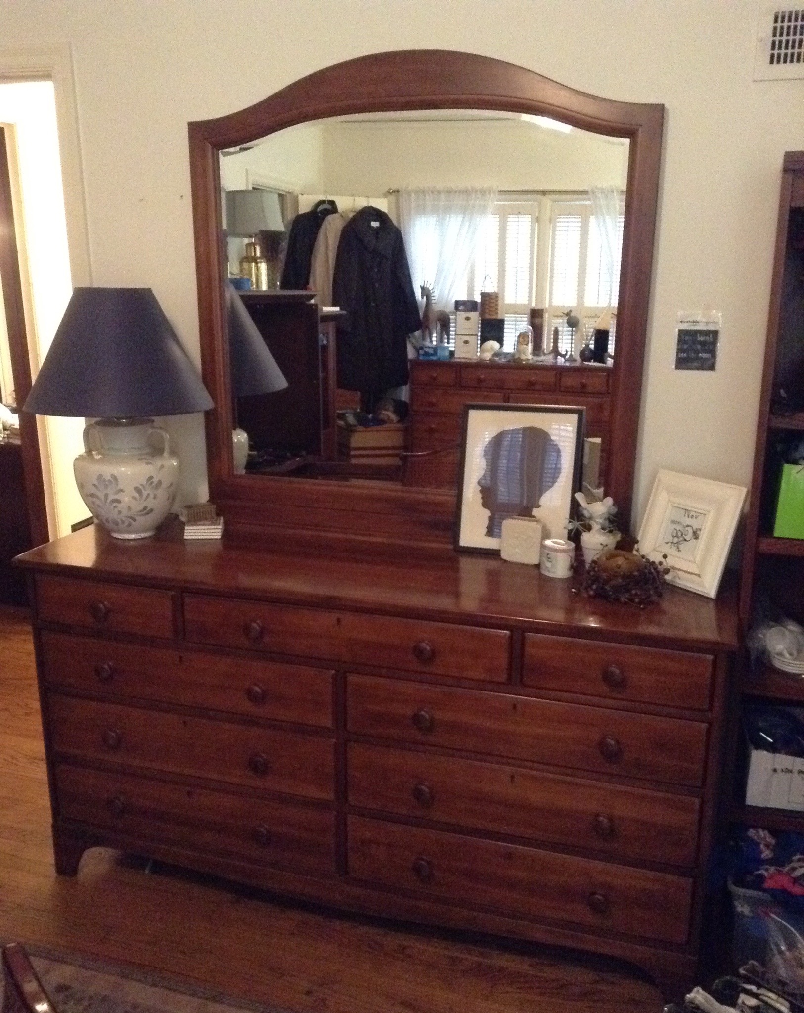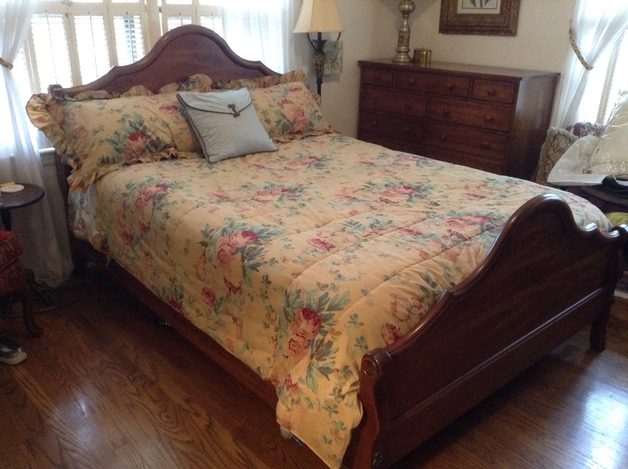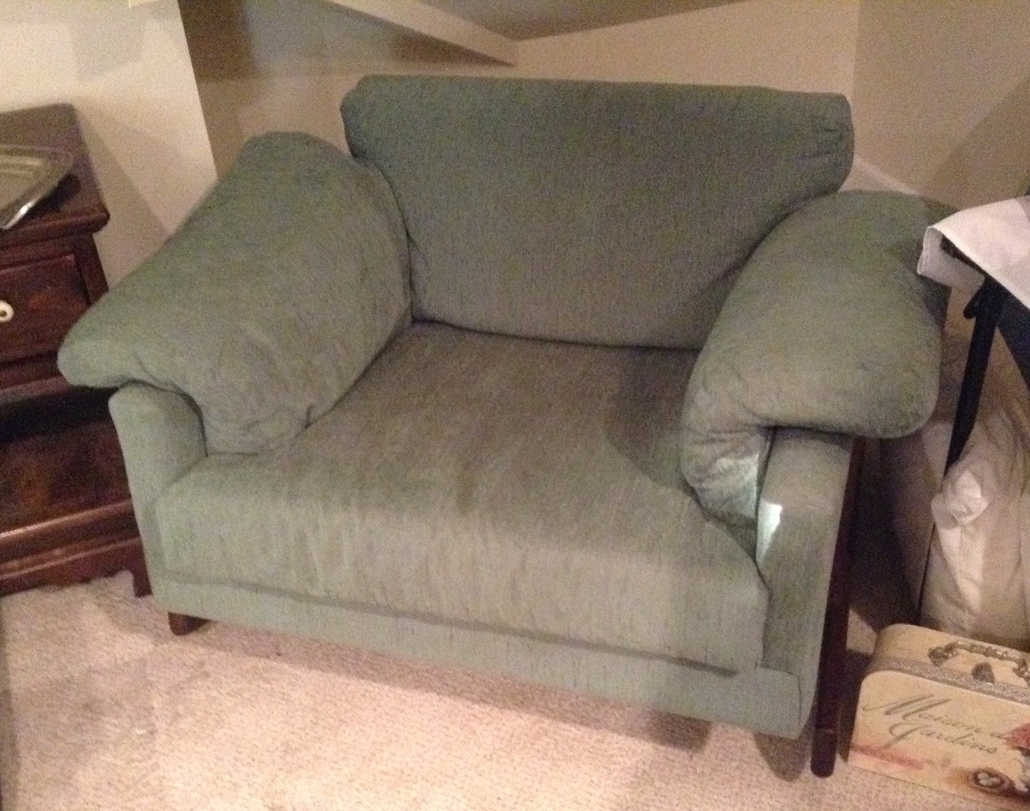 To begin, we have a good deal of recently purchased furniture – Martha Stewart Bradyn Leather sofa, loveseat, long otto and recliner ~ Restoration Hardware eggshell sofa with down cushions, Durham Queen bedroom set (bed, dresser w mirror and chest) …
