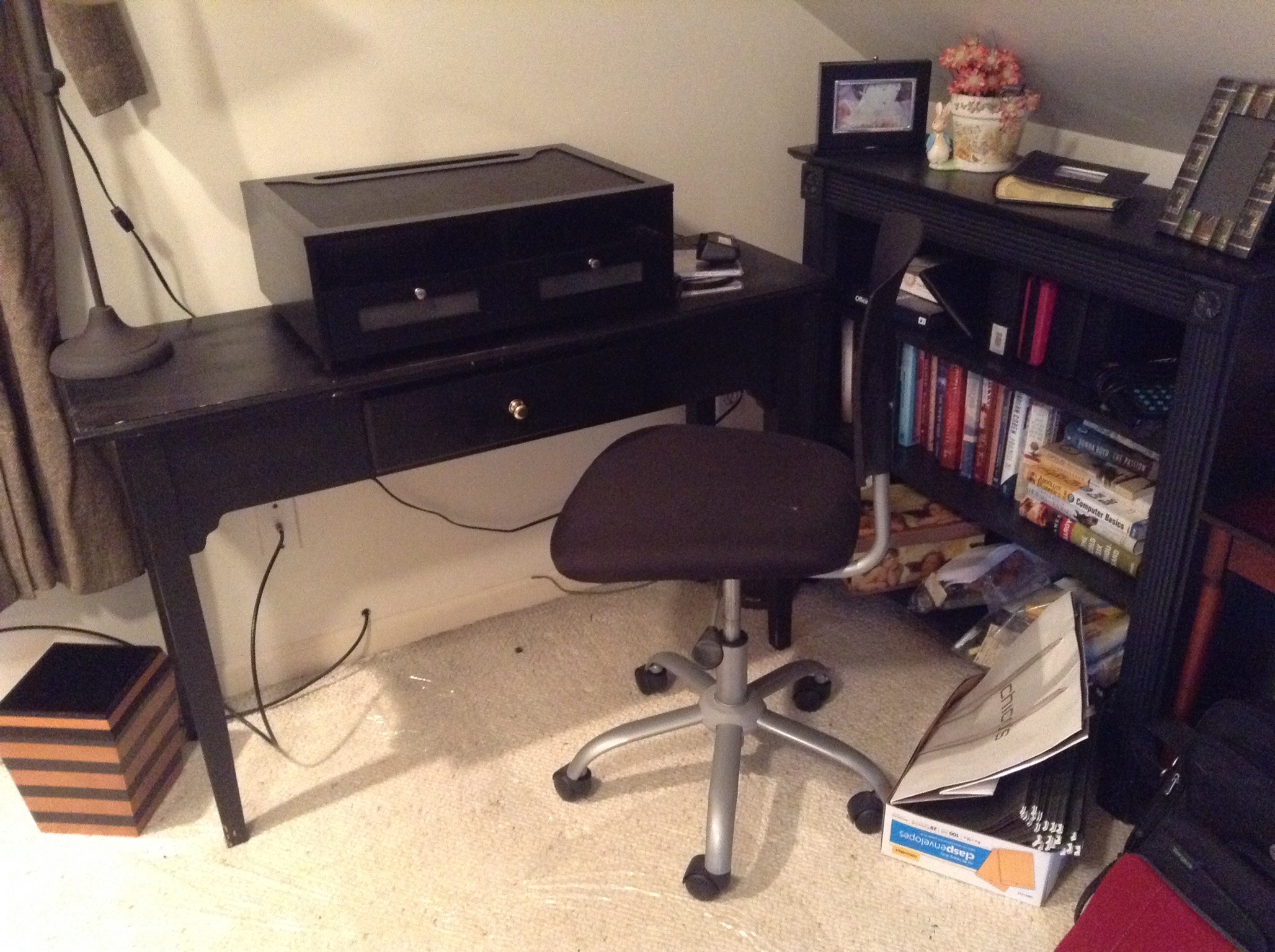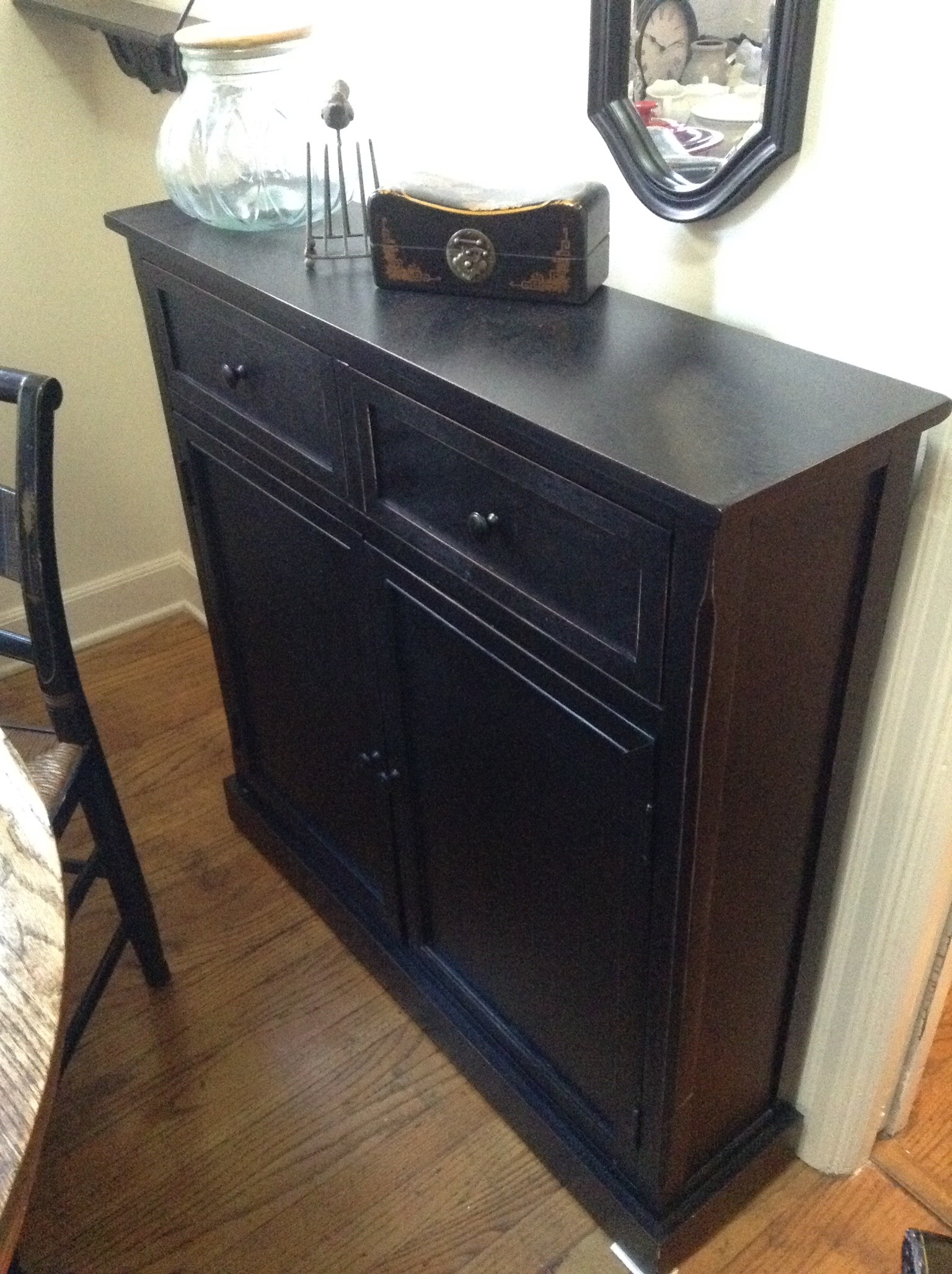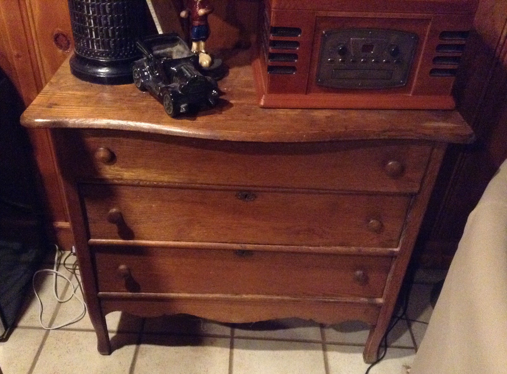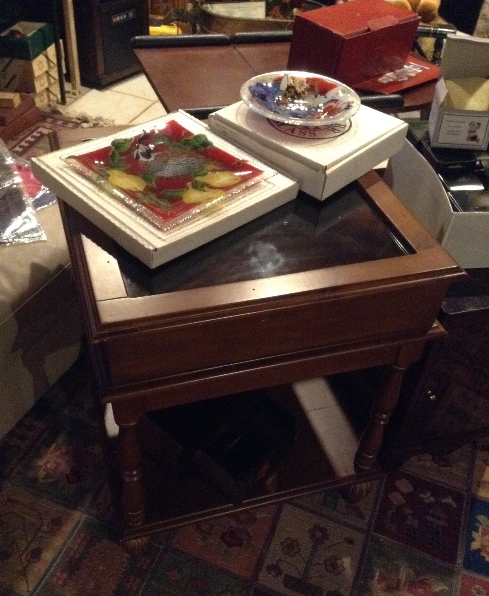 Glass front secretary, antique 3 drawer chest, glass top/wood display side tables, and, great selection of side tables, medium chests and shelf units …