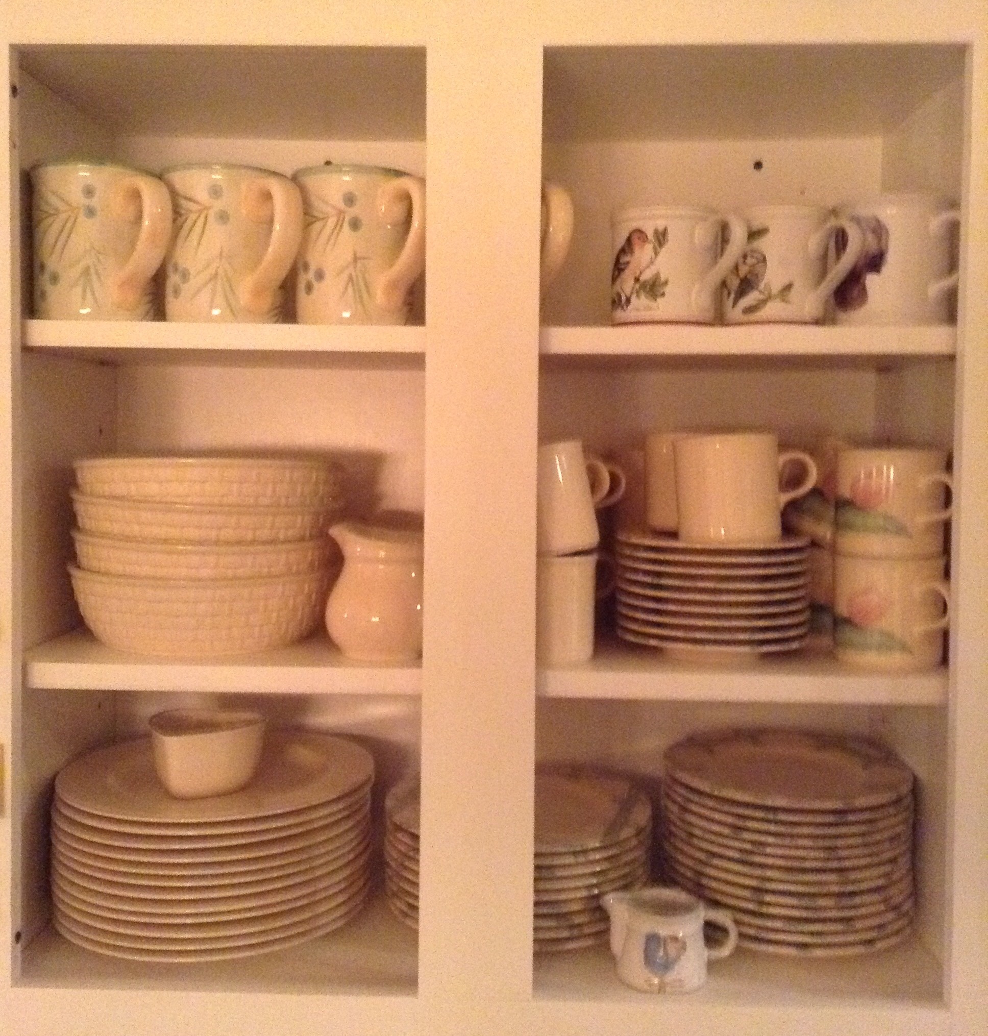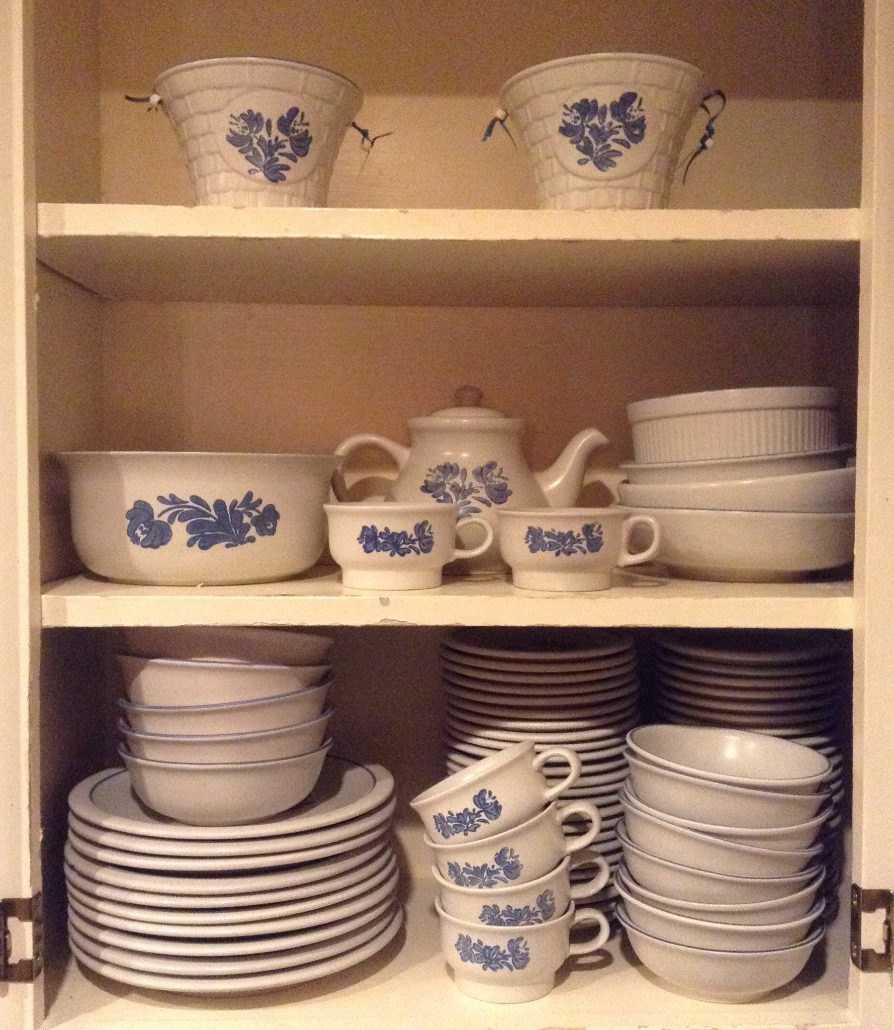 Fantastic selection of All Clad and other nice pots/pans, cabinets full of yellow Pflatzgraff dishes/serv pcs as well as the blue accented Yorktown Pfaltzgraff dishes/ serv pcs …