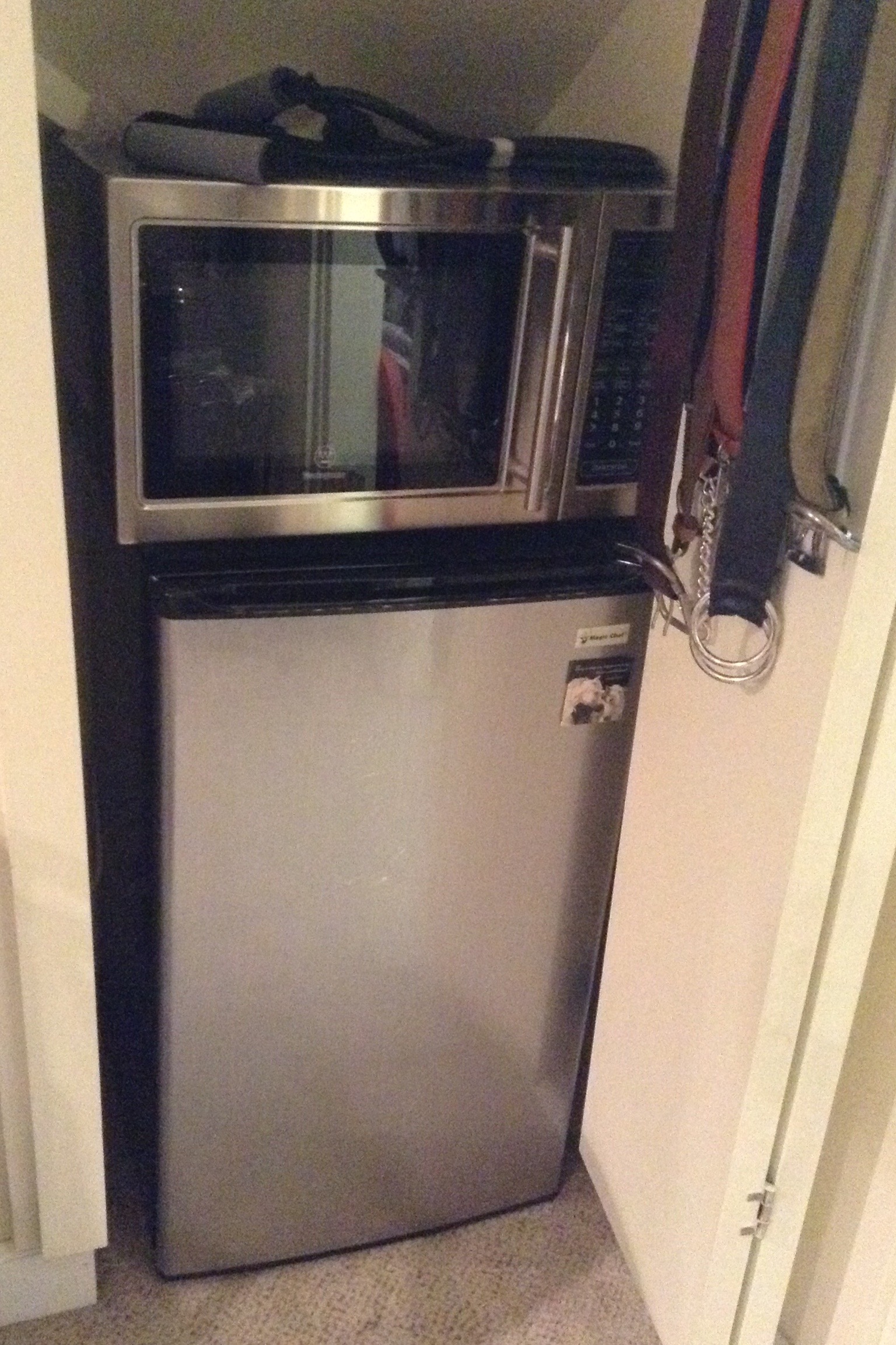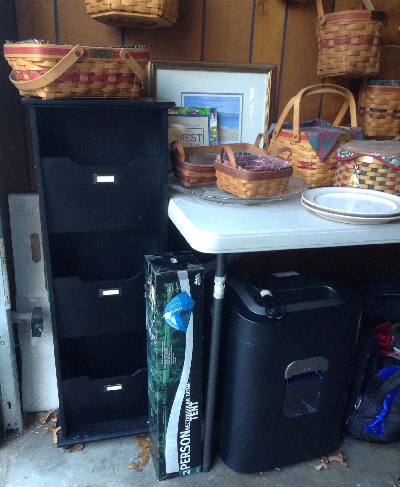 2 tall dorm size fridges, 2 microwaves, many space heaters, fans, fabric bolts and bundles, sewing notions and sewing machine, old sewing chest, paper shredder, 2 person tent new in box …