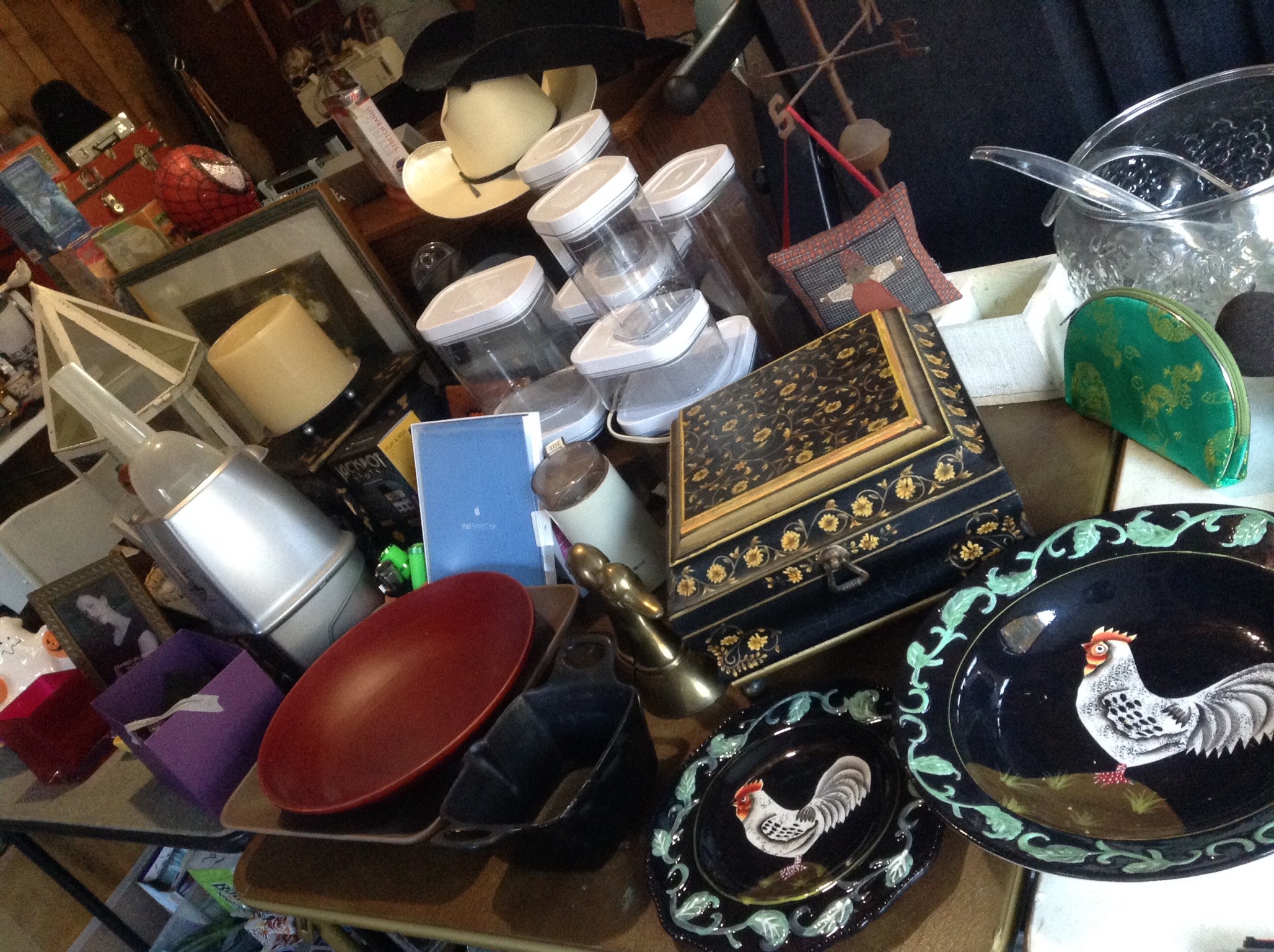 Andacourse TABLES full of home décor and stuff and BOXES full of $3.00 bags …