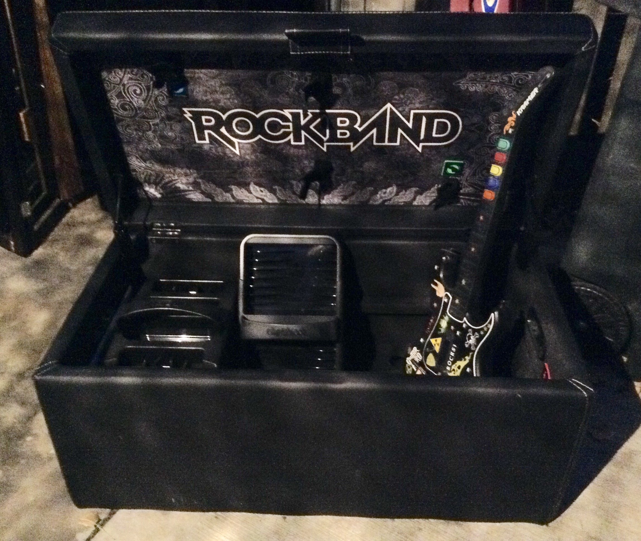 Sifteo game, Jaminator Toy Guitar Synthesizer, Kramer Rockband guitar, Rock Band black storage bench, Logitech game amp, more games …