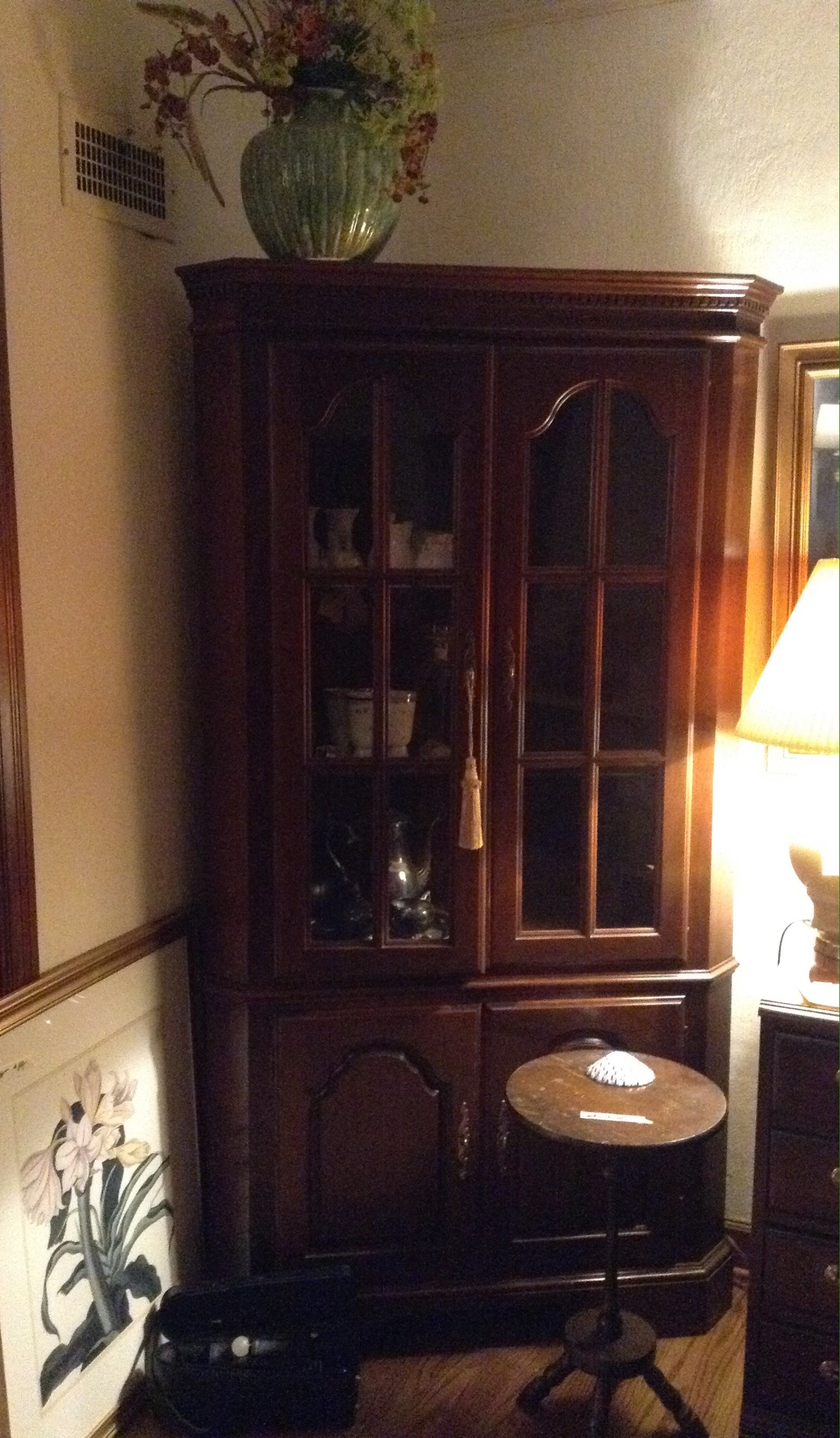 Corner glass front hutch …