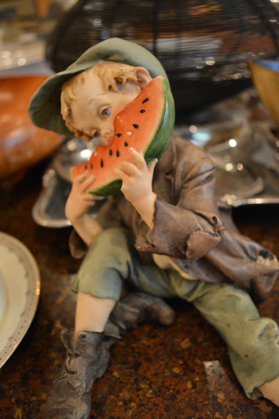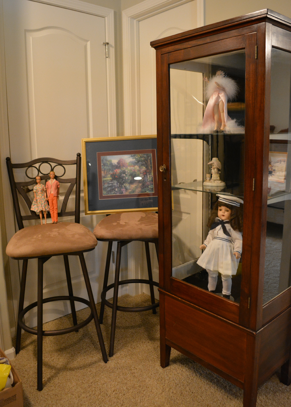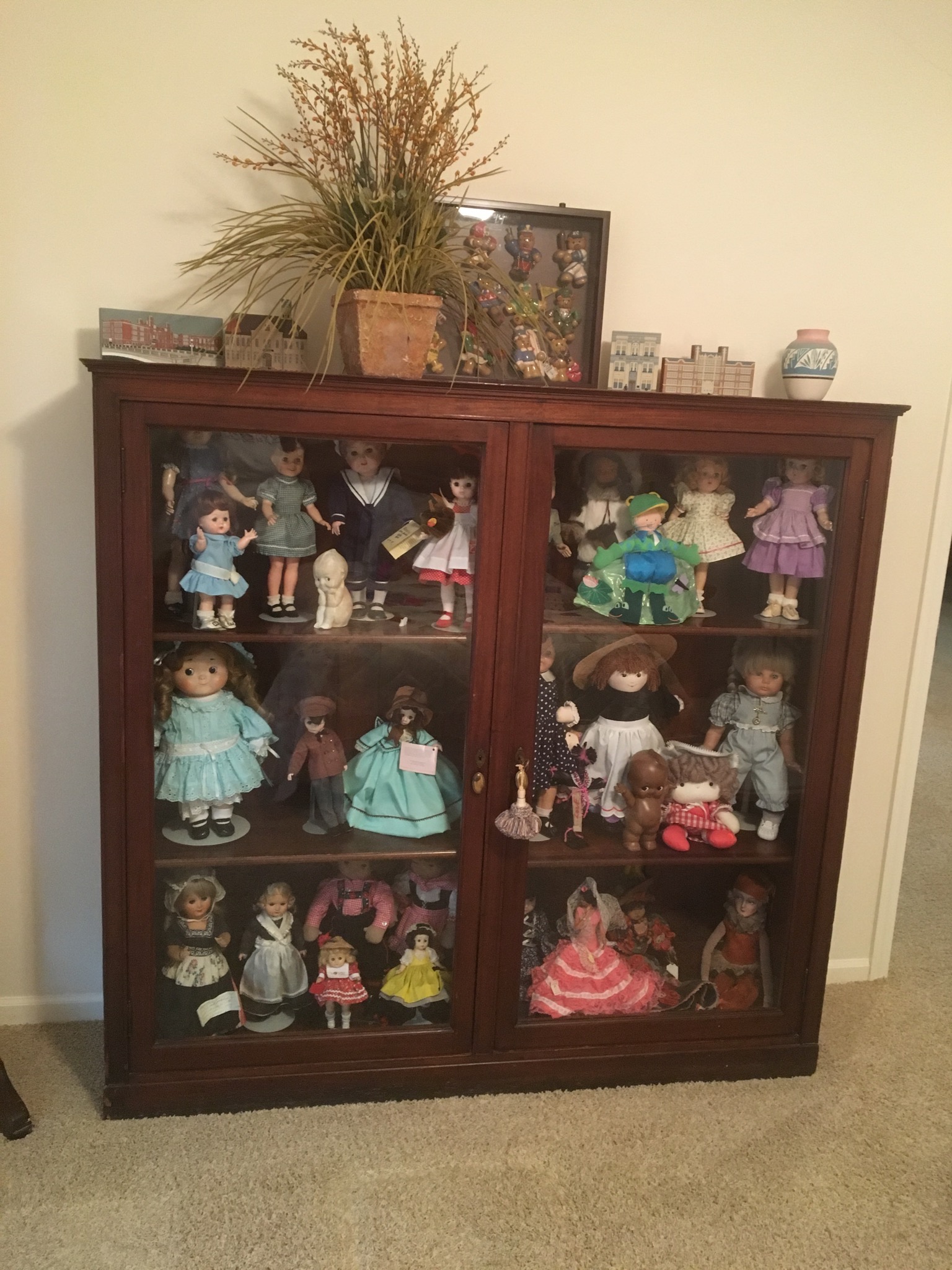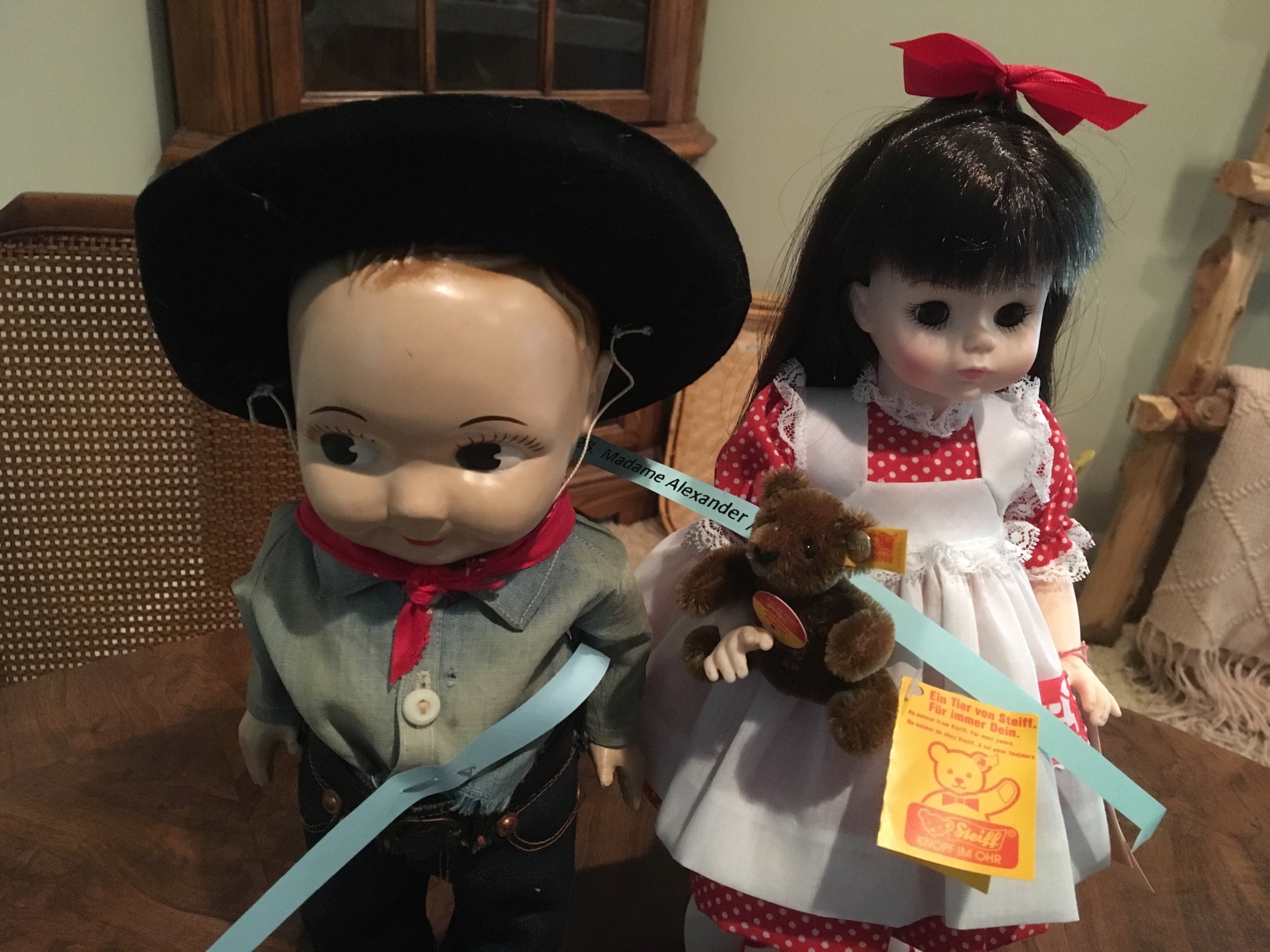 DOLLLLLLS — yowza, what a fun collection! Just a sampling: Madame Alexander, Kewpies, celluloid souvenir dolls, Effanbee, large Compo doll, 1957 Ideal Shirley Temple, wig head Barbie, 1963 Ken, German boy, Madame Alexander Steiff, porcelain Dolly Dingle, Buddy Lee, Zapf, Nancy Anns (wait, that’s me!), Russian Matryoshka, Ideal Tonis, large Raggedy Ann and Andy, Simpich elves, Hummel, Betsy Wetsys (quite the concept), porcelain Betty Boop, Stupsi, Lenci … well over 150 to add to your collection or spark a memory!