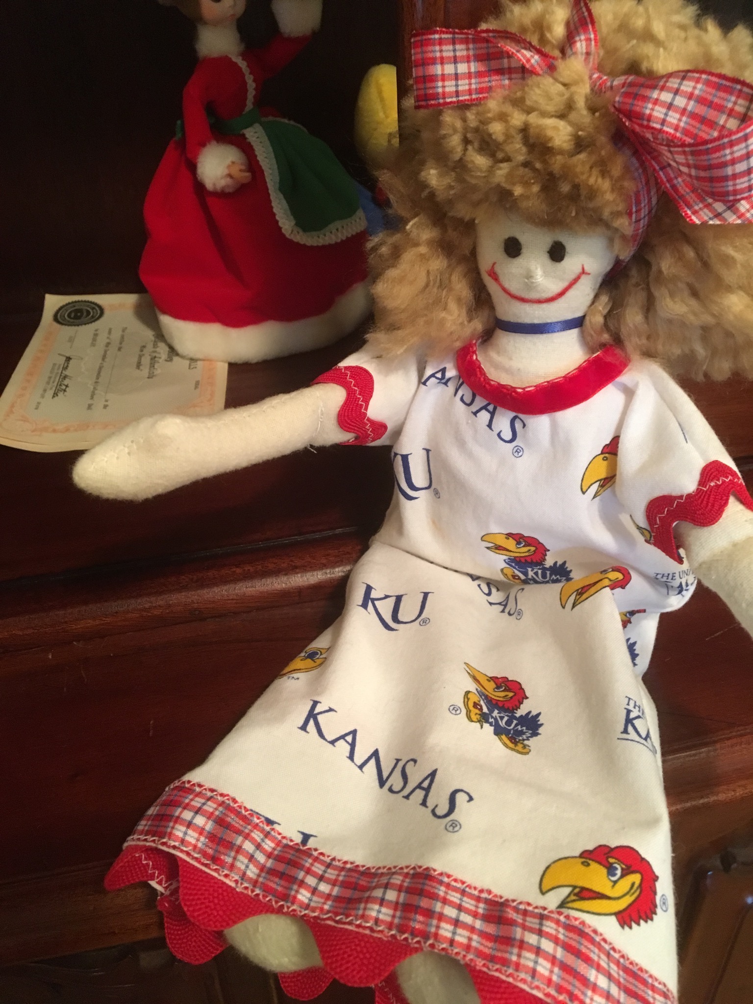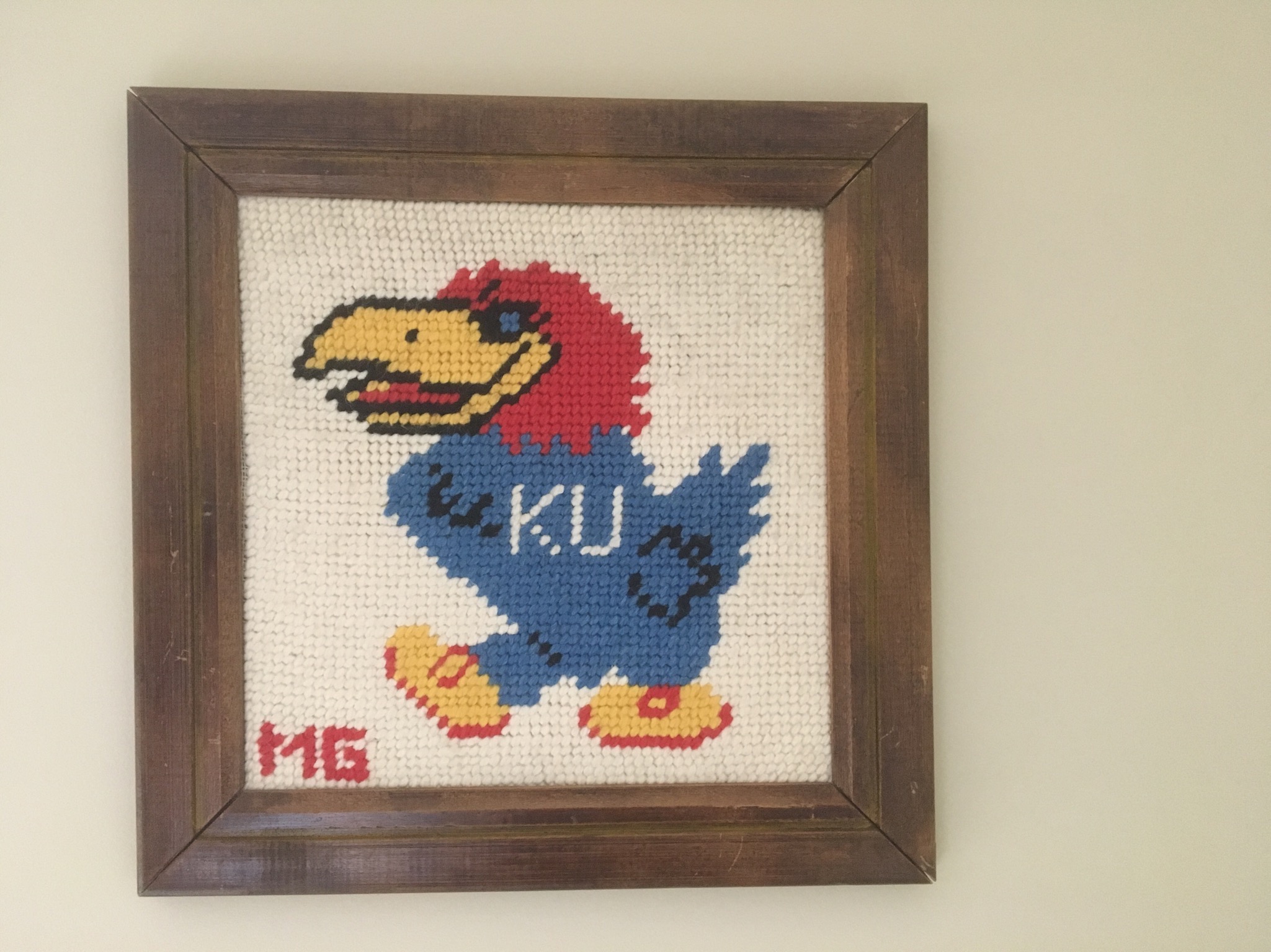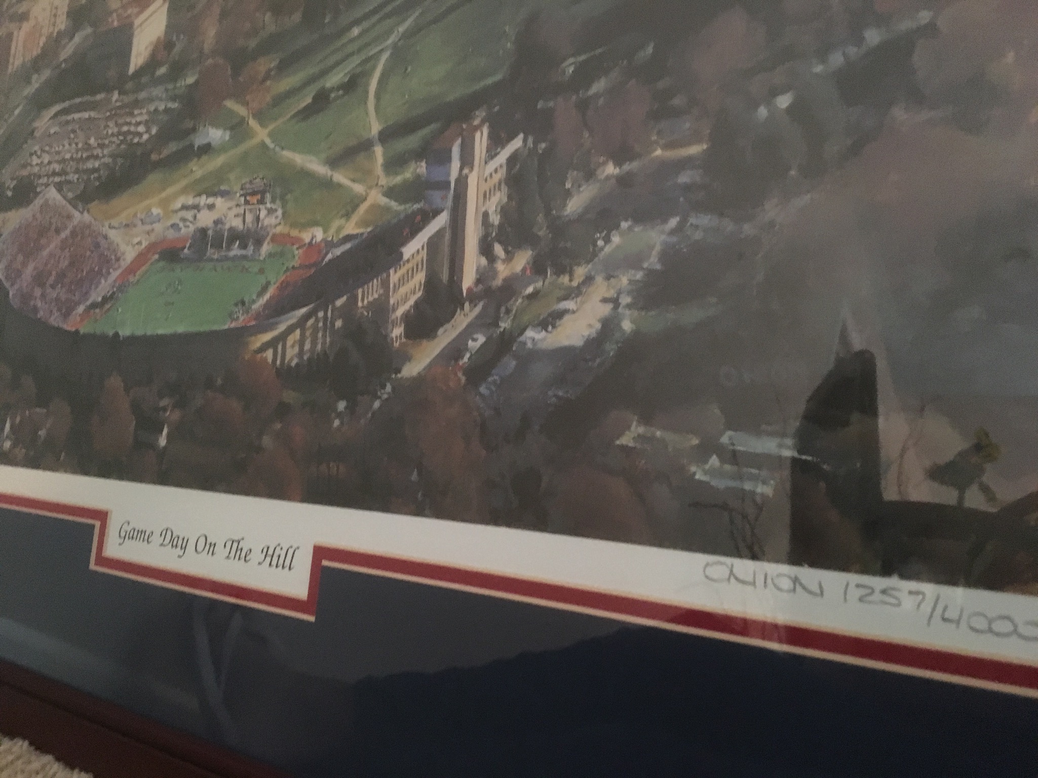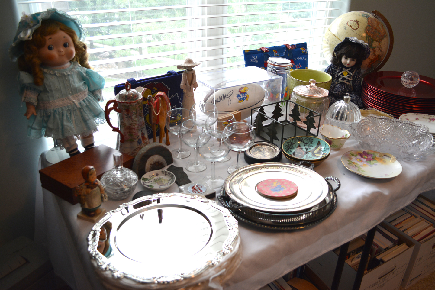 Rock-Chalker alert: a limited edition print of Game Day On The Hill by Jon Onion, an outdoor Jayhawk patio umbrella, a signed Roy Williams KU basketball in case (did y’all know that Roy was one of only 8 Basketball Coaches in the 112-ish year history of KU BBall – now THAT is impressive! Also have a signed KU football by Orange Bowl winning Head Coach Mark Mangino in case, KU handbags and other KU miscellany you Jayhawkers collect o’er the years …