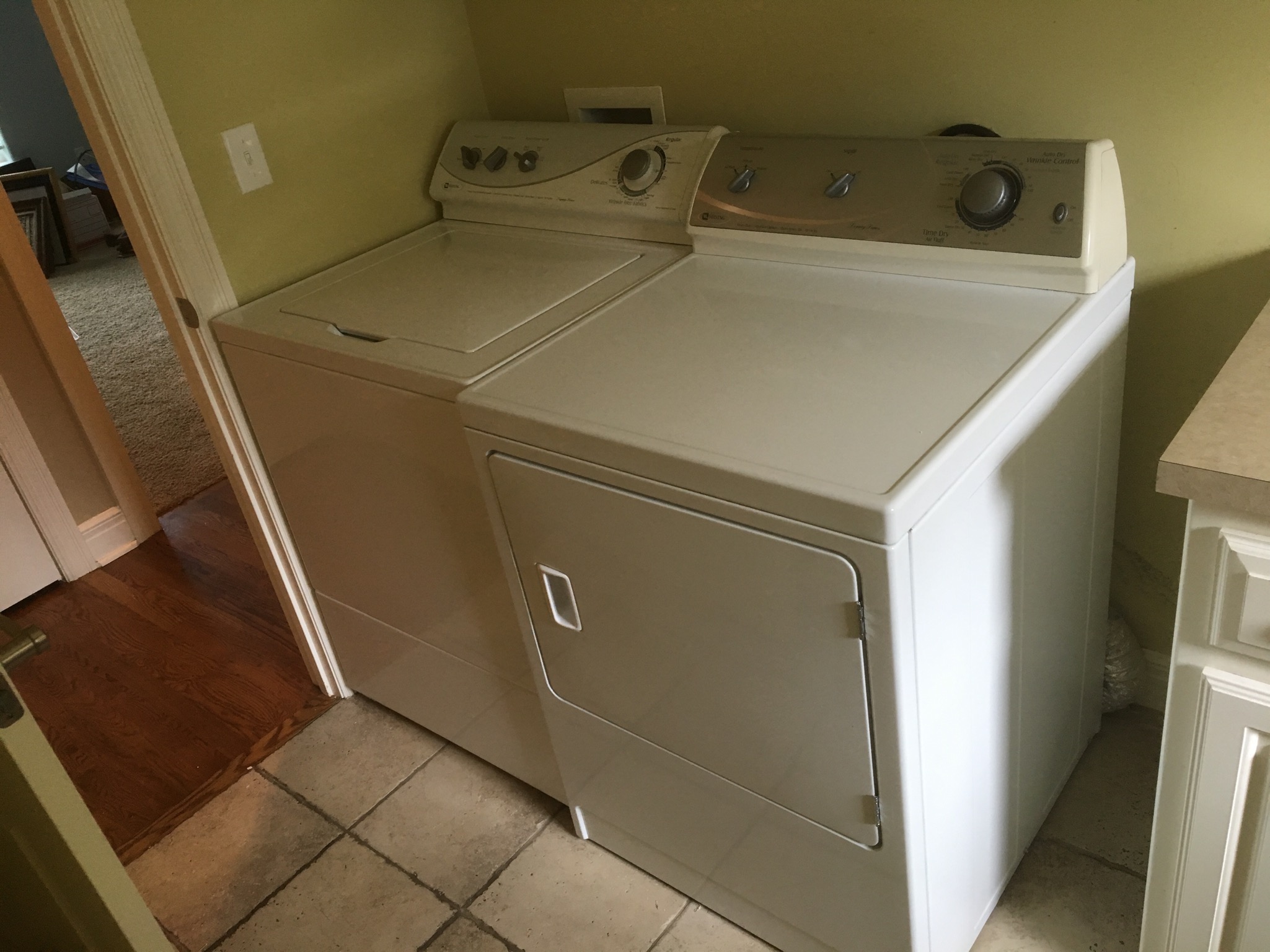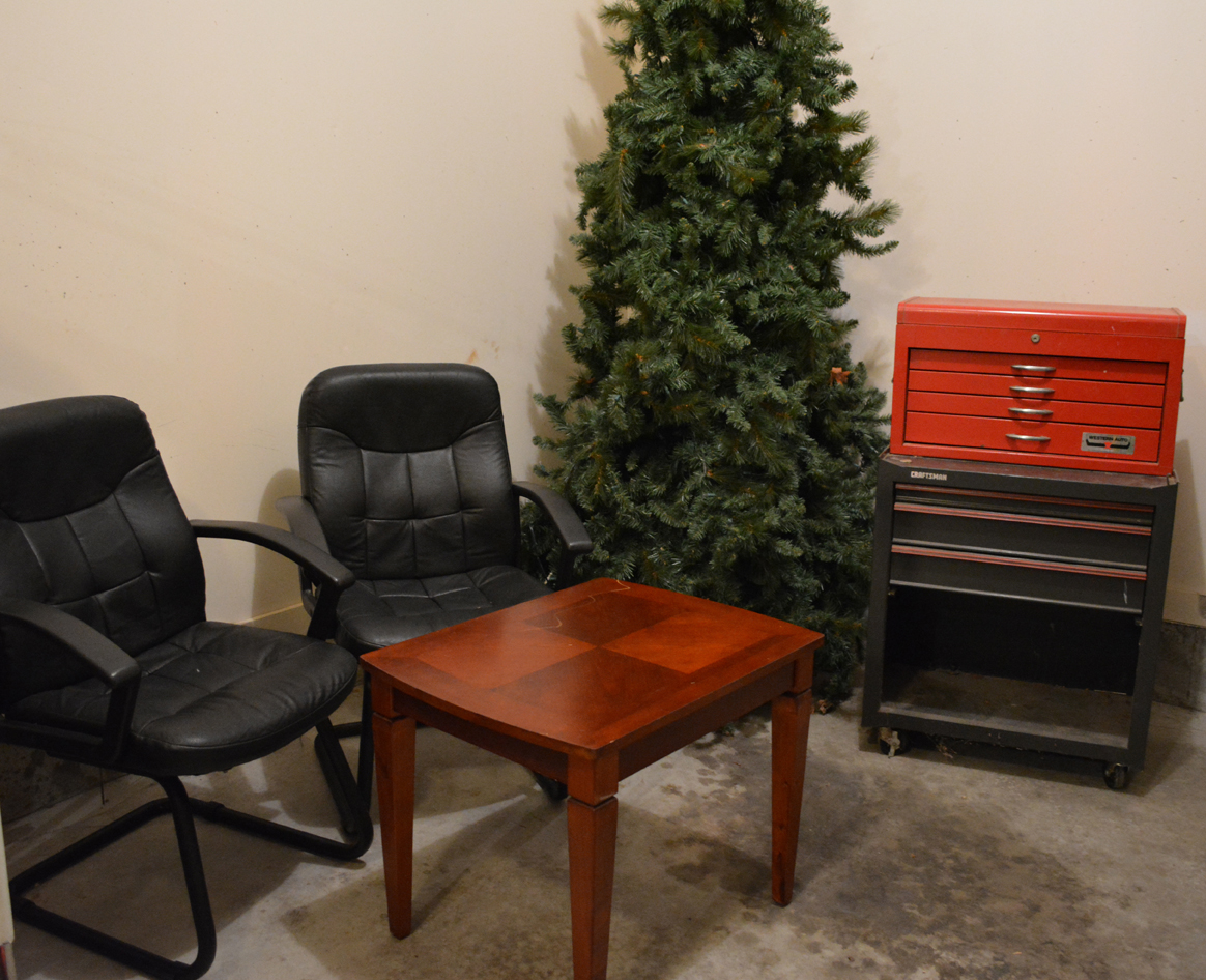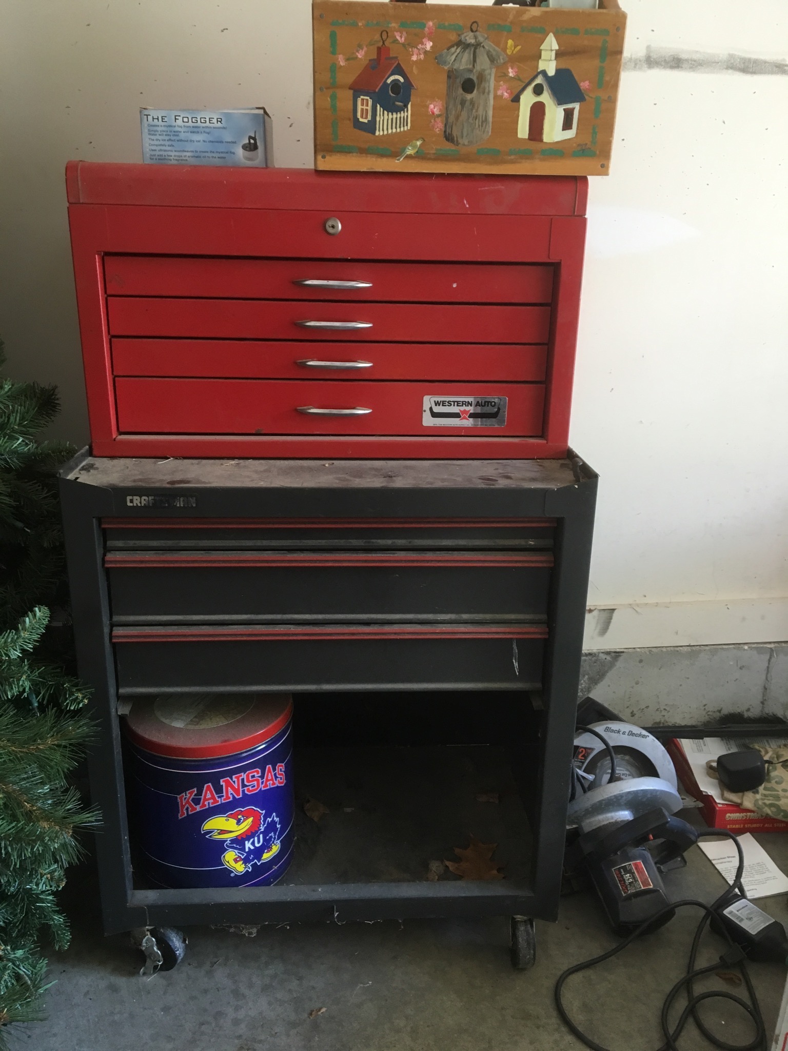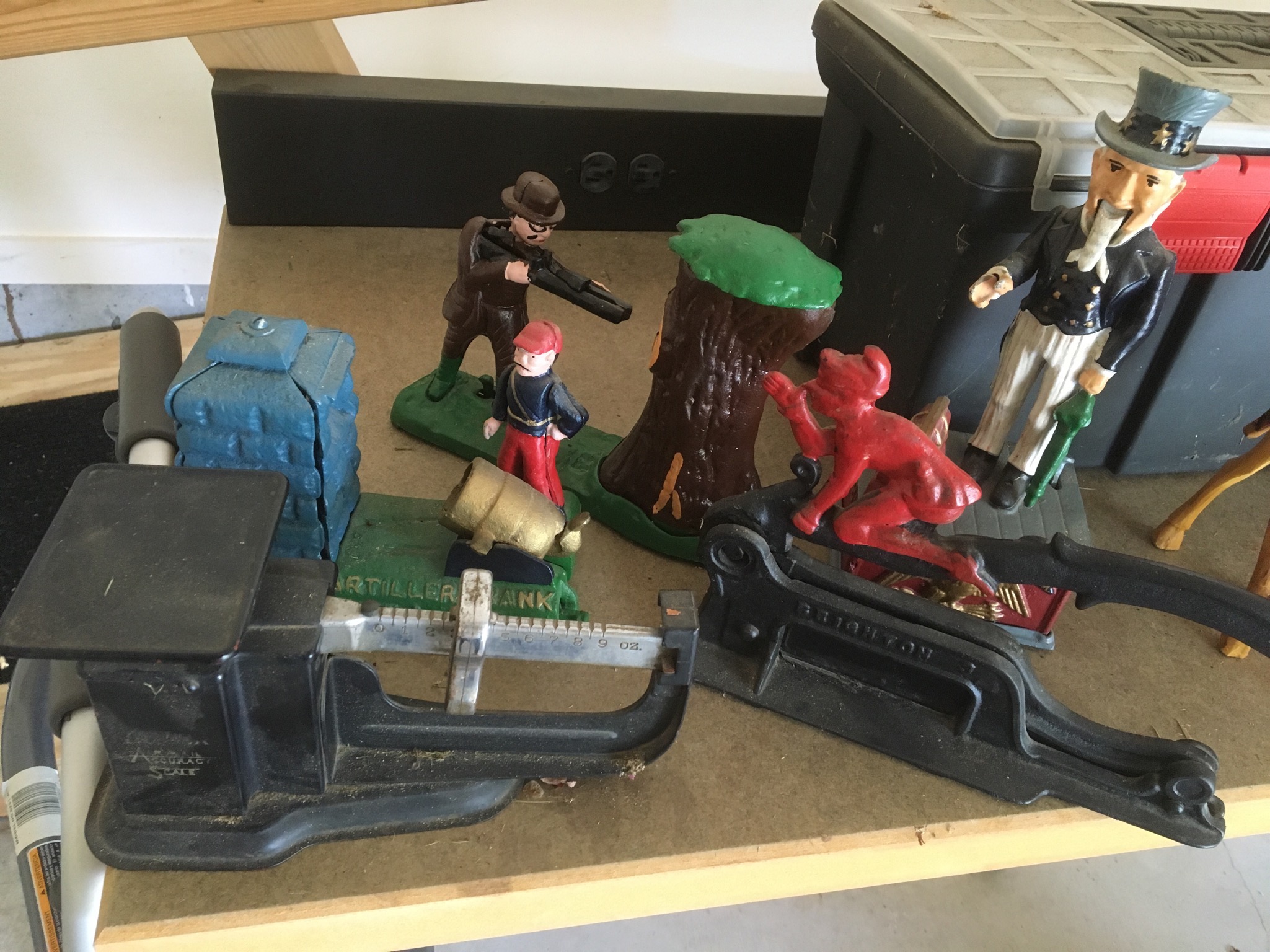 Nice white Maytag washer and electric dryer, cast iron interactive coin banks, Western Auto and Craftsman tool cabinets, some hand and power tools including a Black and Decker circular saw … and much more!