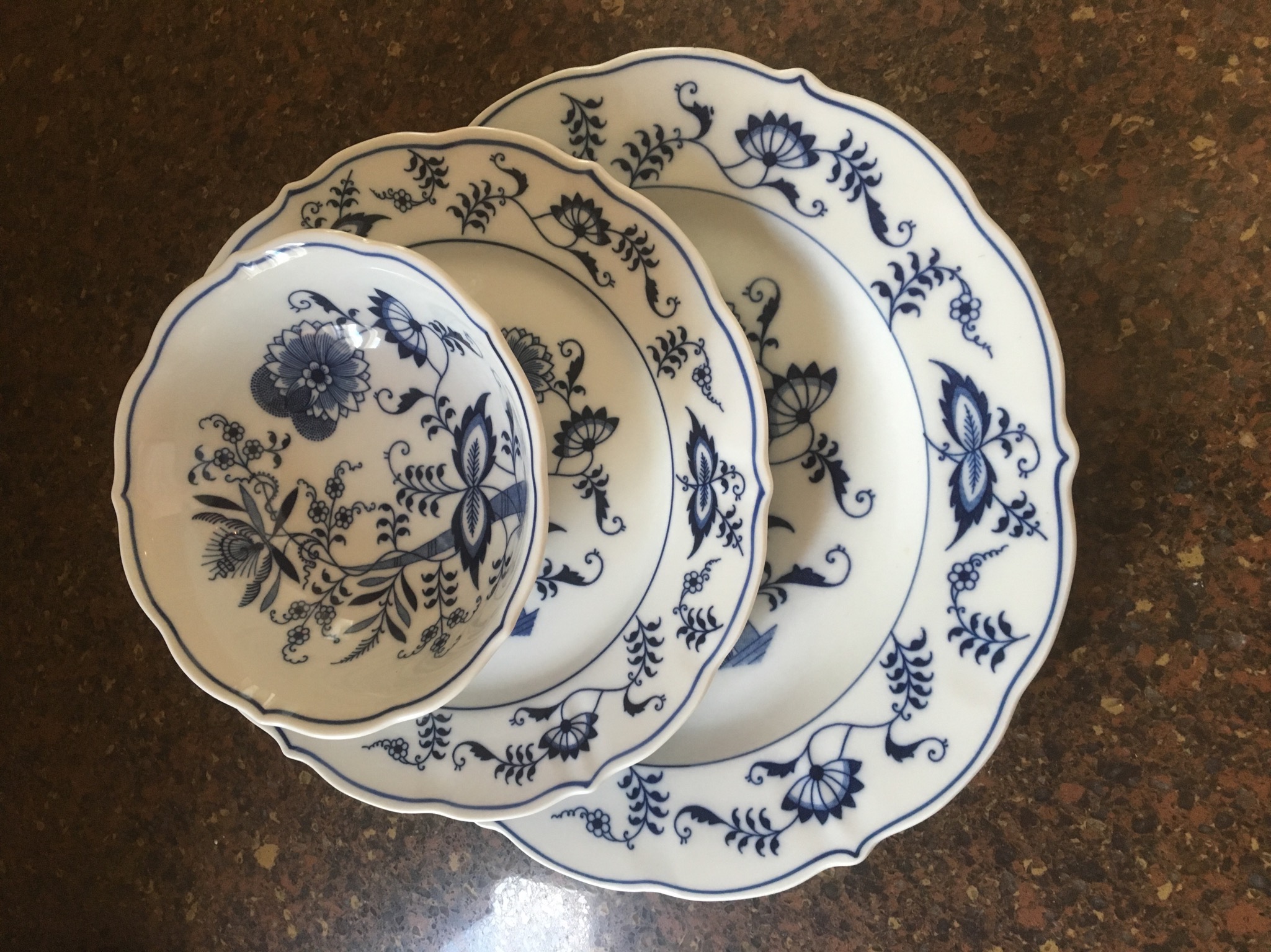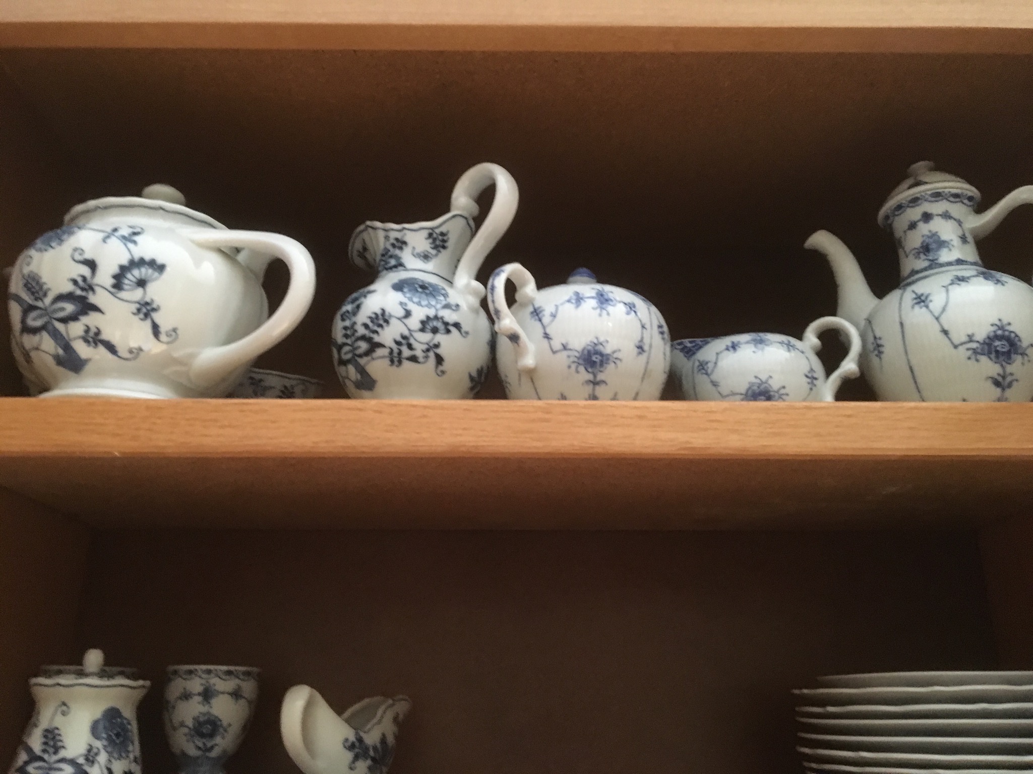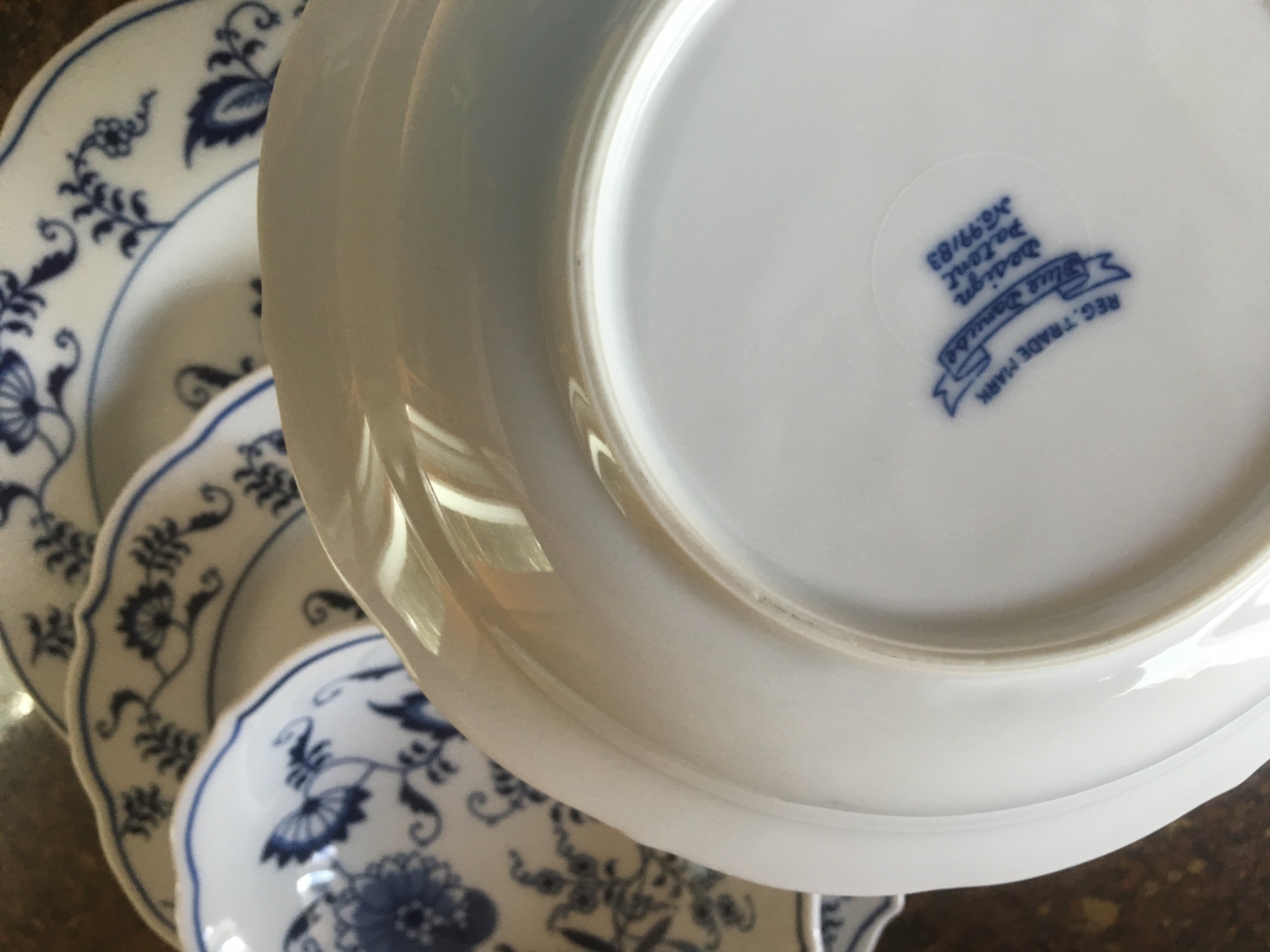 Blue Danube blue/white dishes, Goebel figurines, small pill box collection, signed J.R. Hamilton framed print, Singer Merritt 9612 sewing machine, lamps, some basic outdoor furniture …