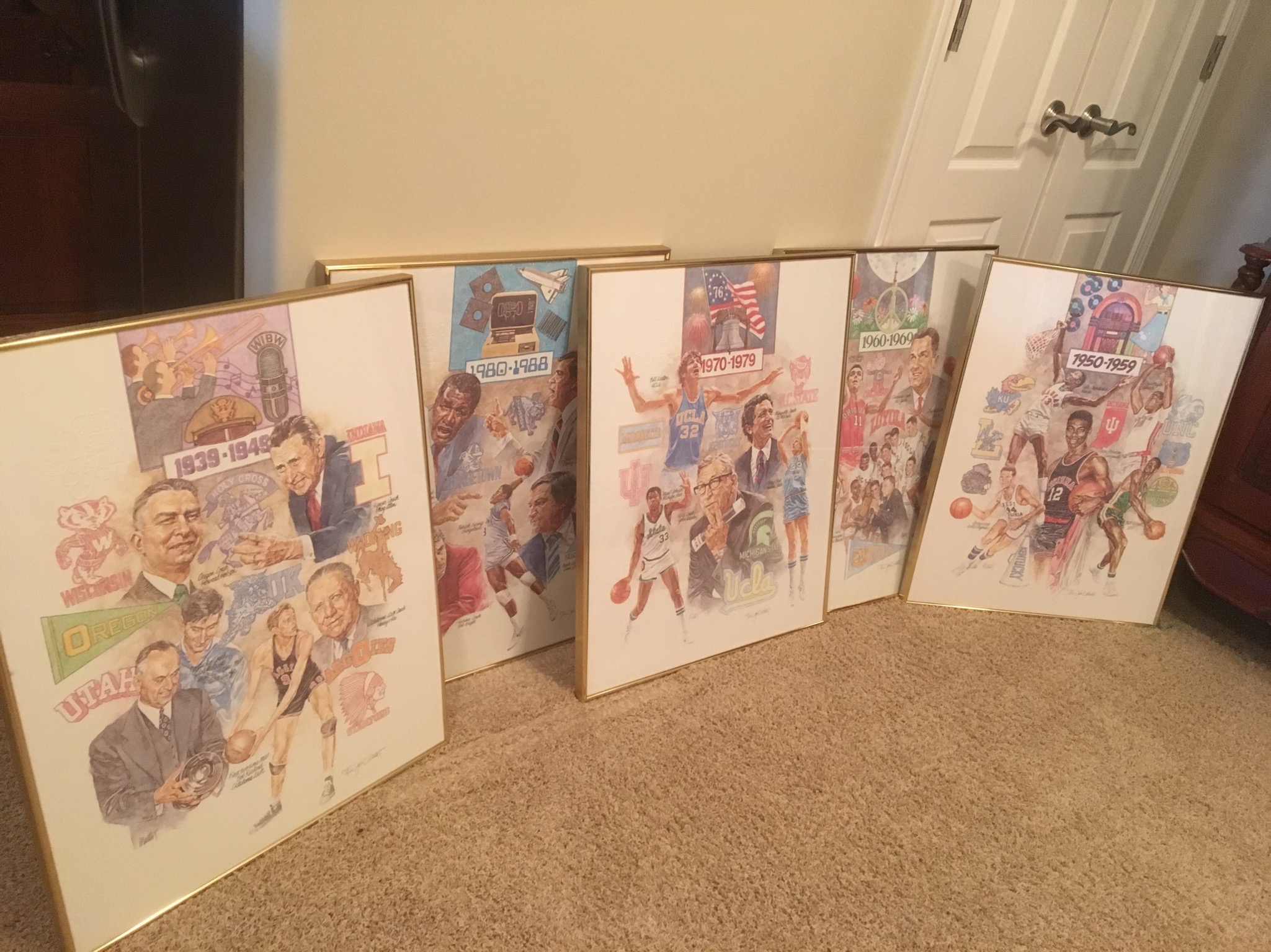 Five commemorative limited edition signed and framed prints celebrating the 50th Anniversary of the NCAA …