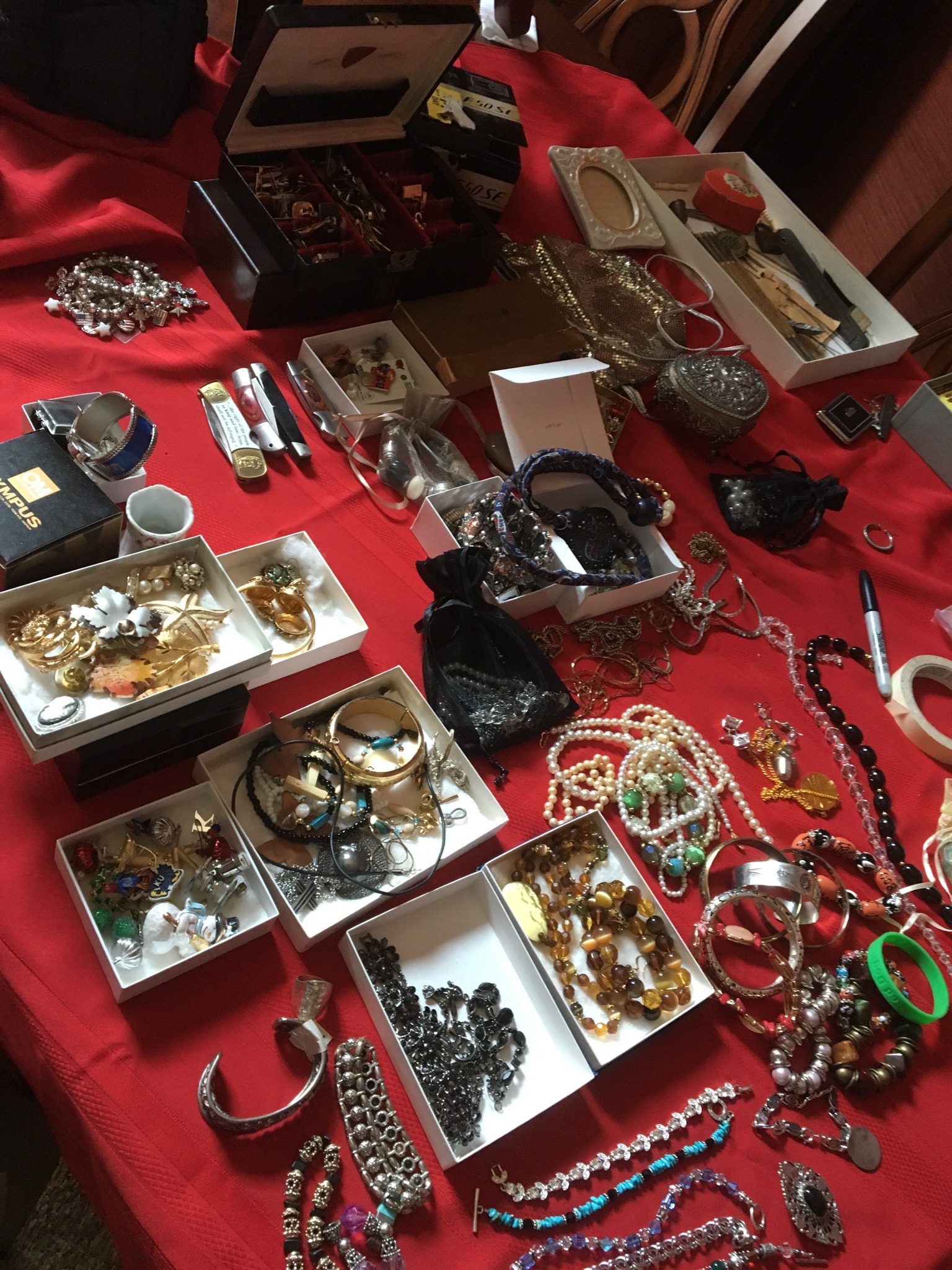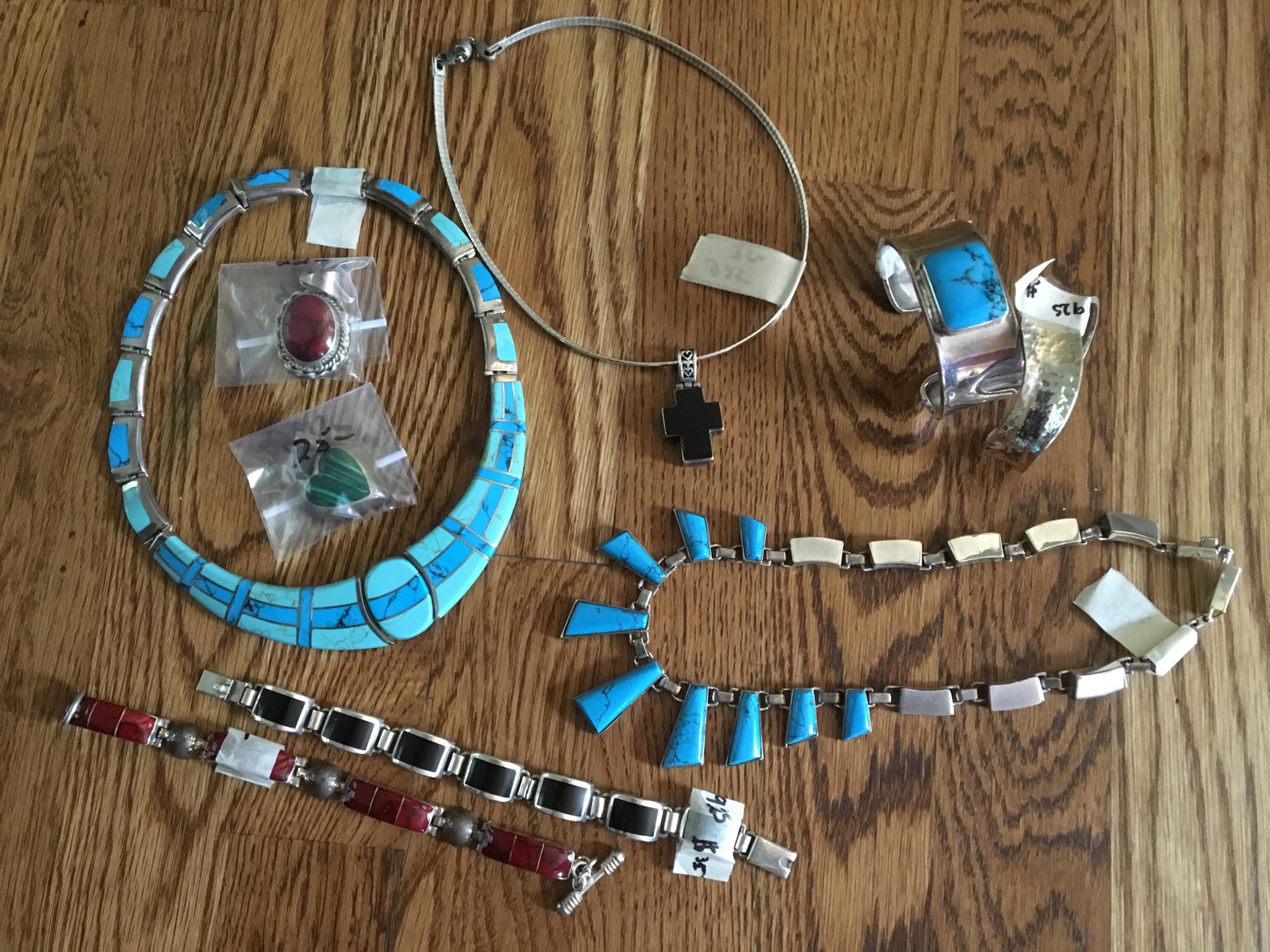 Nice selection of Mexican silver jewelry – necklaces, bracelets and earrings, good amount of other sterling jewelry and lots of costume jewelry …