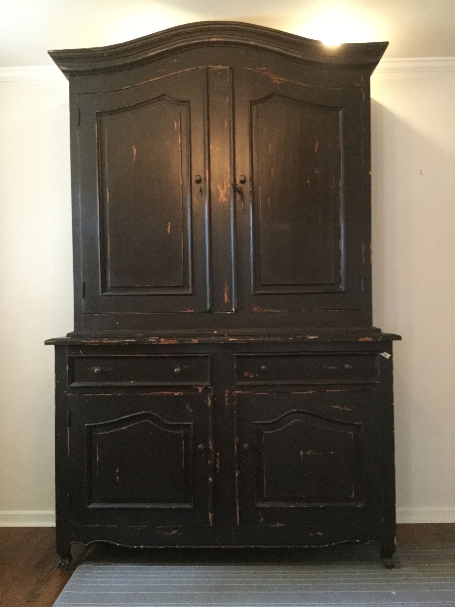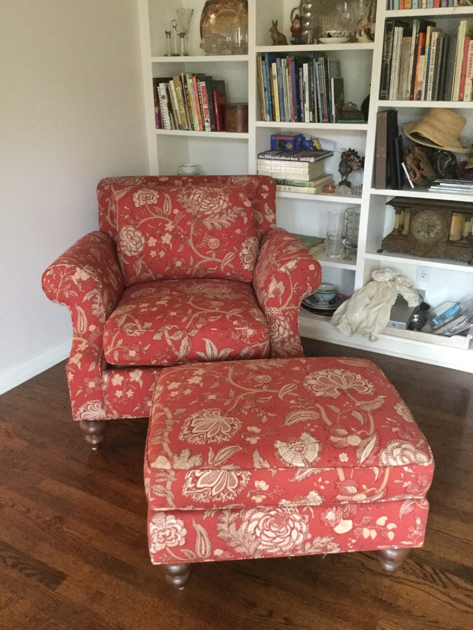 A delicious Bernhardt/Martha Stewart burgundy wine comfy club chair and matching otto, “the coolest light yellow wall cabinet – e-verrr” (and the tag says so!), an exceptional 2 piece sideboard in distressed black …