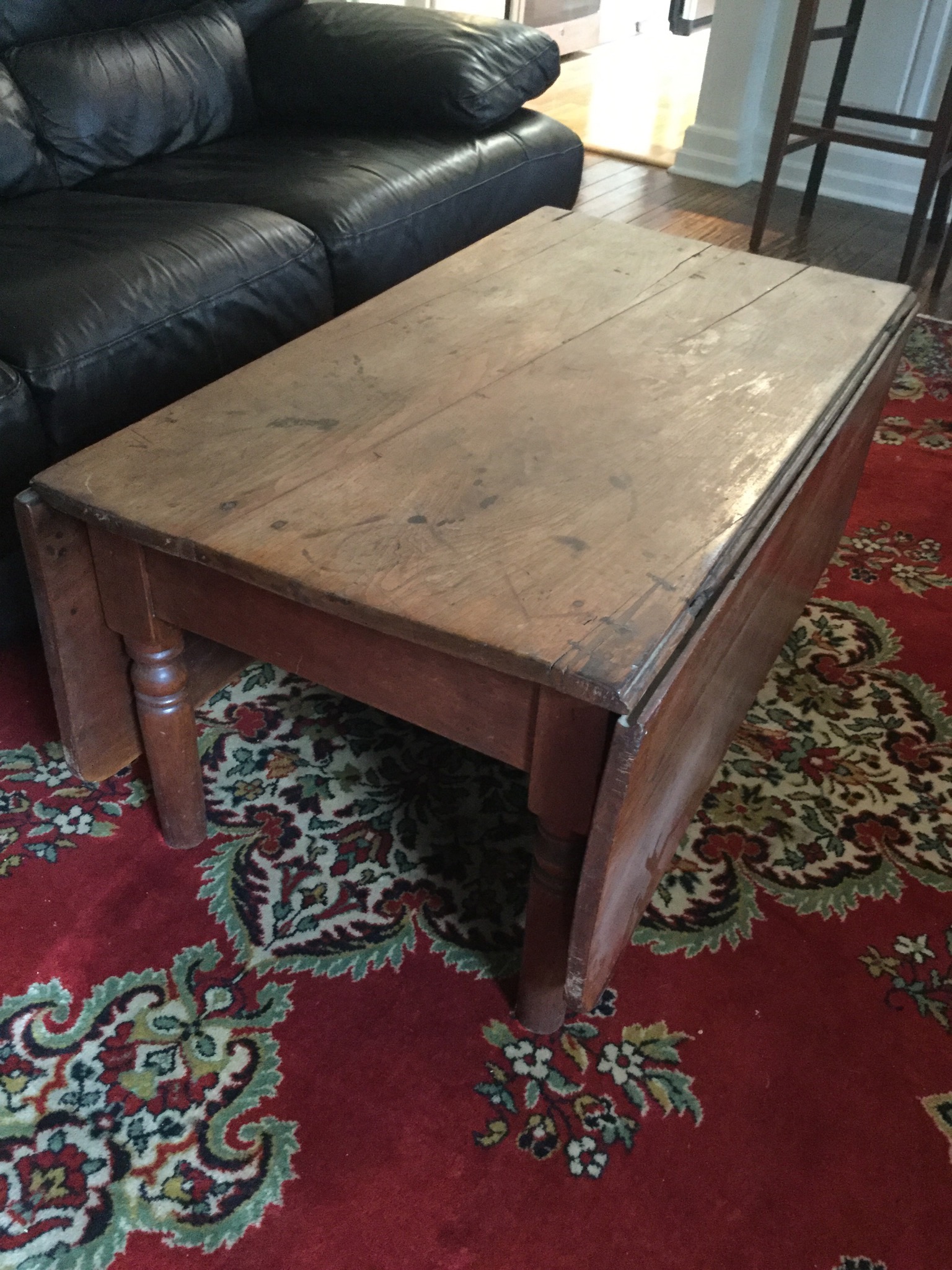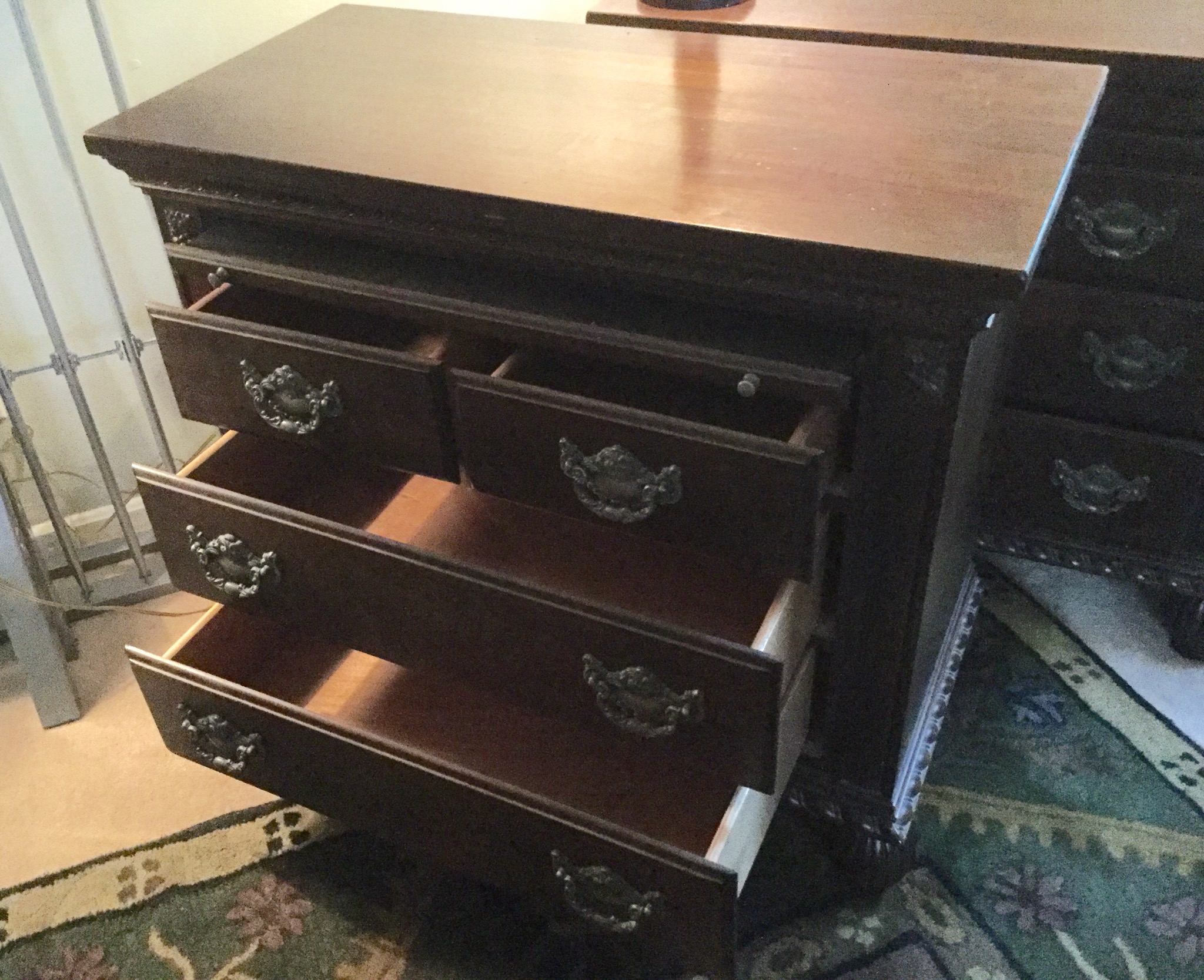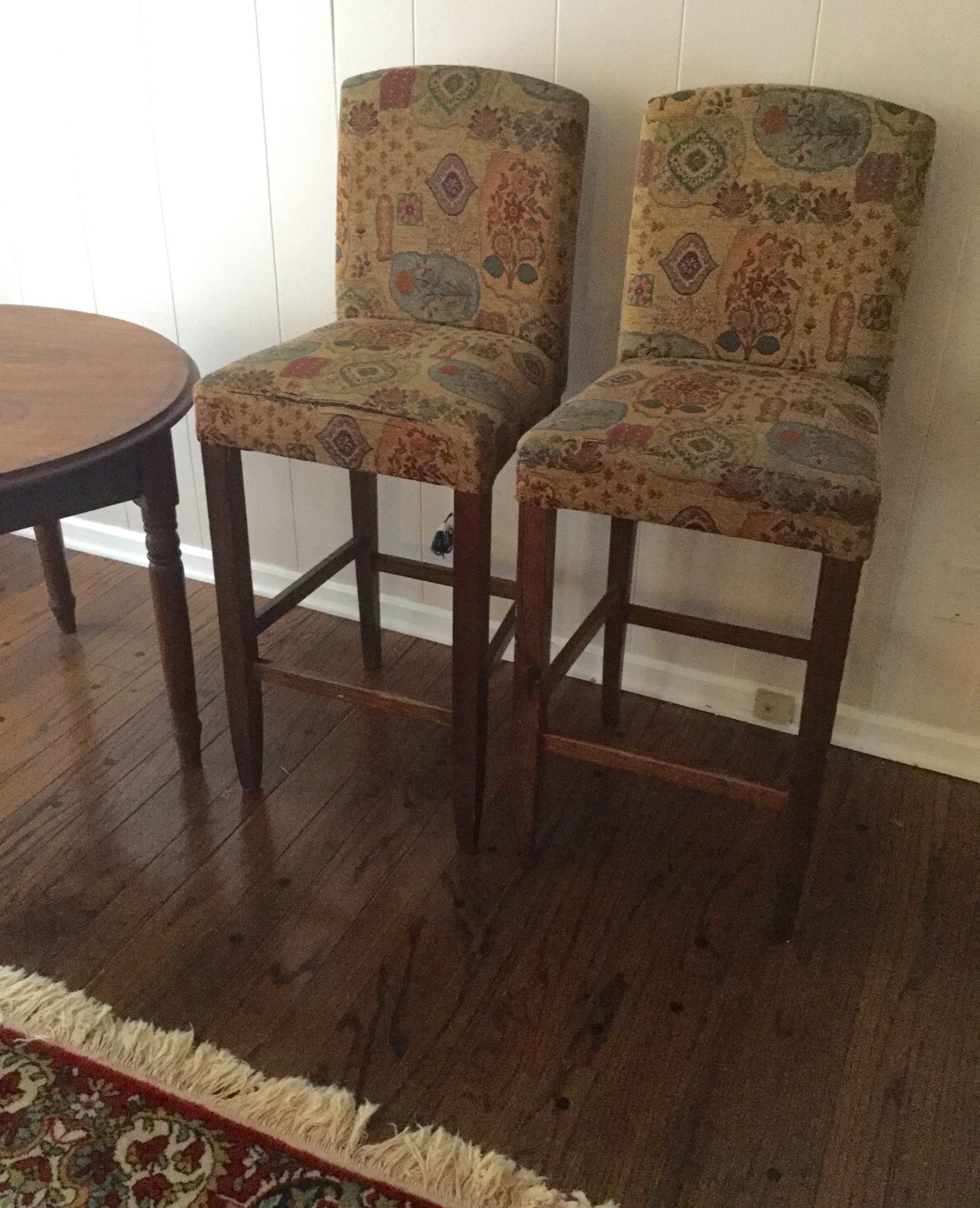 2 of the most unique antique full size beds with darling details, drop side antique coffee table, many barstools (leather and upholstered), nice round antique table, 6 drawer antique chest of drawers …