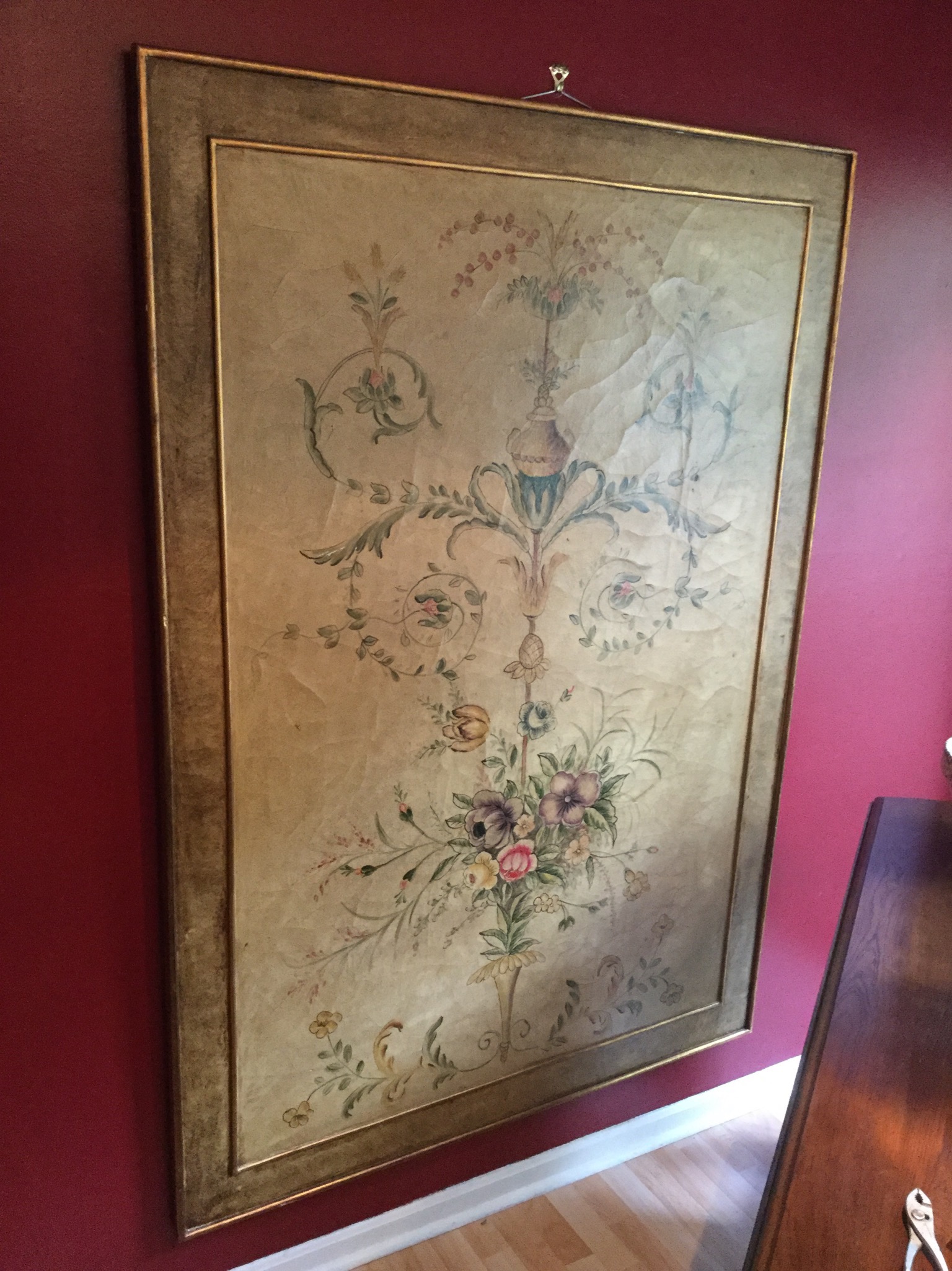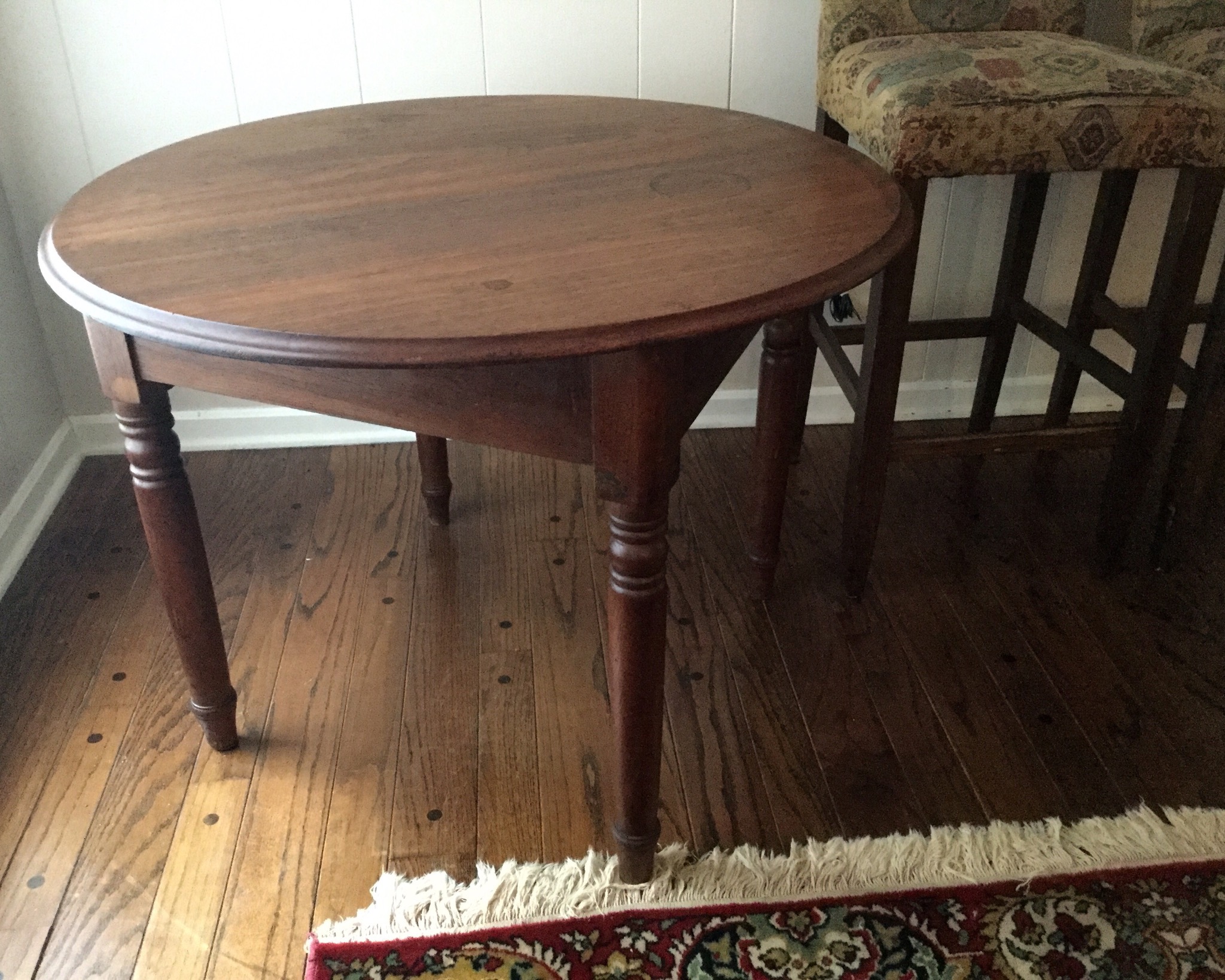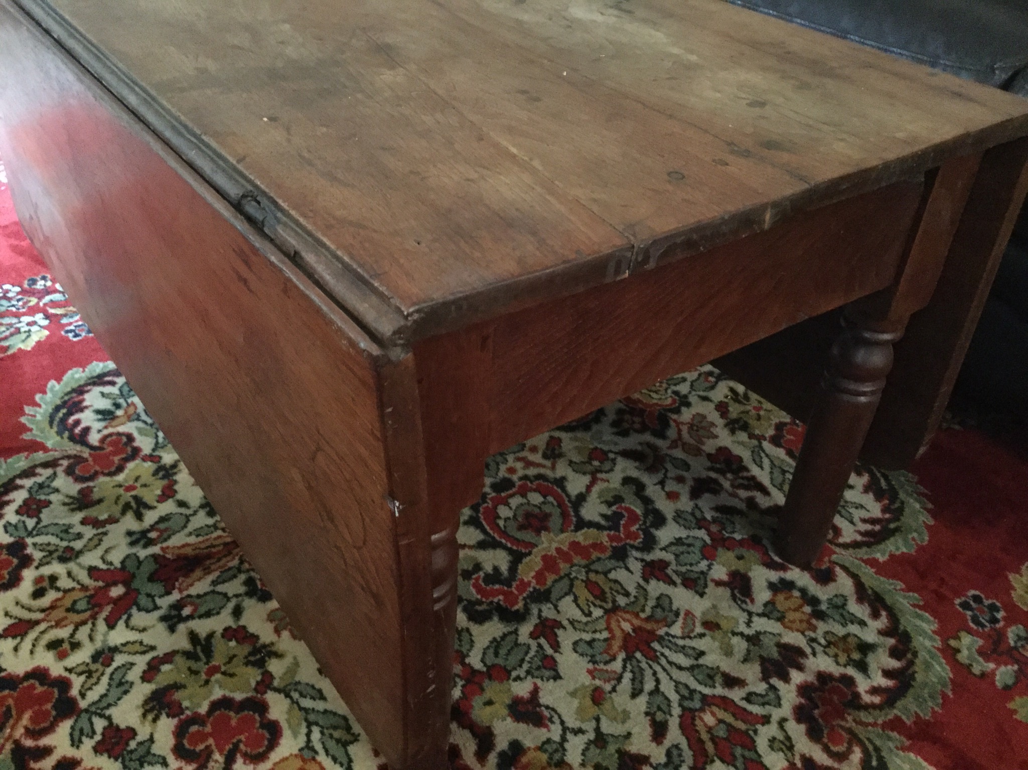 An “ohmygosh-wow” 7’ long drop side gate-leg like-new dining or wall-sofa table, several drafting/art tables including a large Vemco, a darling maple bench, oval 2-pedastal one drawer table that needs some refinishing/painting love …