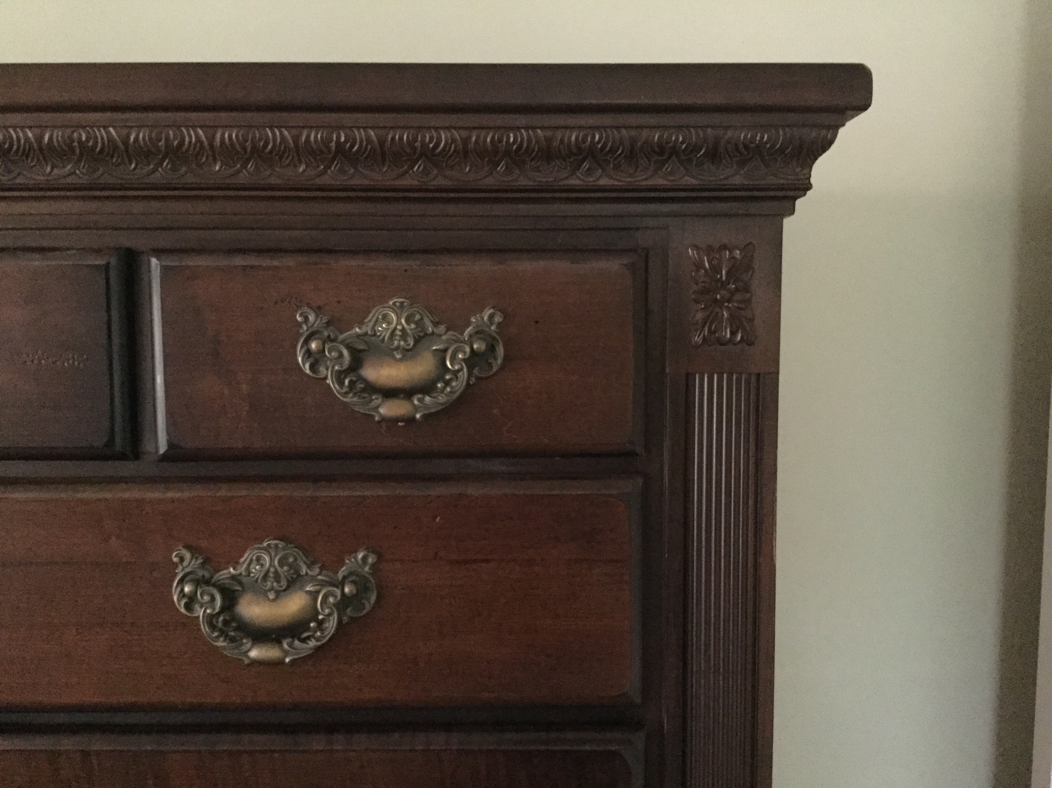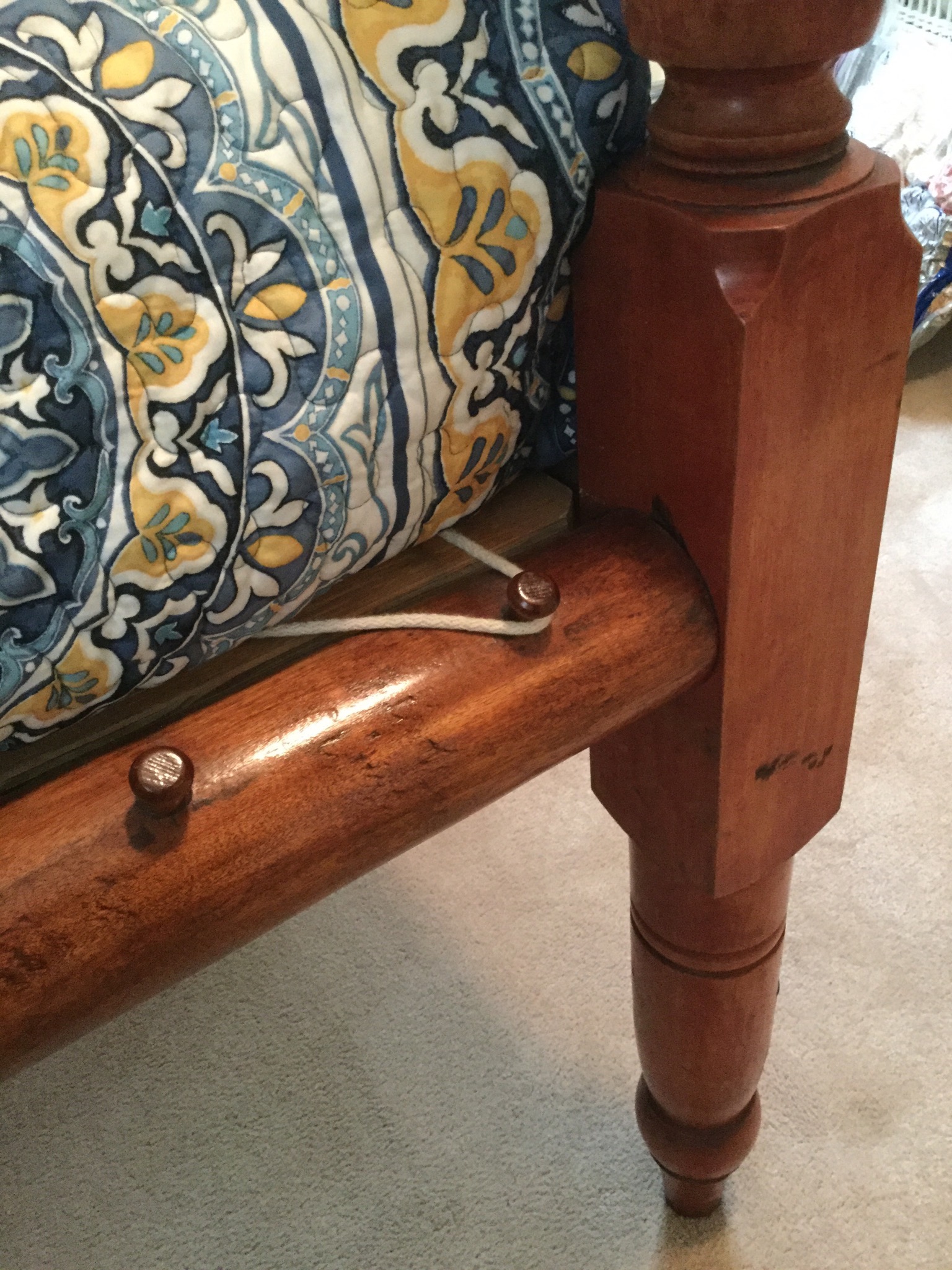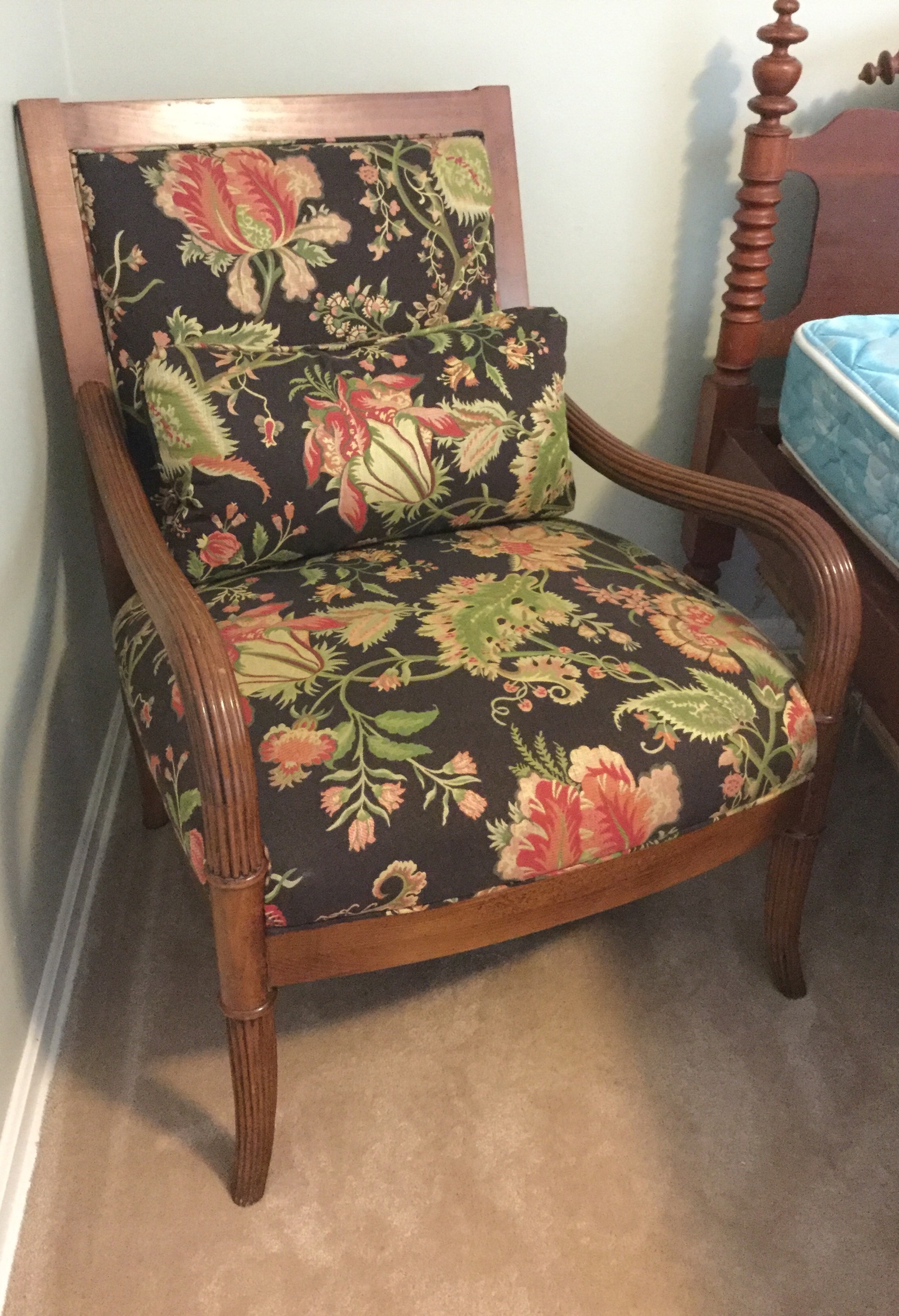 Kinkaid bedroom set: queen sleigh bed, tall boy and pair of night stands (that are so spiff you could use them as end tables or small chests, brown wardrobe, 6 rush seat chairs …