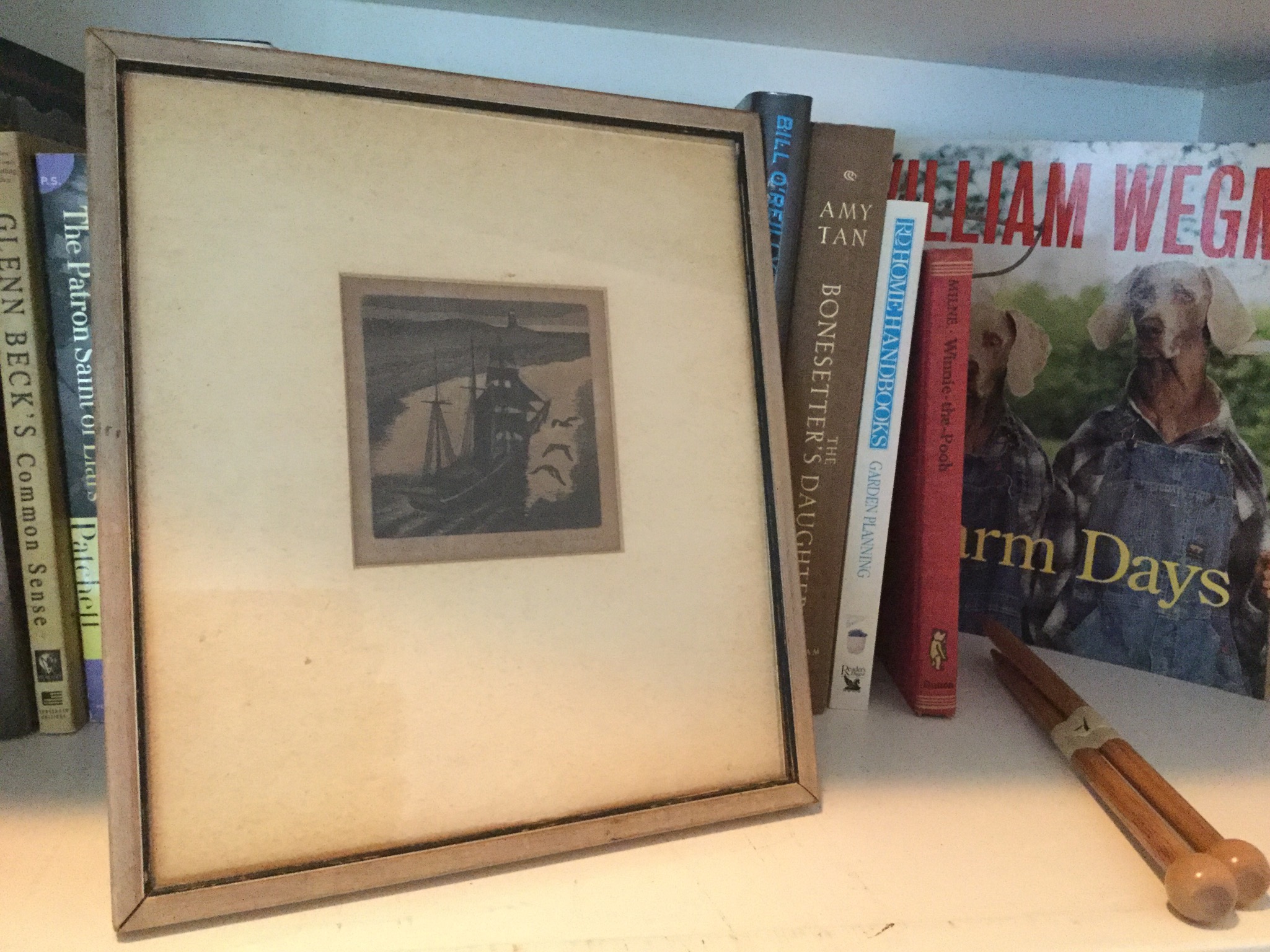 Many area rugs – 3 rooms size (1 Pottery Barn -check out the pics!), small signed etching by George Jo Mess (Mess studied at the Fontainebleau School of Fine Arts in France – His exhibited work includes the Chicago Art Institute and Metropolitan Museum of Art, fyi) …