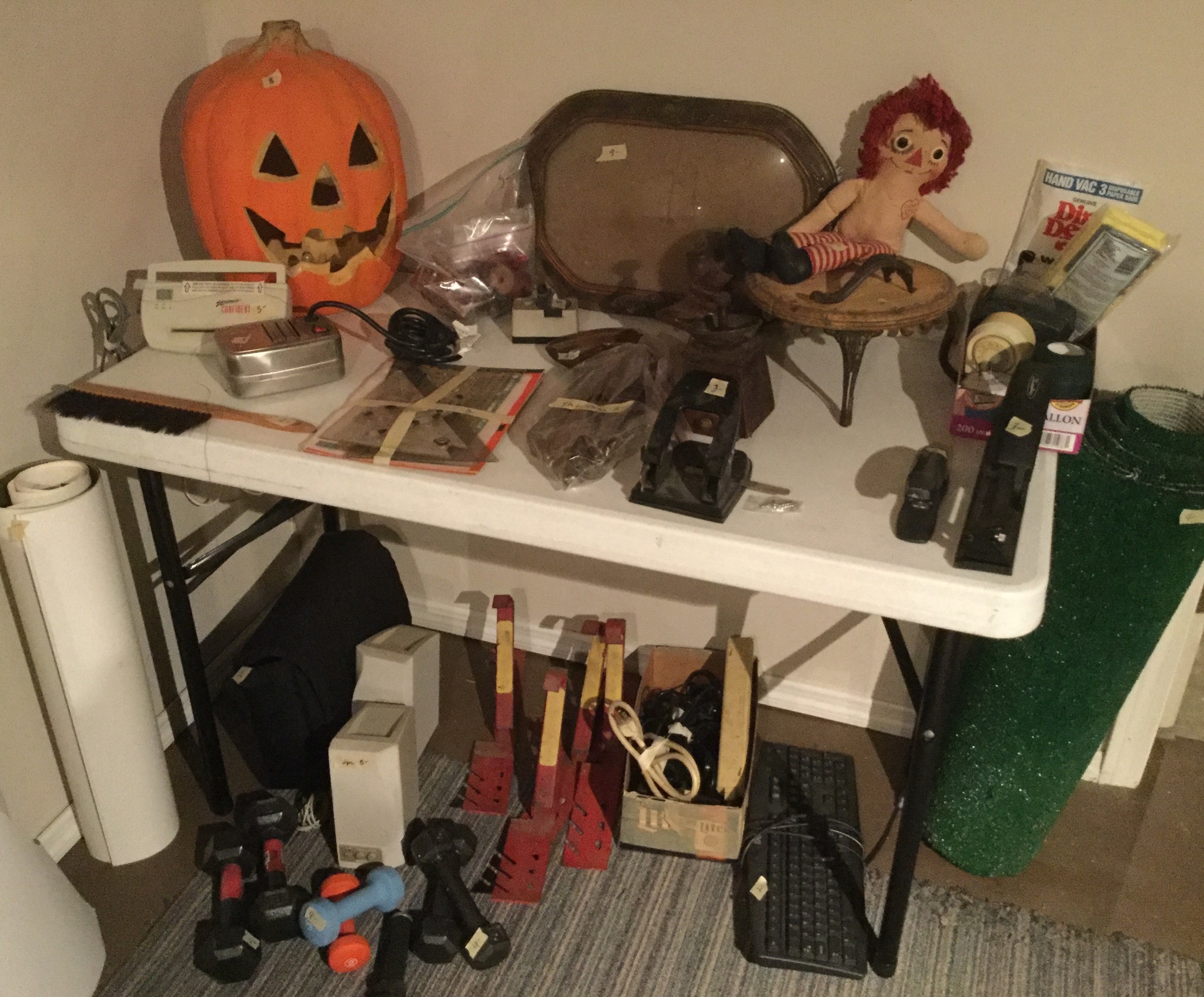Craftsman Electronic Radial saw, Black & Decker Edge Hog, lawn tools, a few tiki torches, great selection of KU miscellany and some nice floor and table lamps …