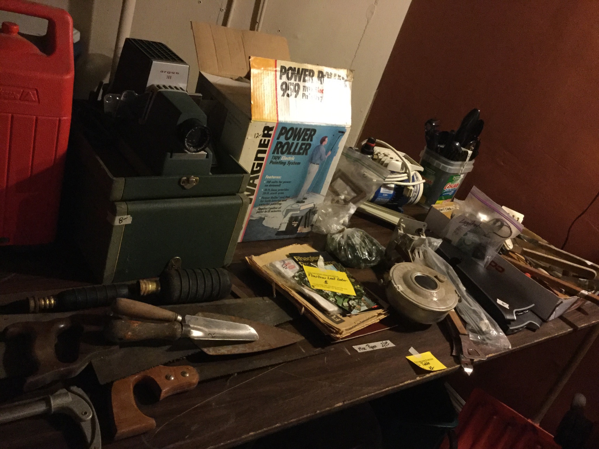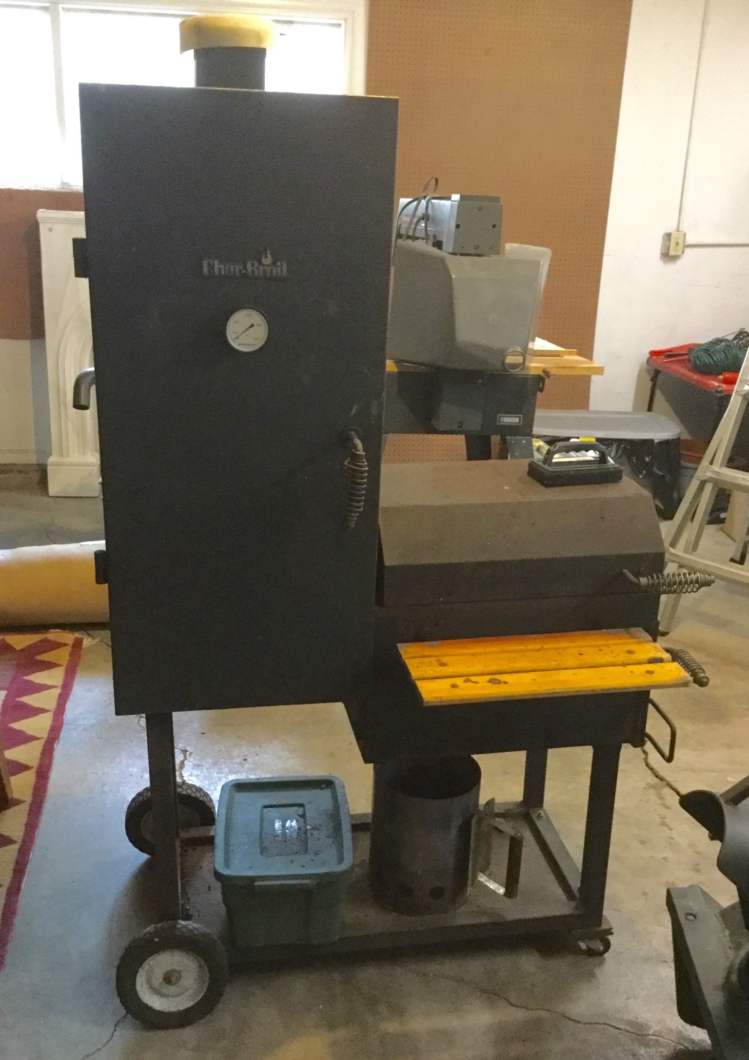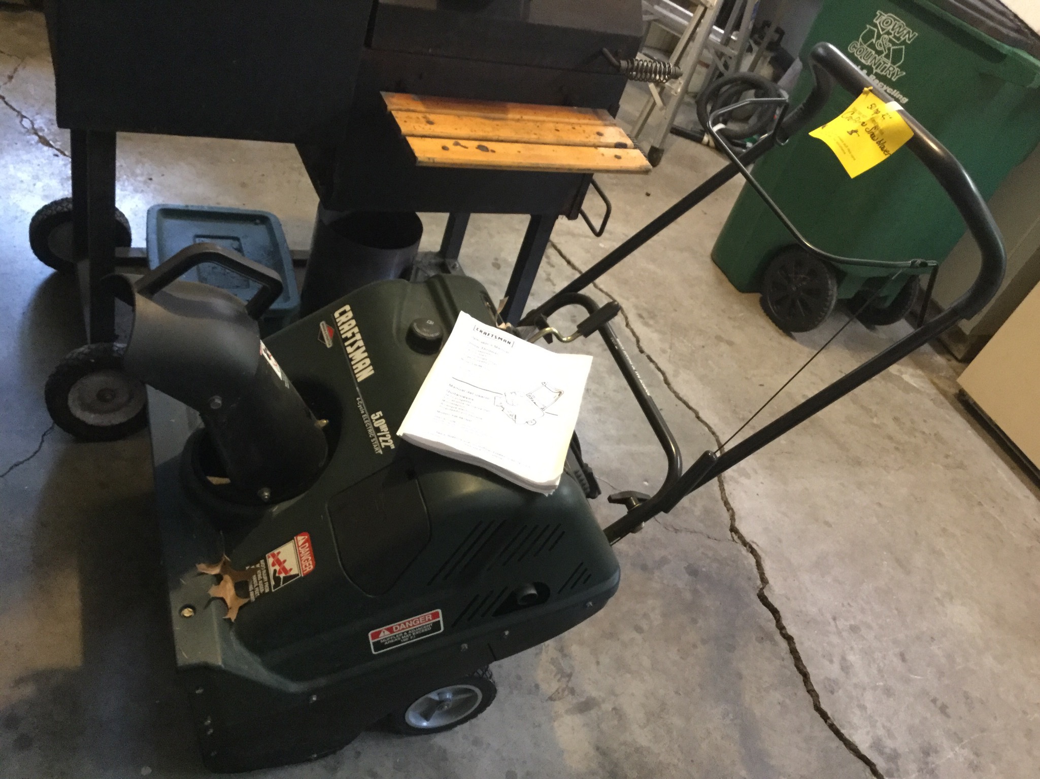 Toro Recycler Personal Pace lawnmower, Craftsman snowblower, Rowtron Leaf Eater (it’s that tiiiiime!), Wagner Power Roller, small grill and CharBroil Smoker …