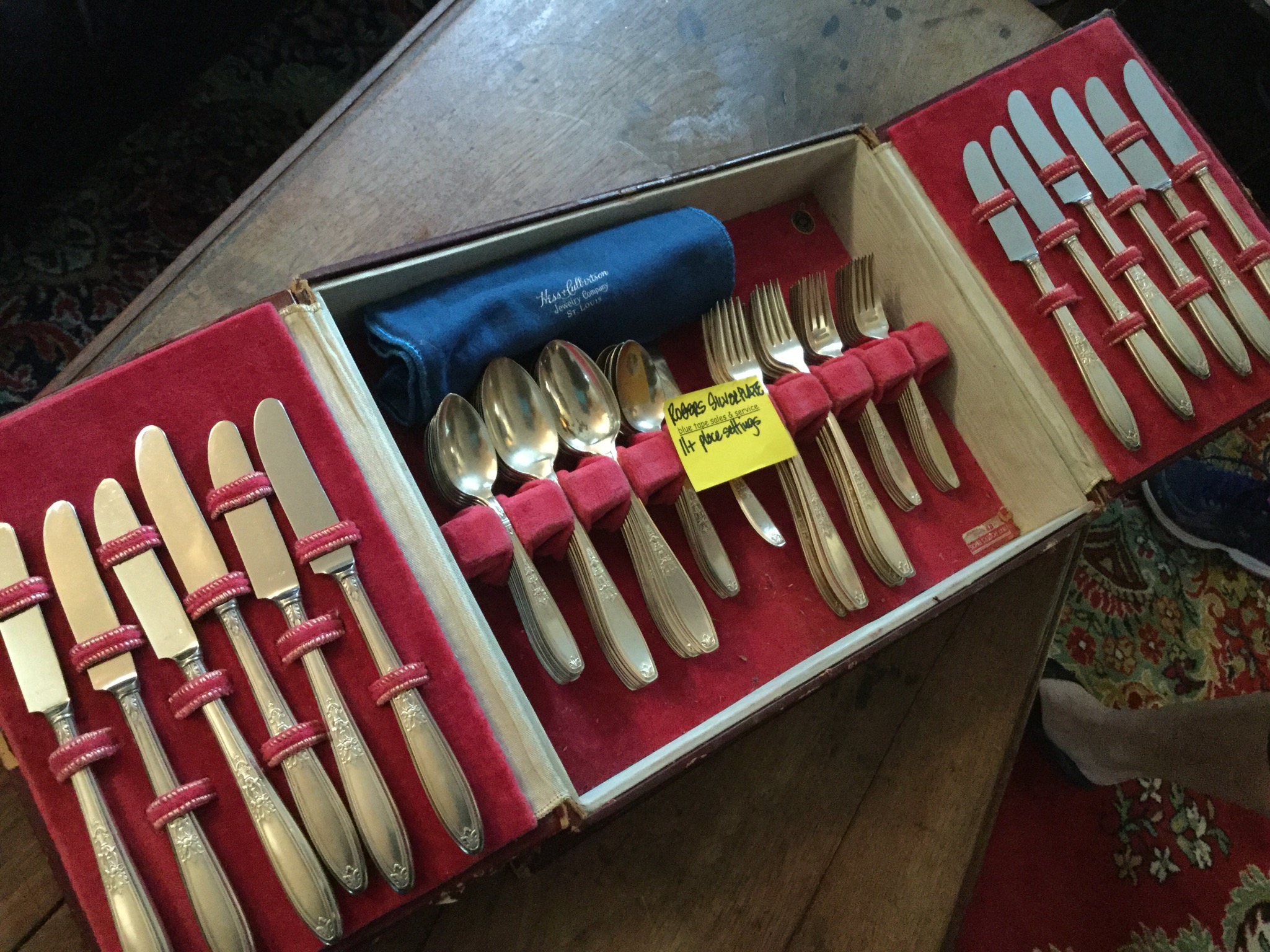 3 closets full of nice women’s and men’s clothing (wmns sz S-L, Mens L & XL), shoes, coats and jackets, 11+ Rogers silverplate place settings, 54” Panasonic High Def flatscreen TV, collection of pewter mugs …