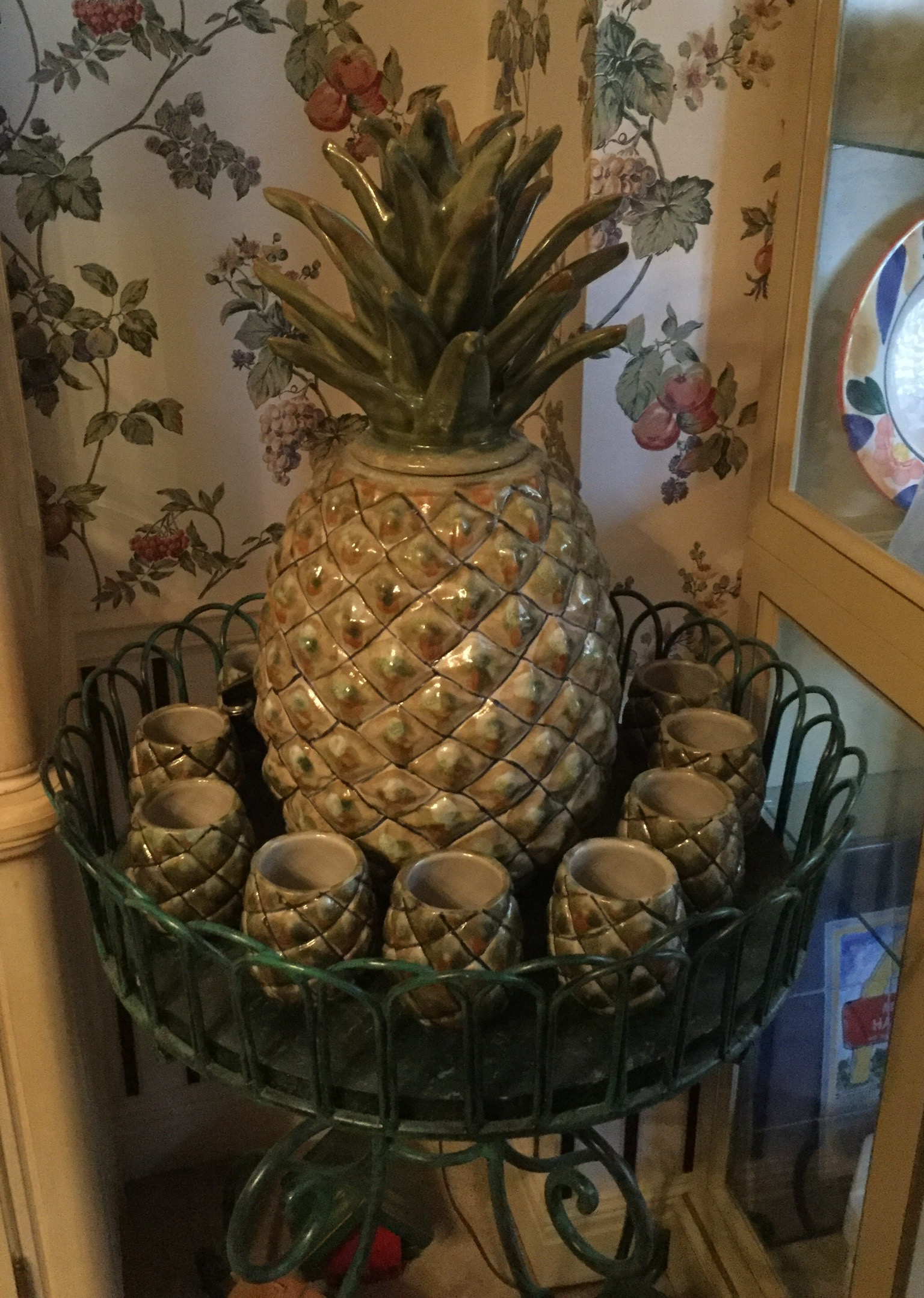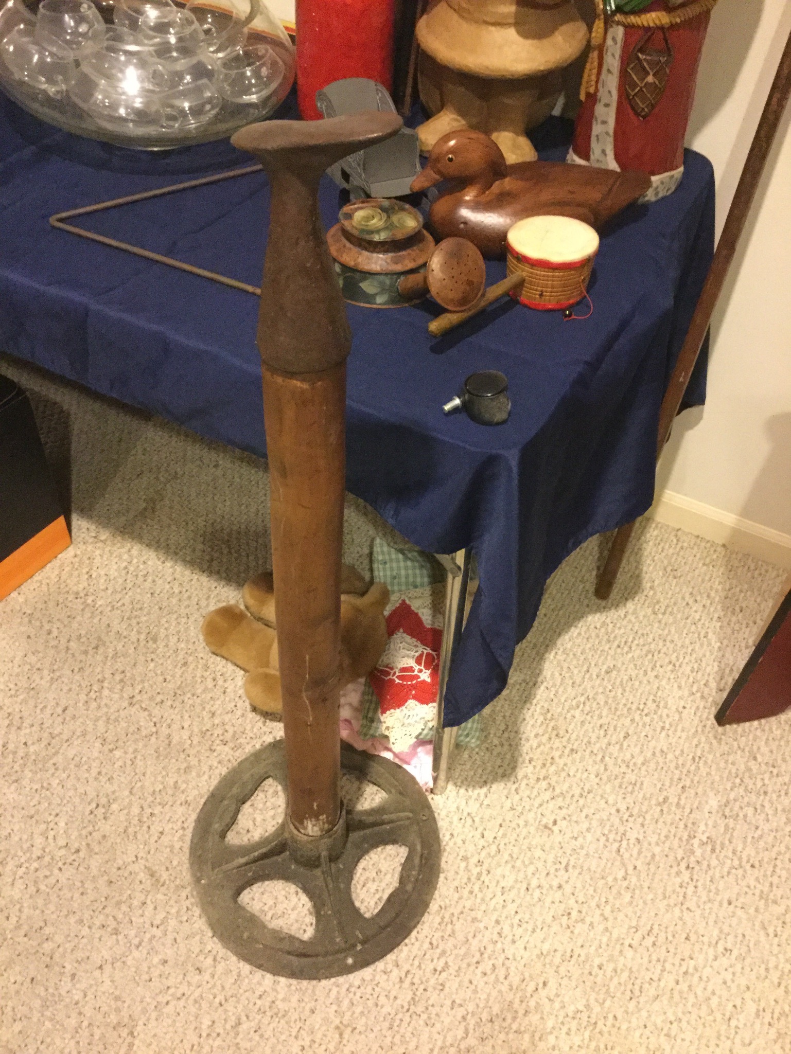 GE Profile Stainless fridge with water in door, pineapple drink dispenser and cup set, Armatale, gold cream man figurine lamp, glass parlor lamp, 3 flatscreen TVs, popcorn machine, antique shoe forms, several nutcrackers …