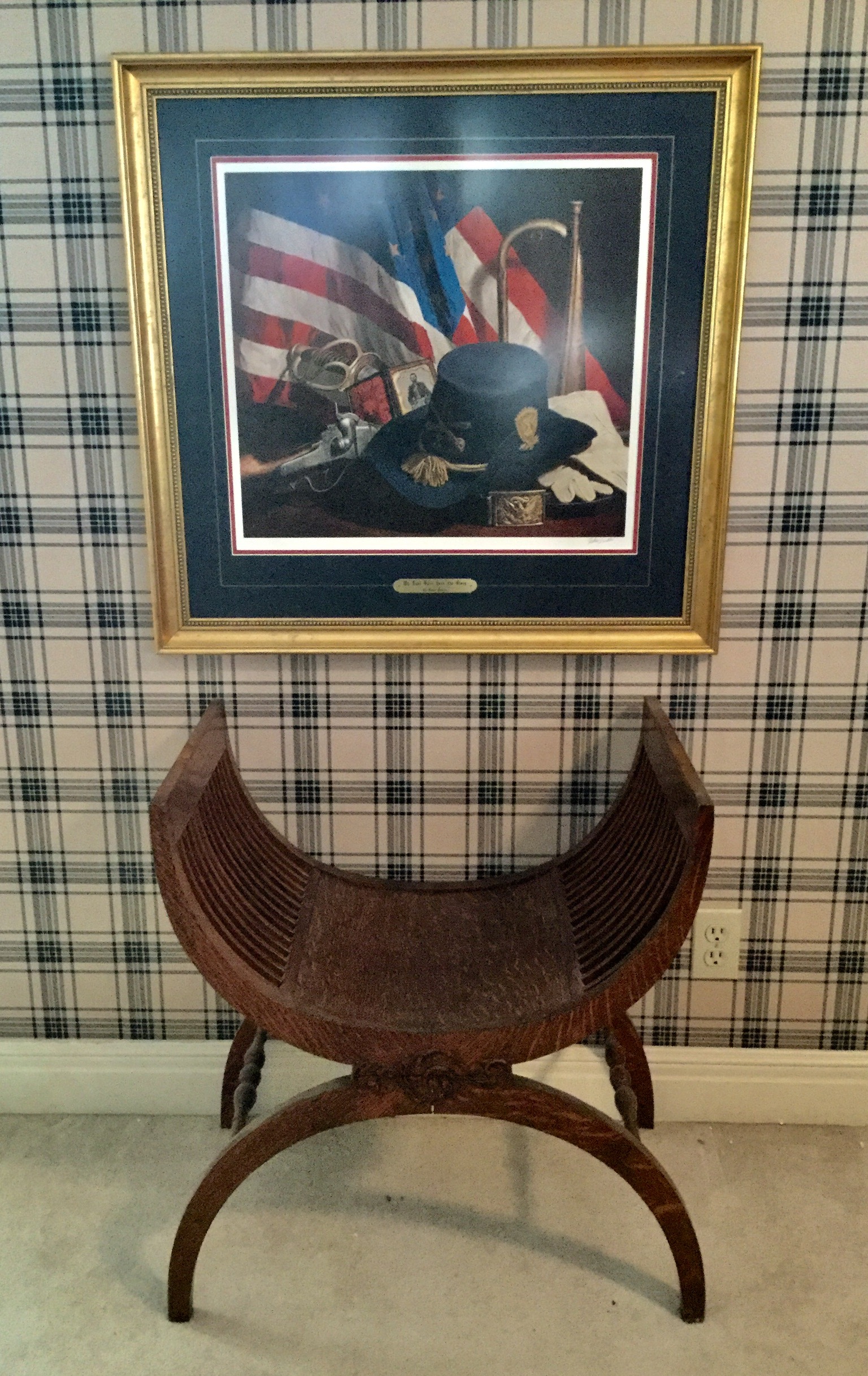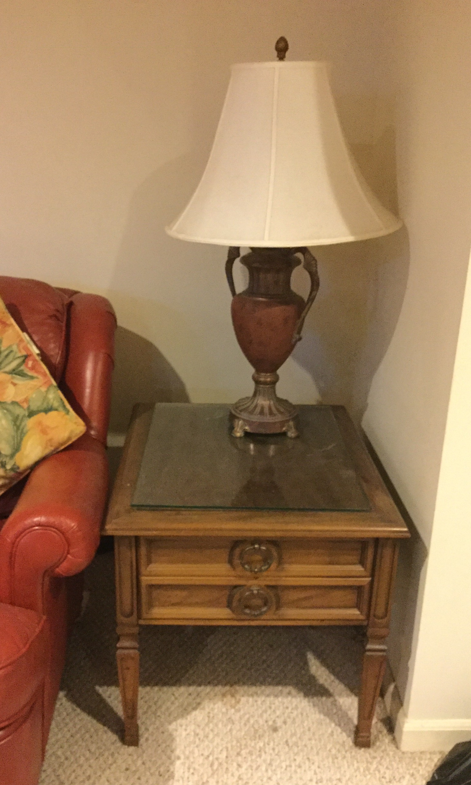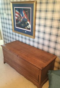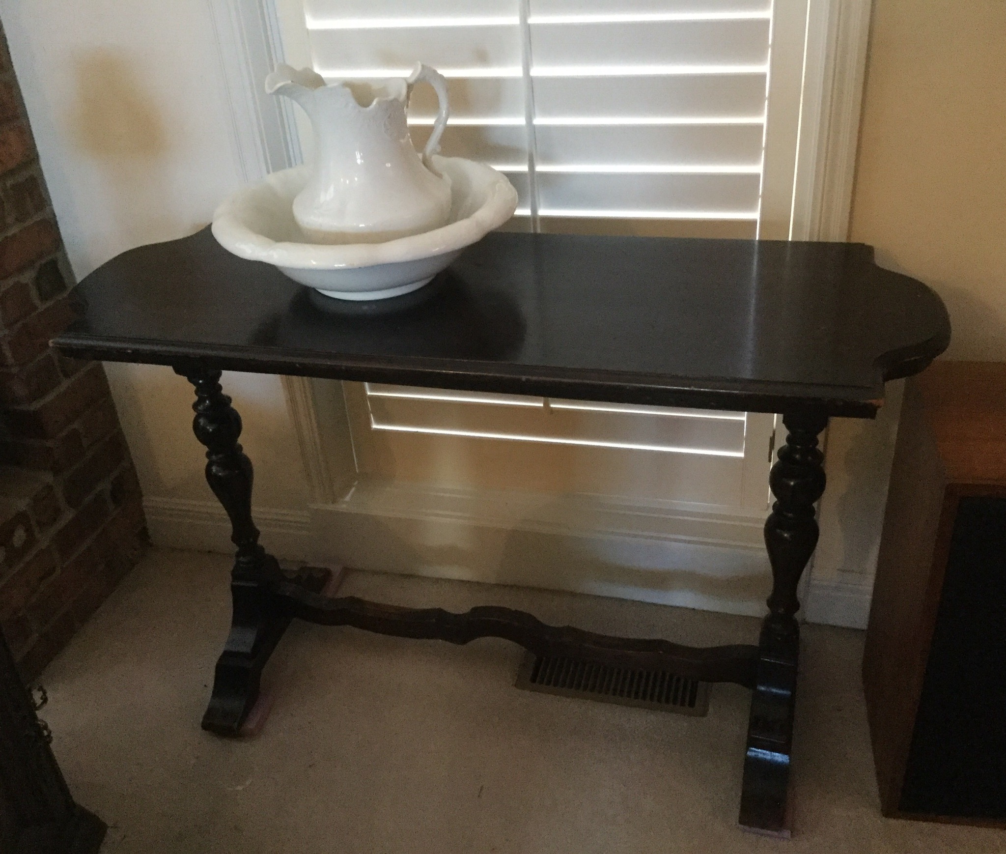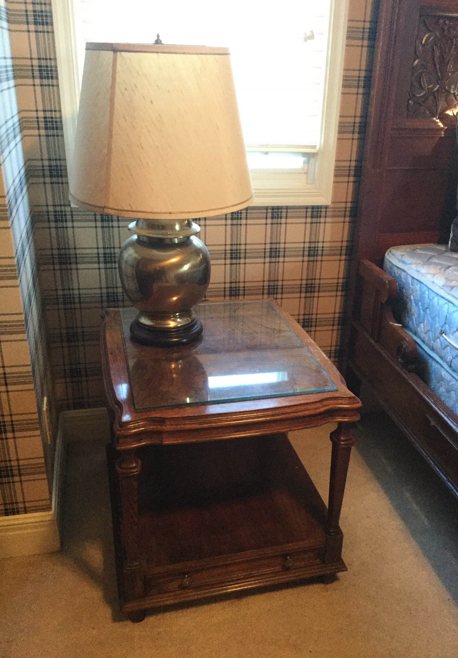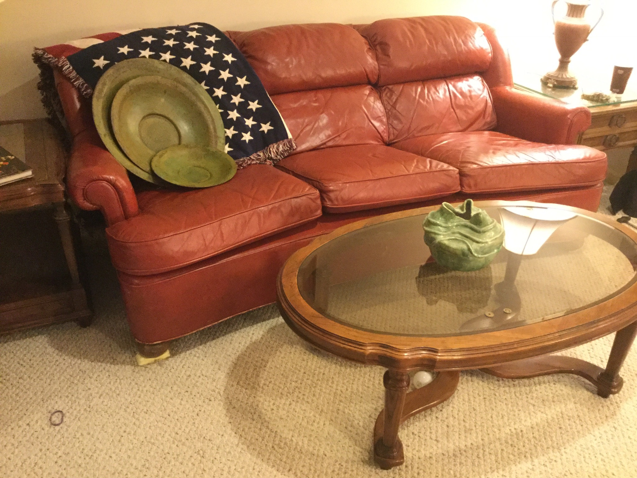 Colonial bench, globe on stand, bathroom spa bench, oak wall/sofa table and matching side table, Jenny Lind babycrib, a fab metal steamer trunk, cream rush-seat bench, pair of Ethan Allen side tables, red leather couch …
