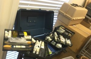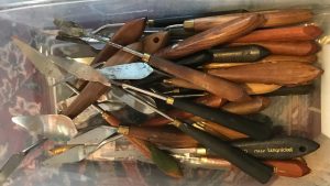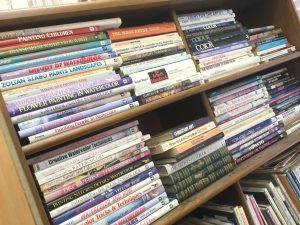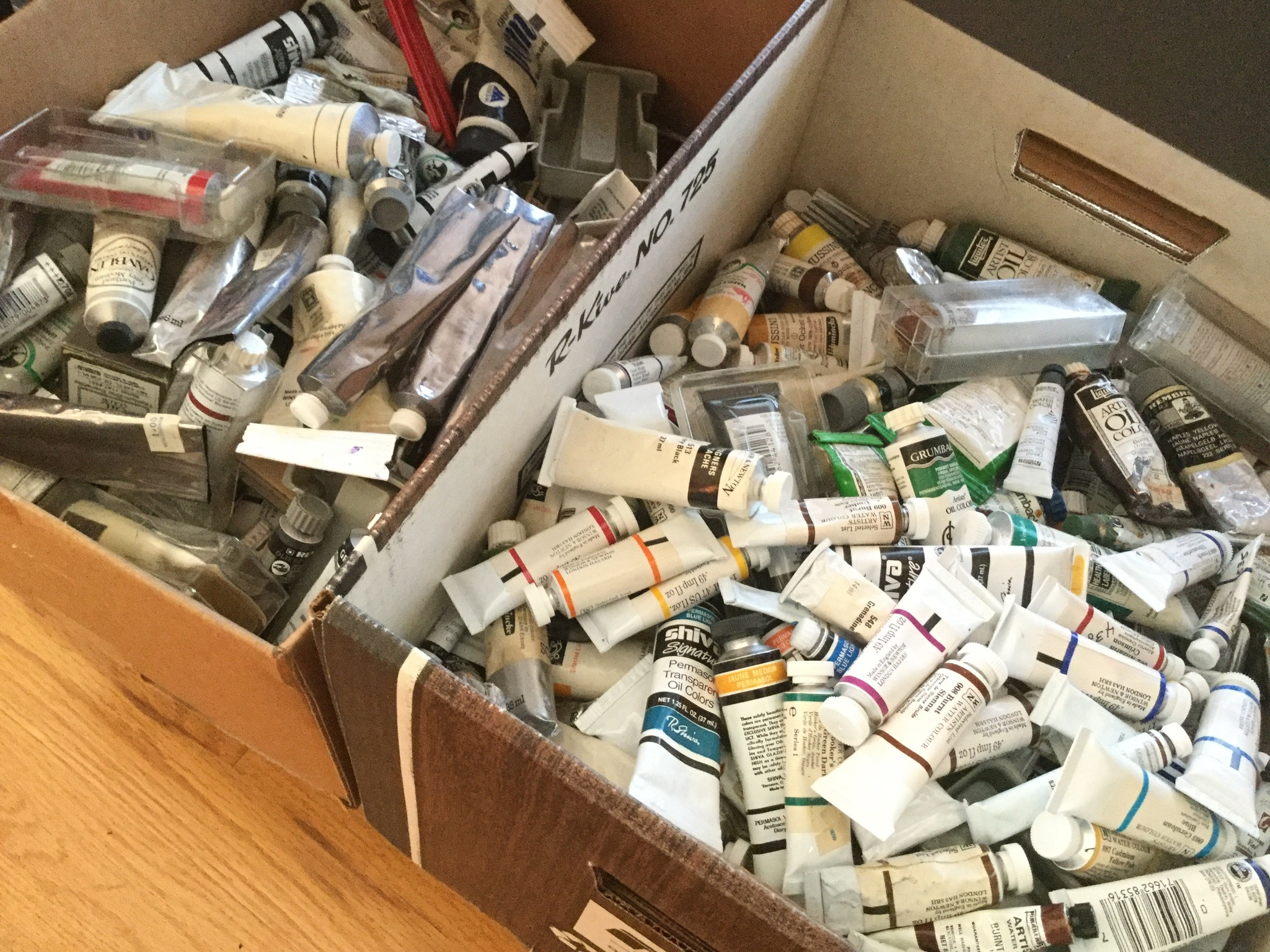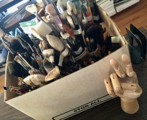 ATTENTION ARTISTS! We have stuff for you out the Big Red Shoe … a plethora of painting supplies: lots of new canvas’, HUNDREDZZZ of paint brushes and palette knives, art tools, 3 large boxes of tube paint, a LARGE antique easel and several other easels, chemicals, shelves and shelves of art books and how-to art and floral books and the like, art boxes and some paper …