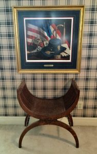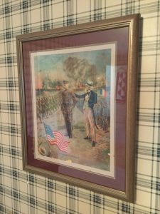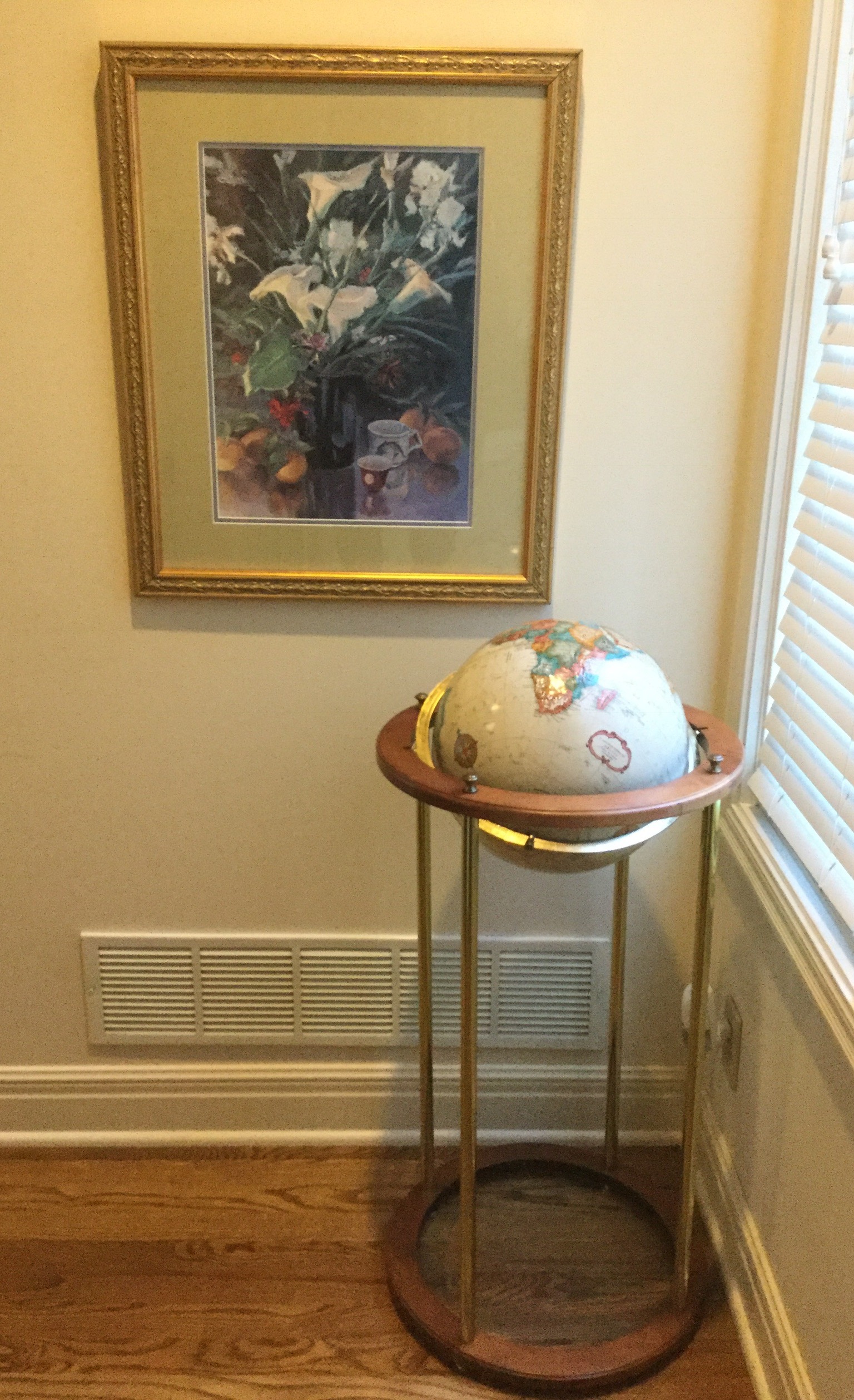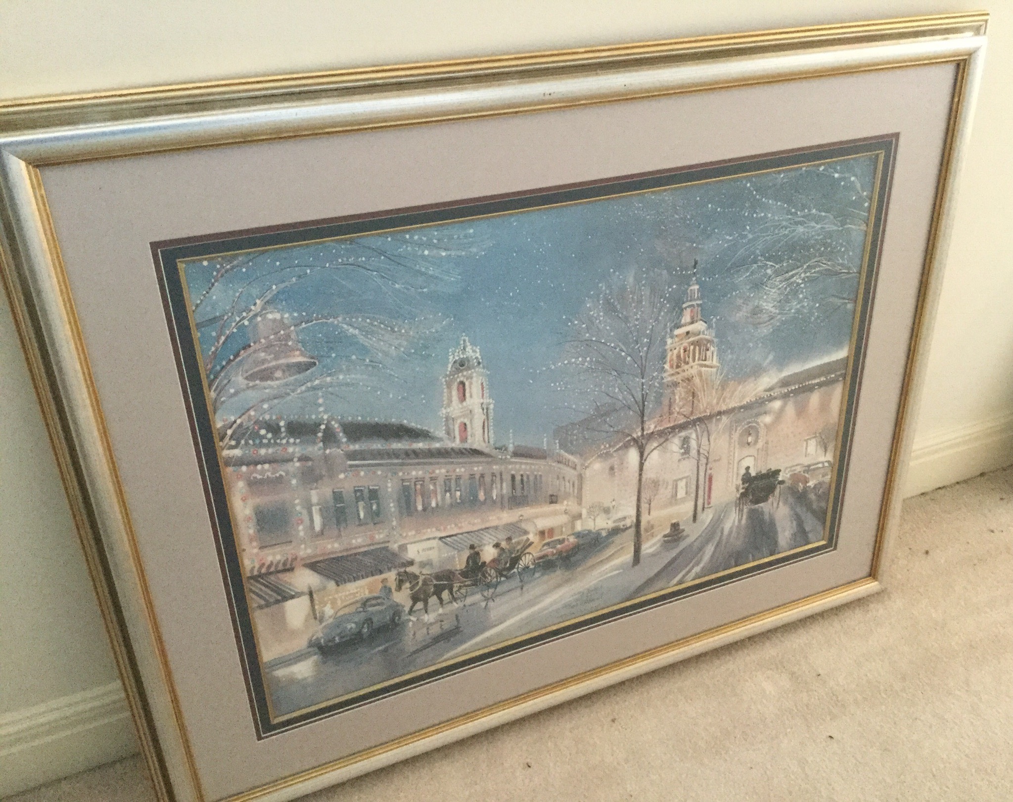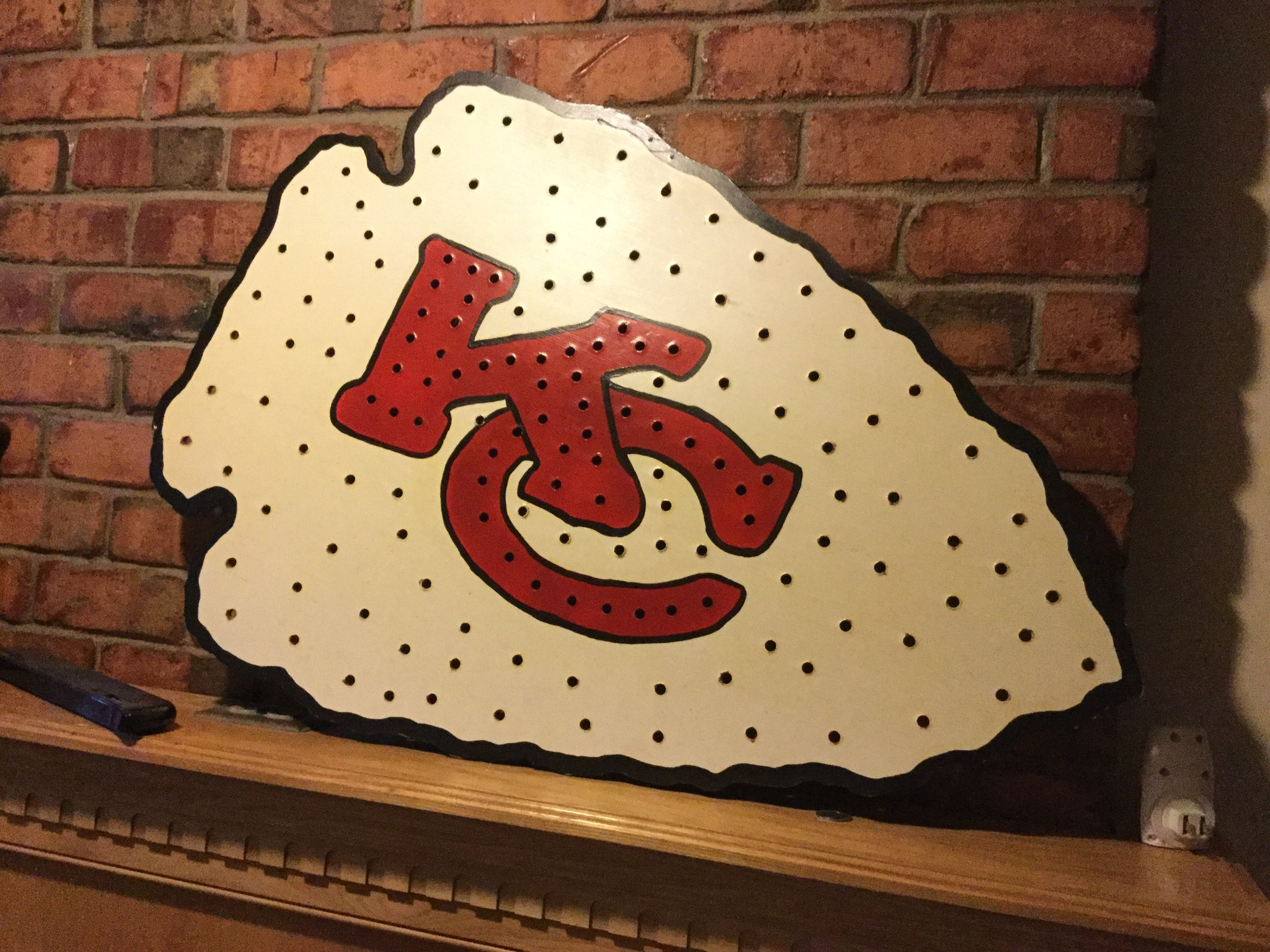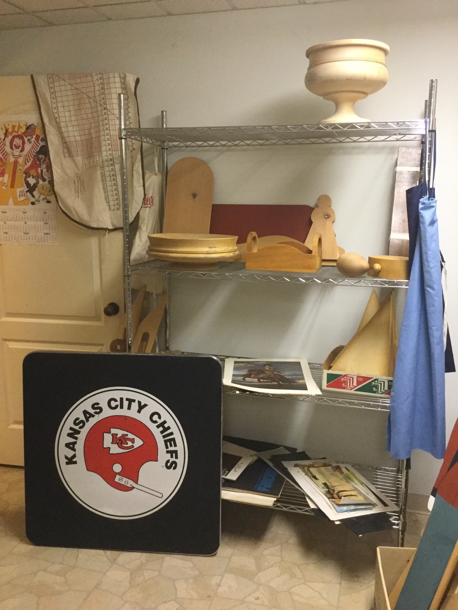 Good selection of framed artwork, KC Chiefs decorative arrowhead (put lights thru it and you’re now the popular kid on the block!), 2 antique mantel clocks, German beer steins, Royals, Chiefs and Mizzou decanters …