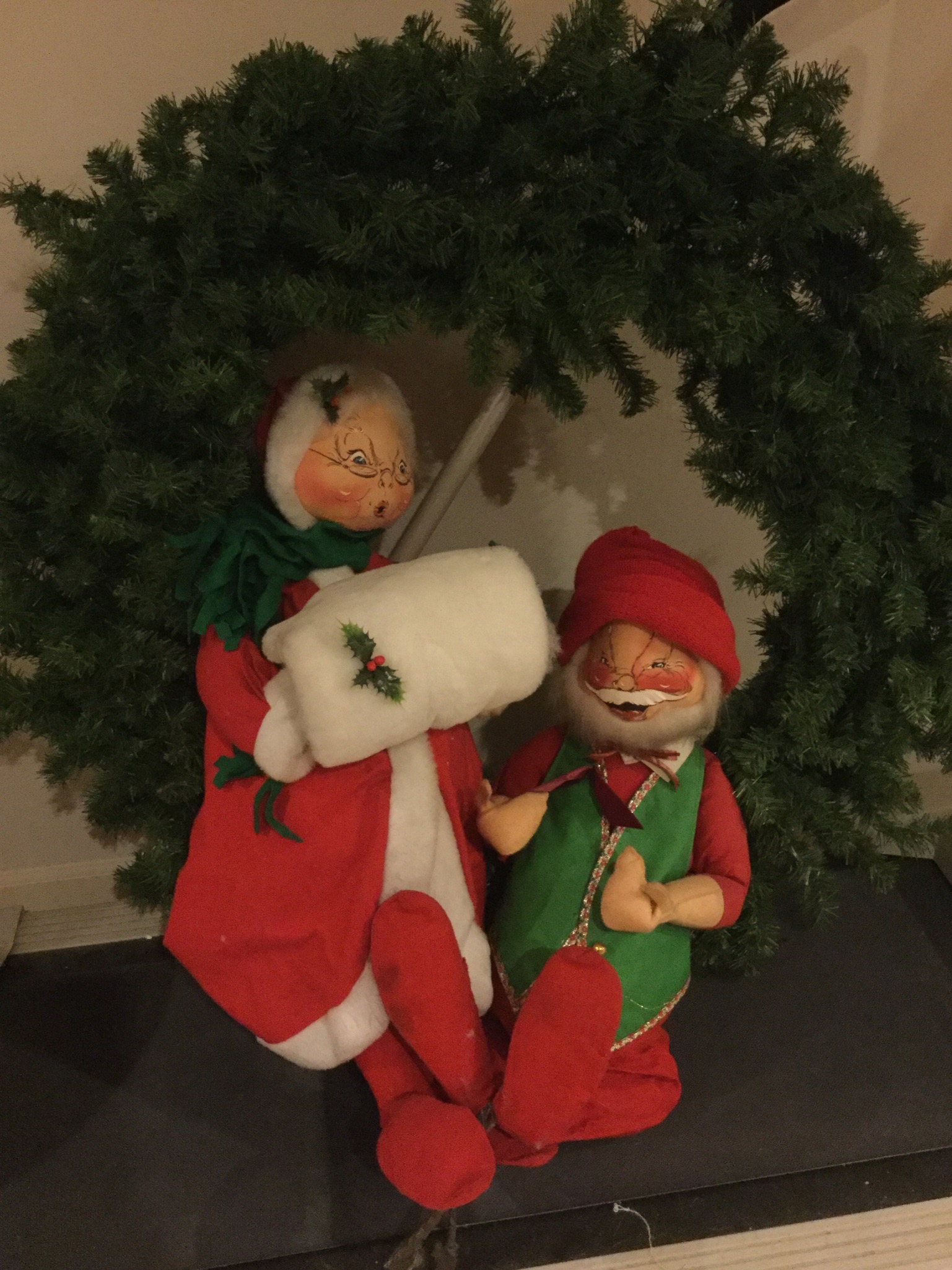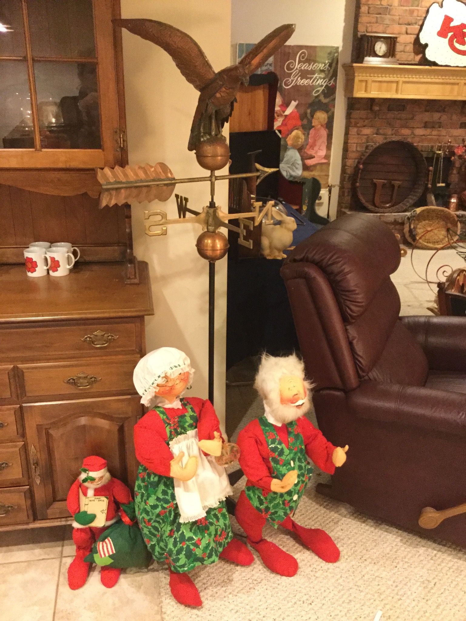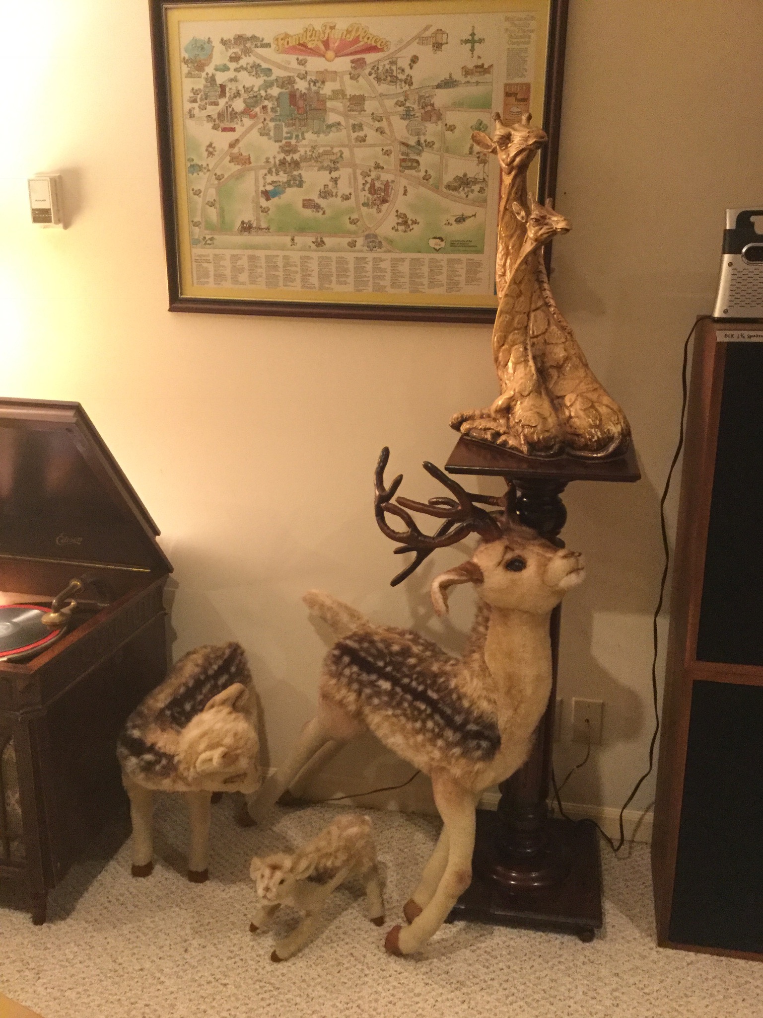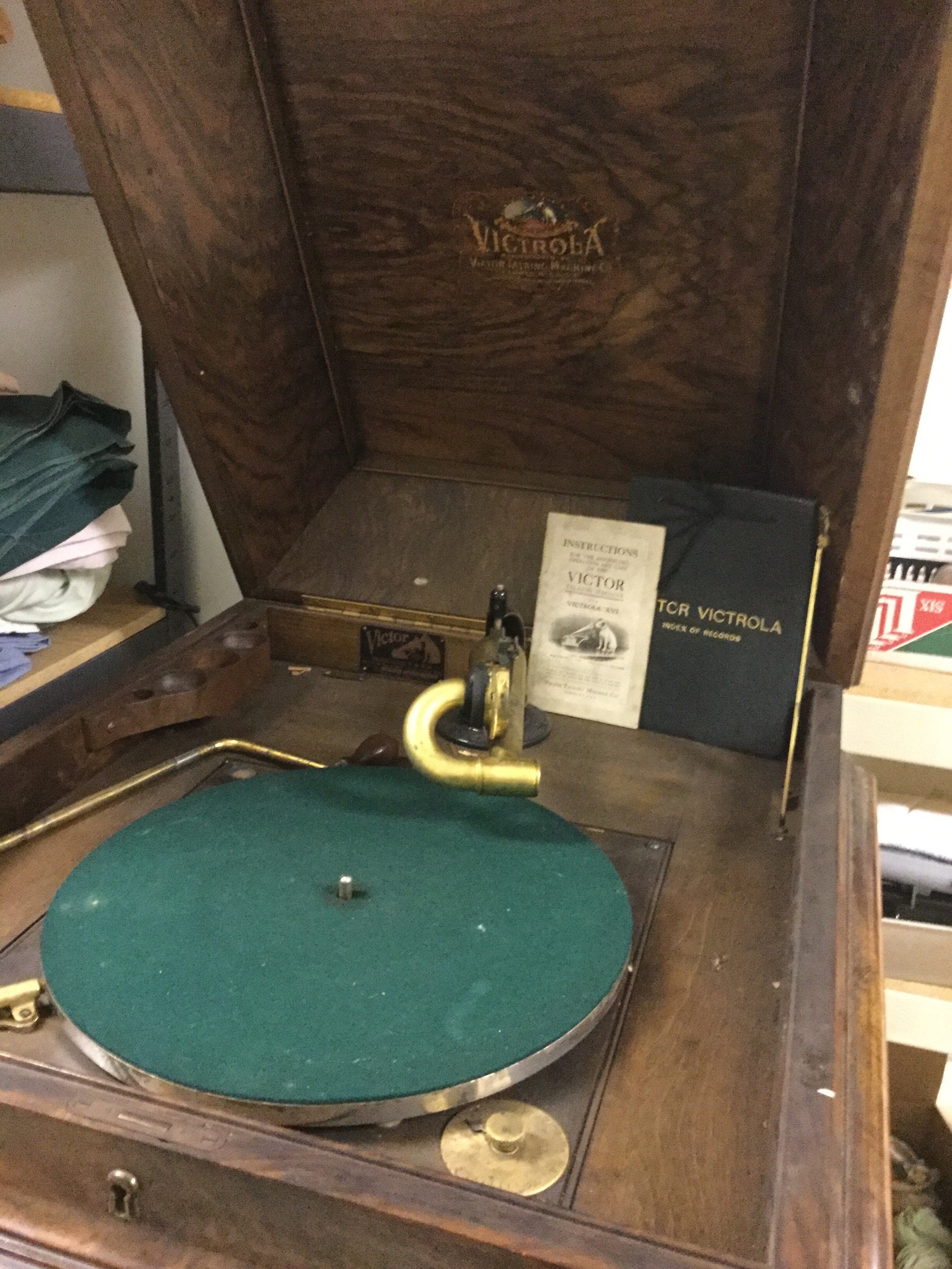 Victrola and baby Victrola, wood pieces to make and paint whate’er ya want, dishesdishesdishes, including Metlox, full kitchen and pots/pans, some kids toys, and the biggest Christmas tree this side-a Rockefeller Plaza …