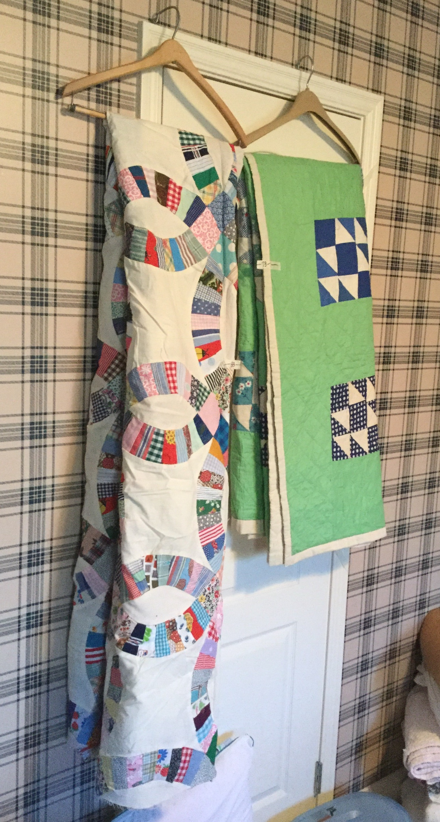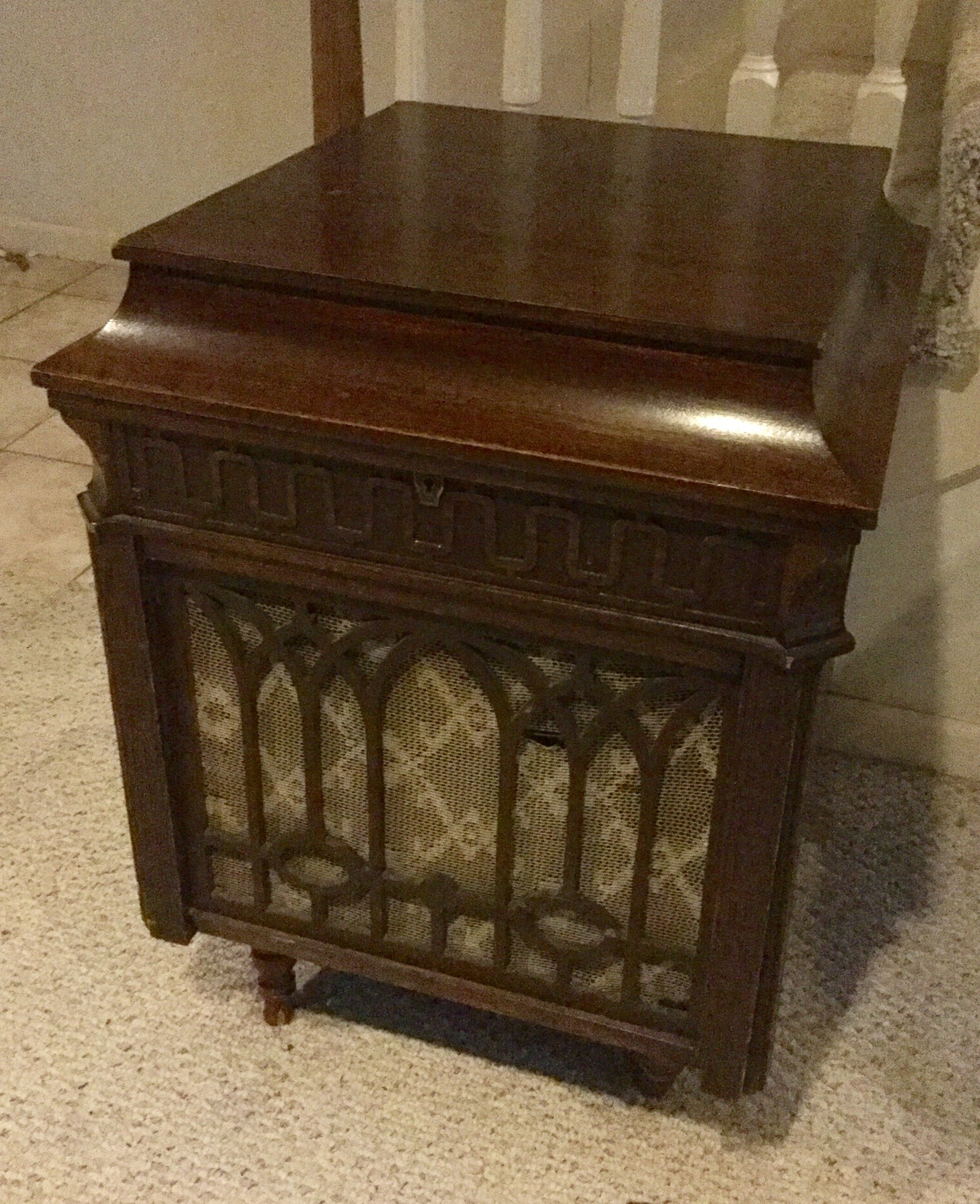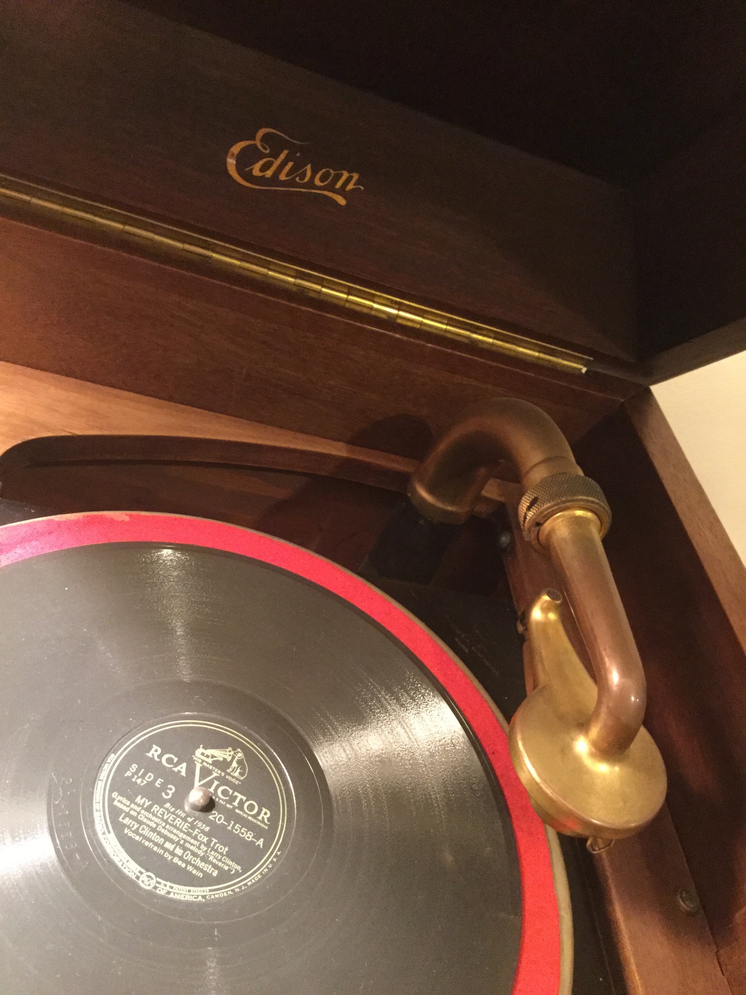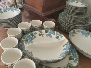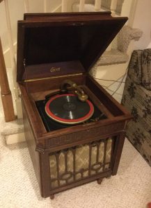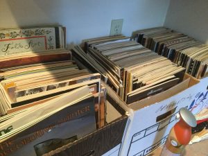 Victrola and baby Victrola, wood pieces to make and paint whate’er ya want, dishesdishesdishes, including Metlox, full kitchen and pots/pans, some kids toys, and the biggest Christmas tree this side-a Rockefeller Plaza …
