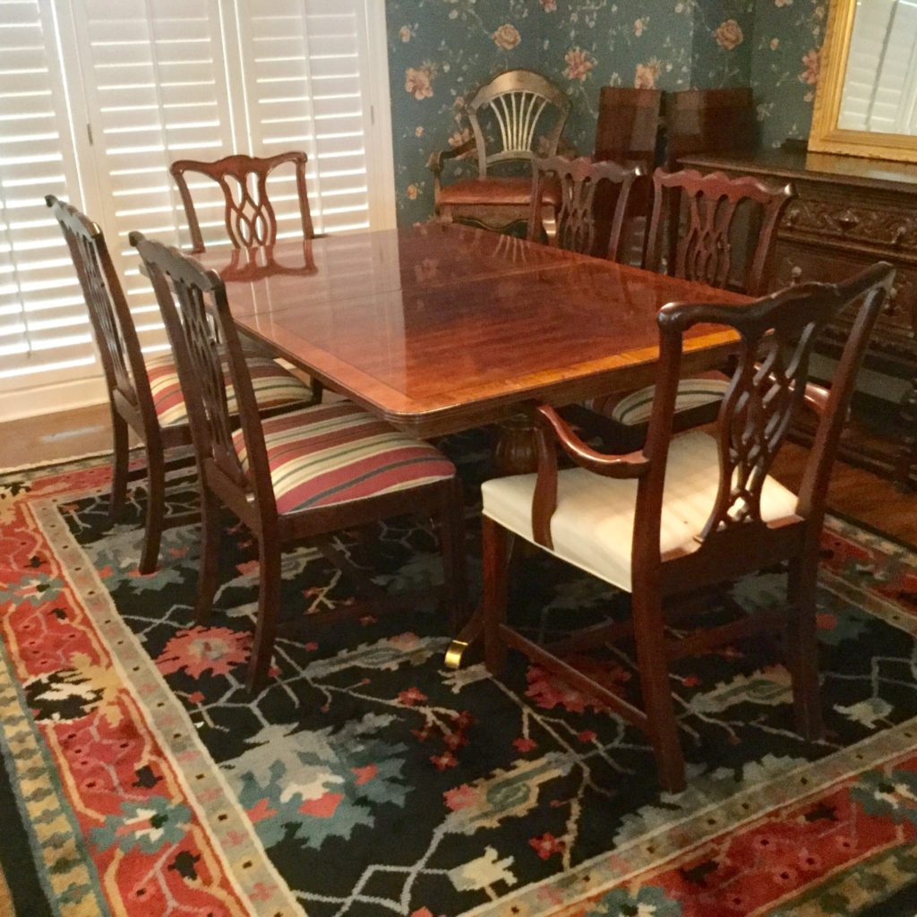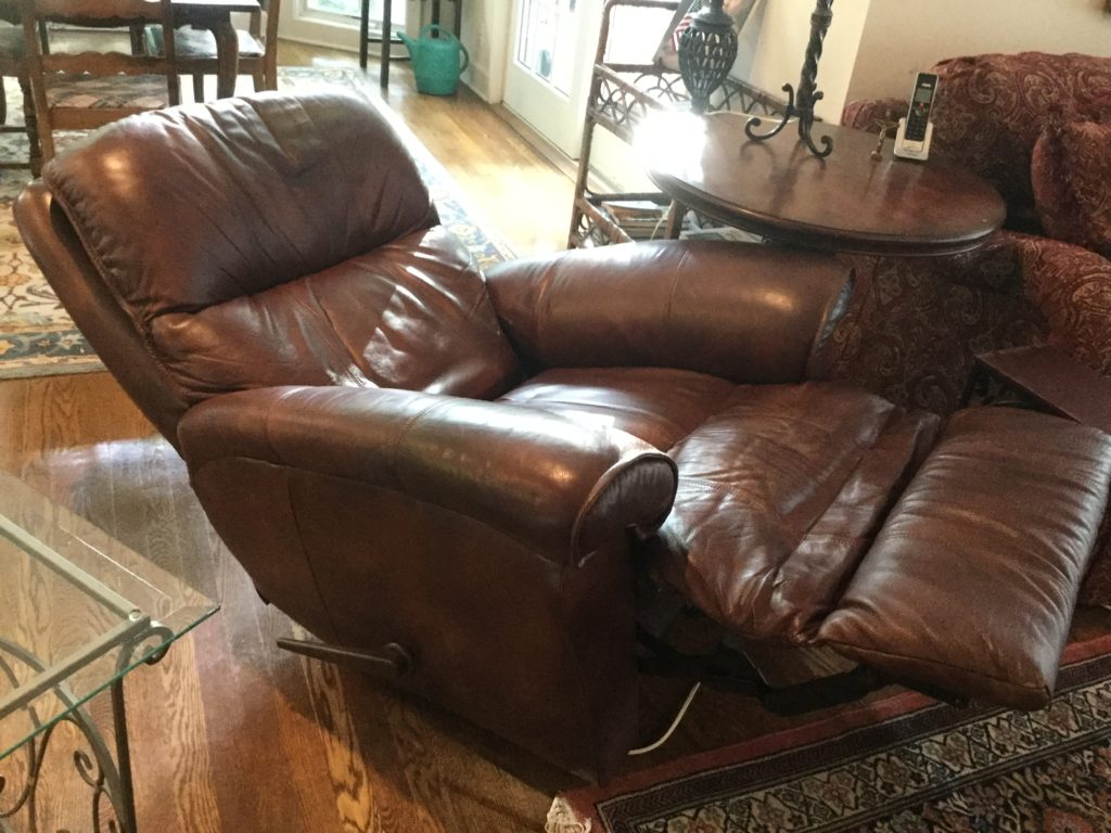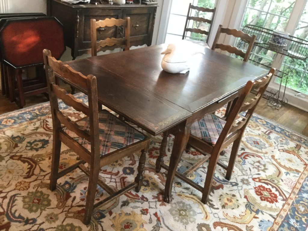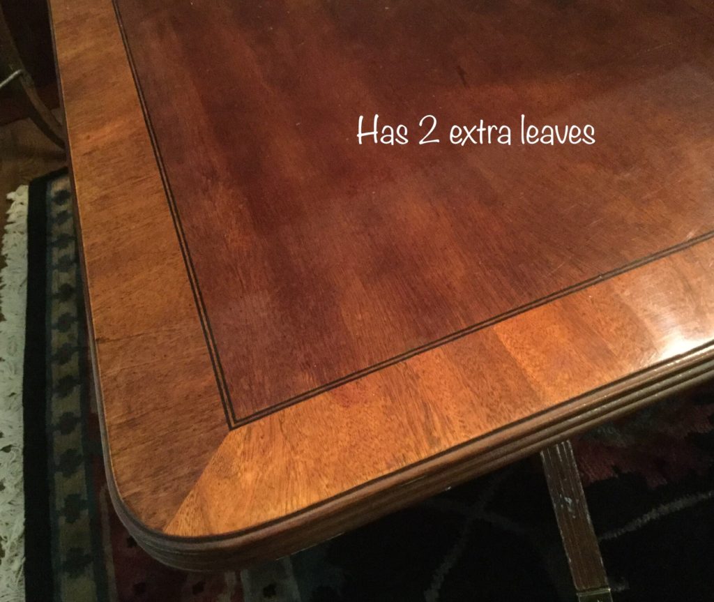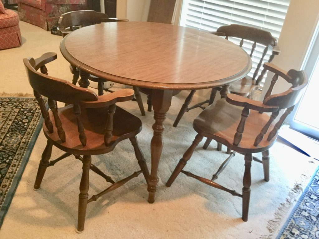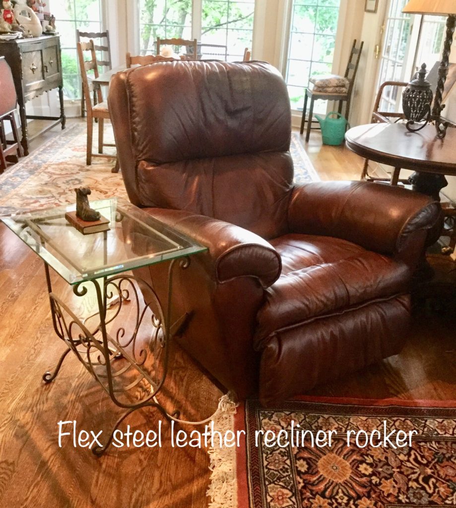 The furniture is fabulous and includes a so sweet hutch with bottom storage, a cute refectory (pull out leaves), a brown leather Flexsteel rocker-recliner …