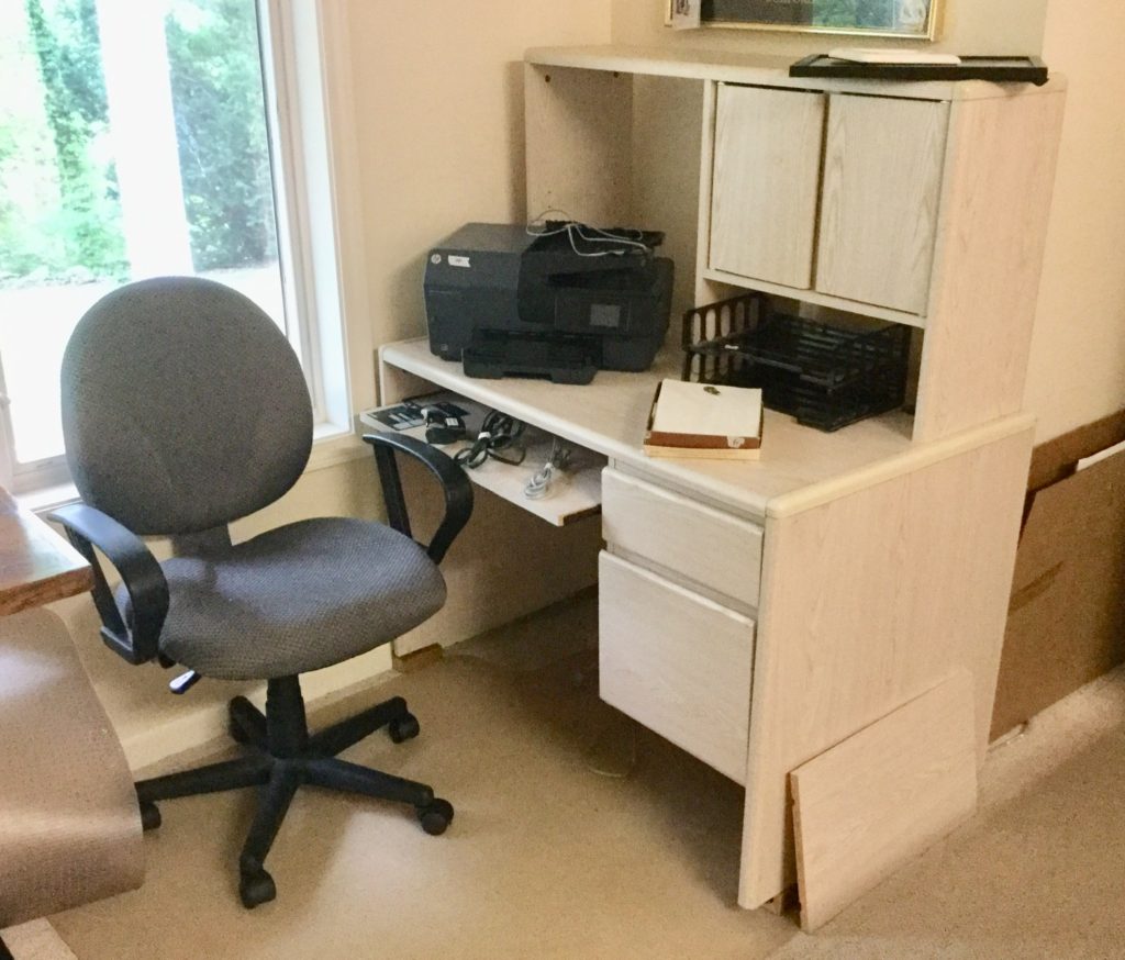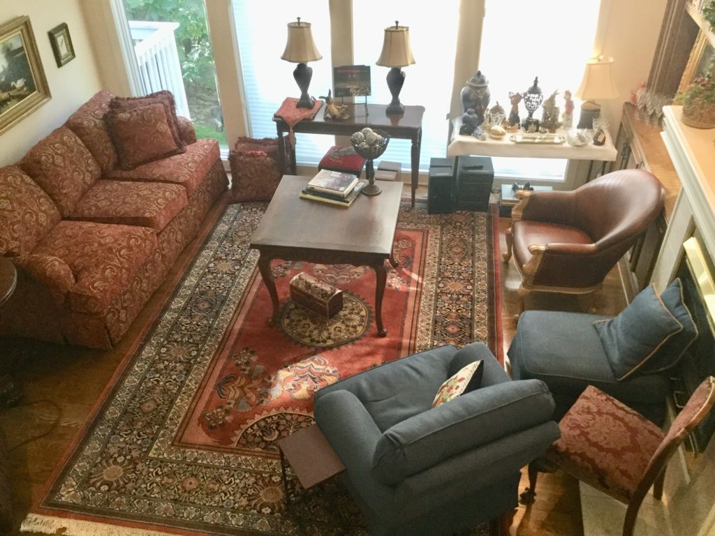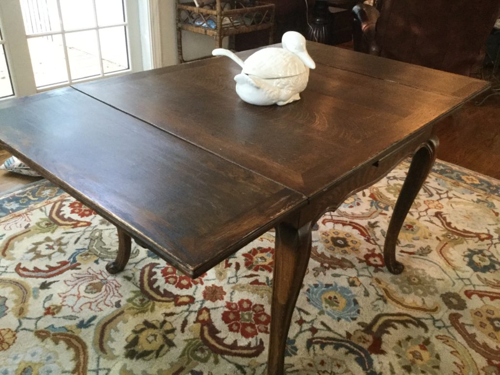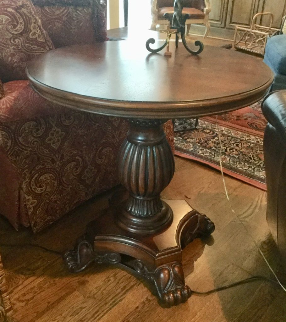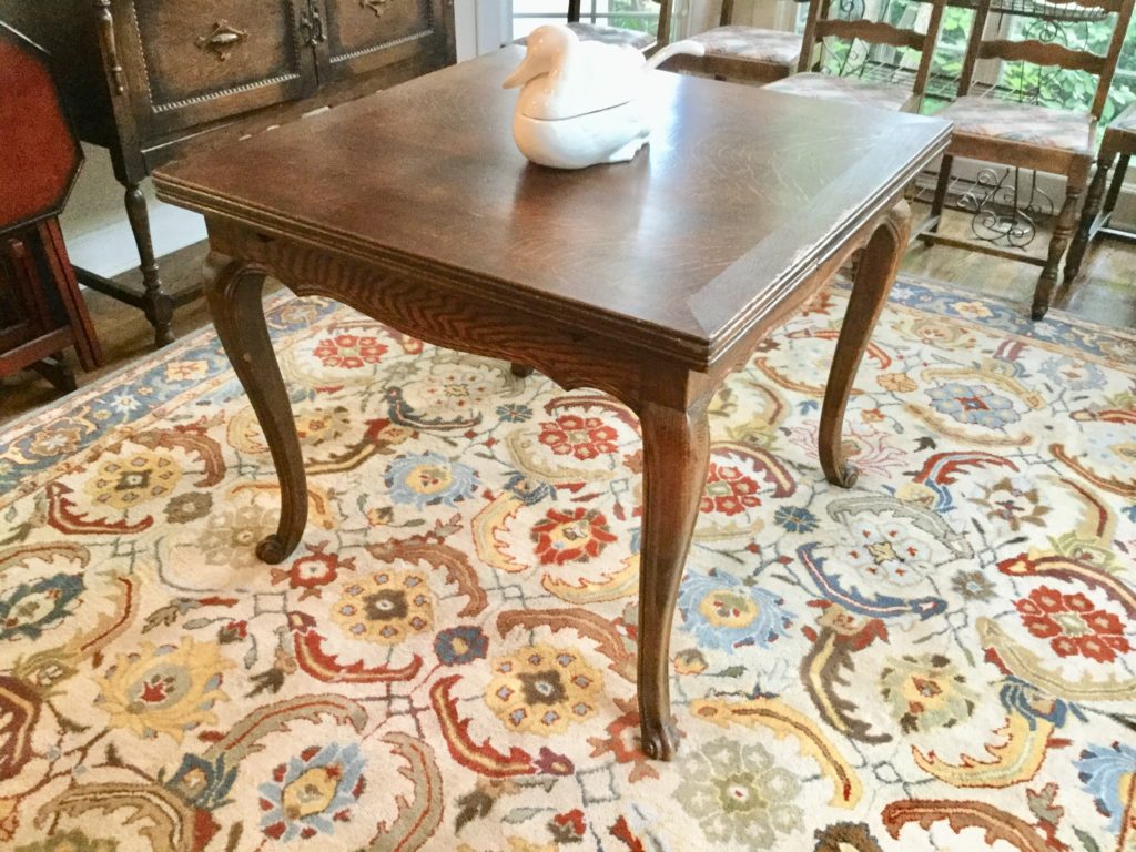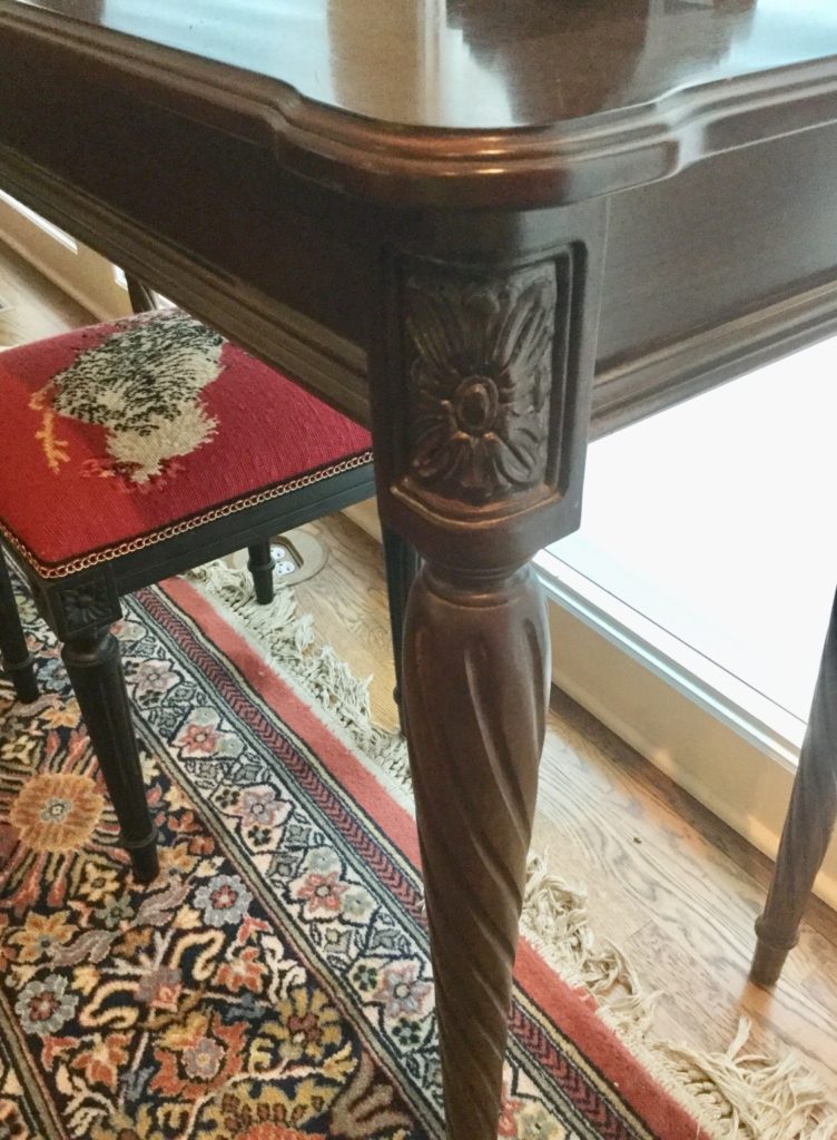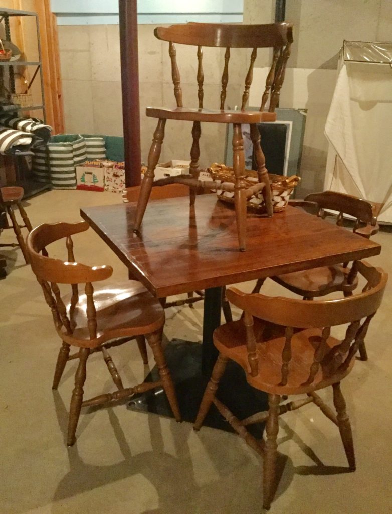 The furniture is fabulous and includes a so sweet hutch with bottom storage, a cute refectory (pull out leaves), a brown leather Flexsteel rocker-recliner …