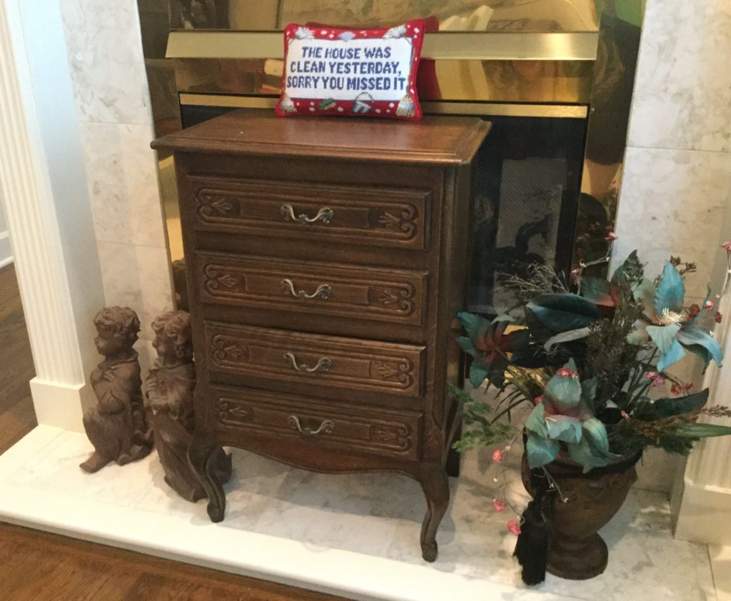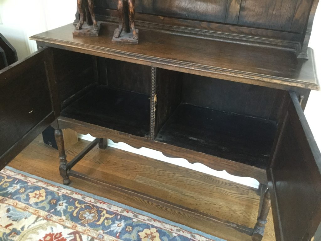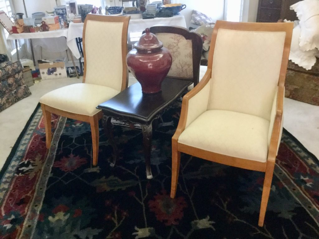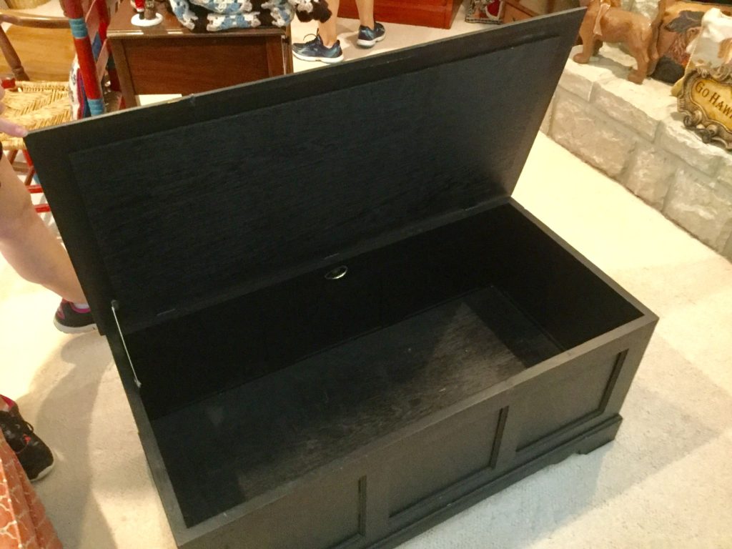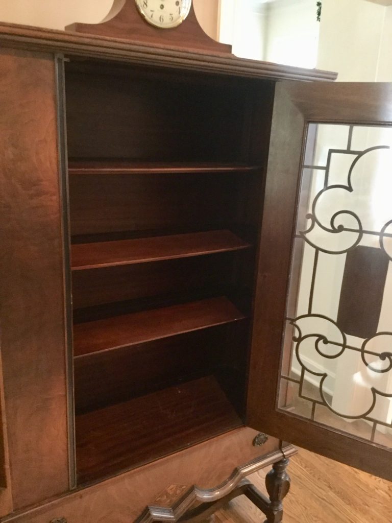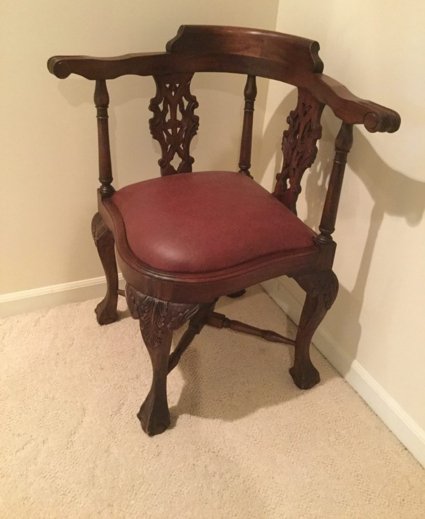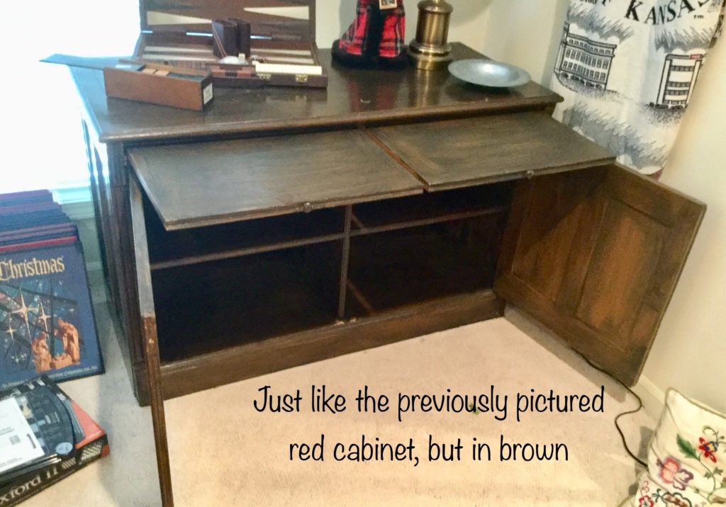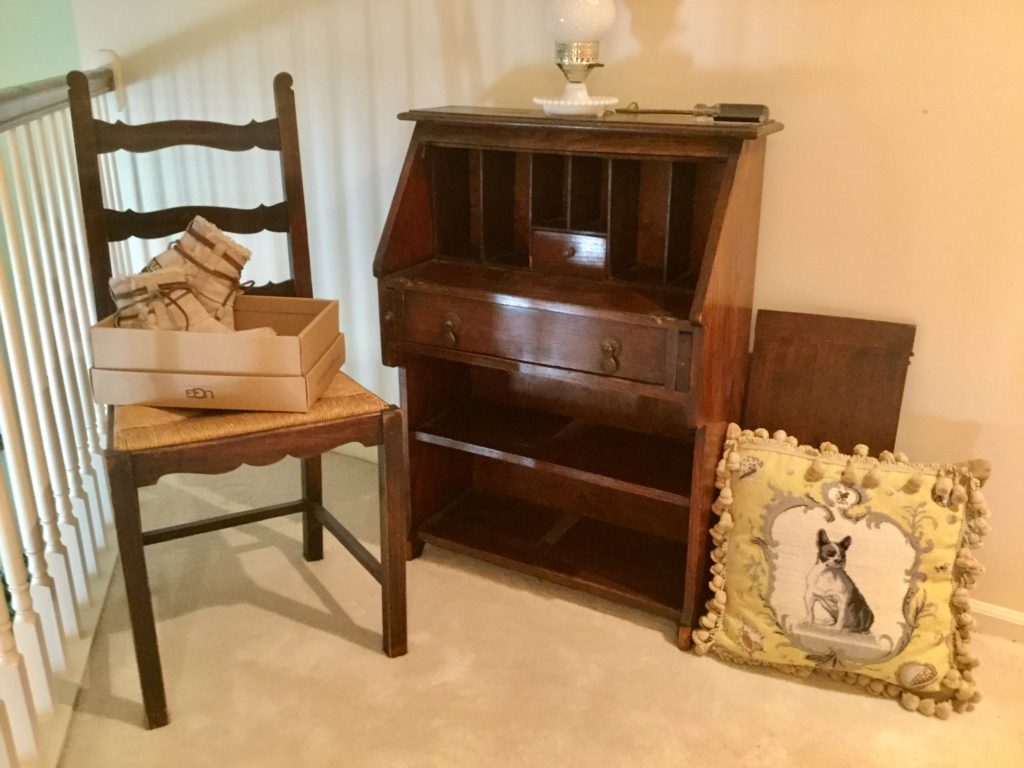 2 storage chests (one red, one brown) with pull out ledges, Mid Century Modern stereo console with Drexel cabinet (radio works, haven’t tried the turntable), carved wood corner chair …