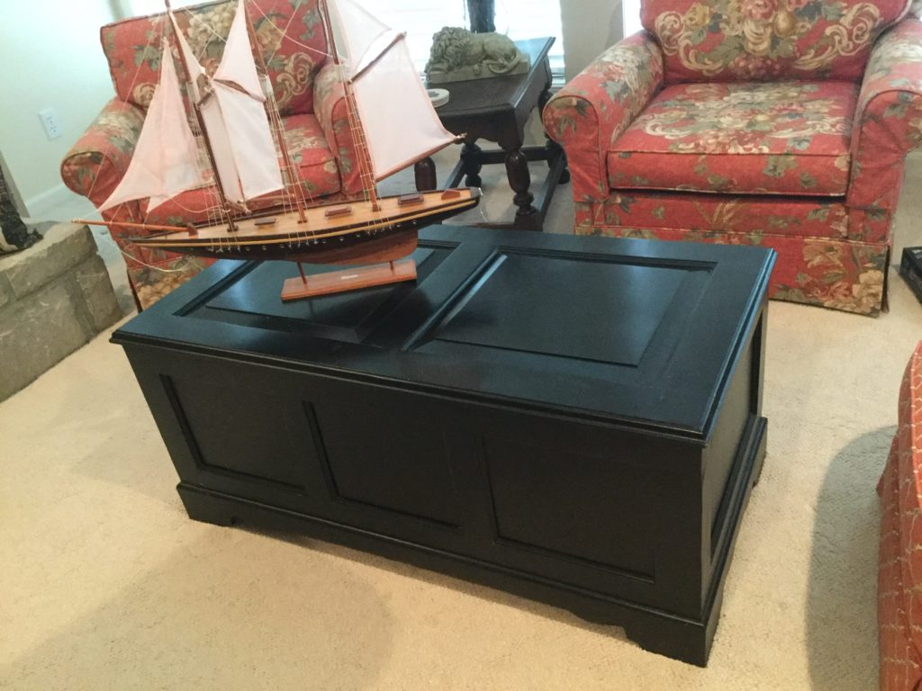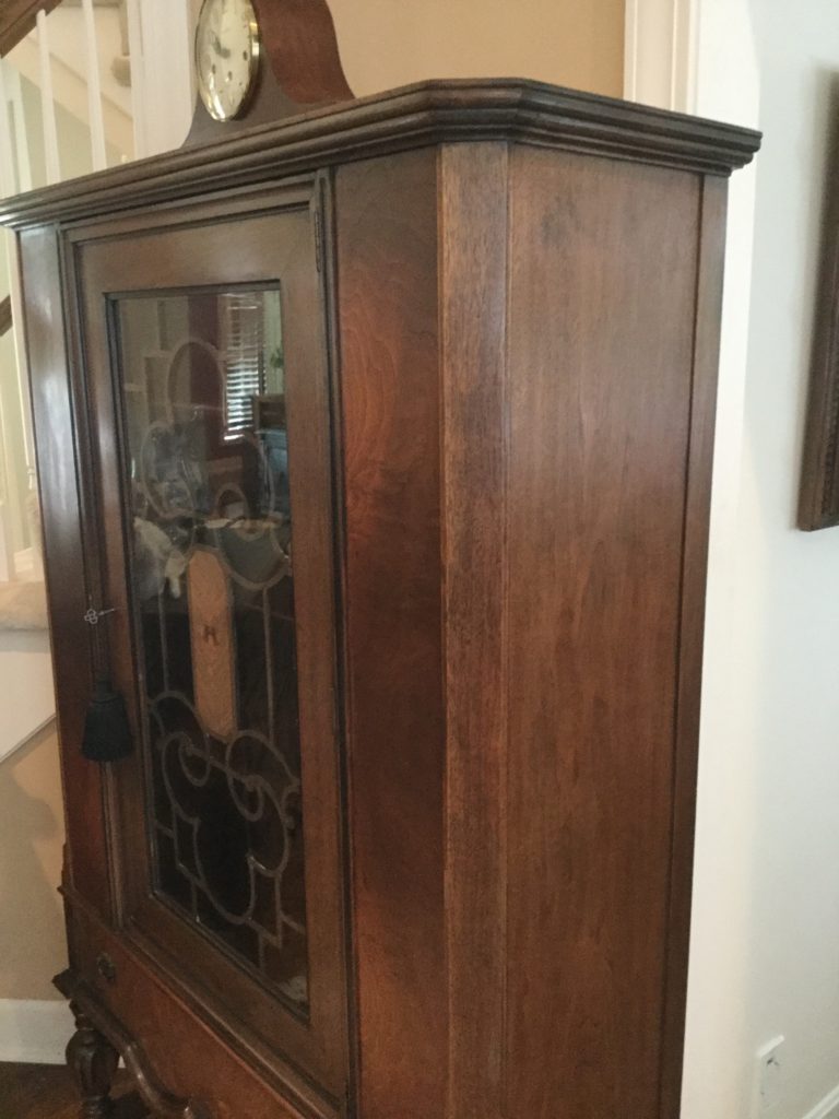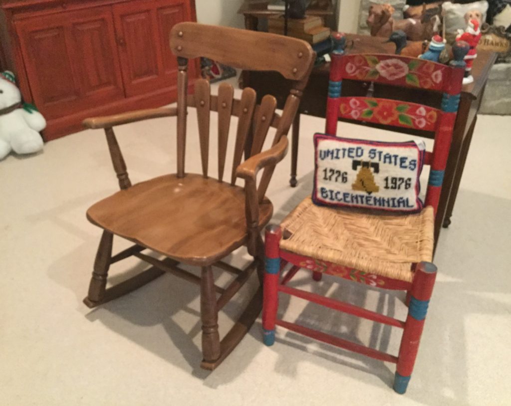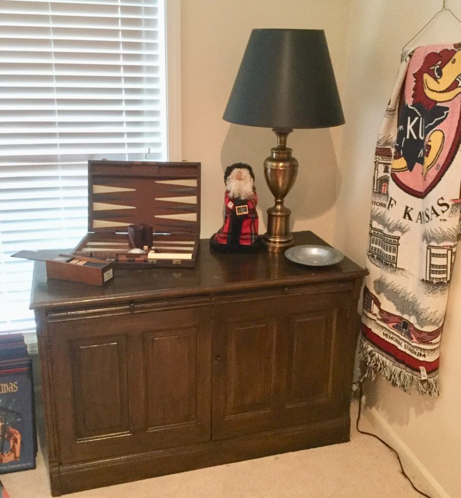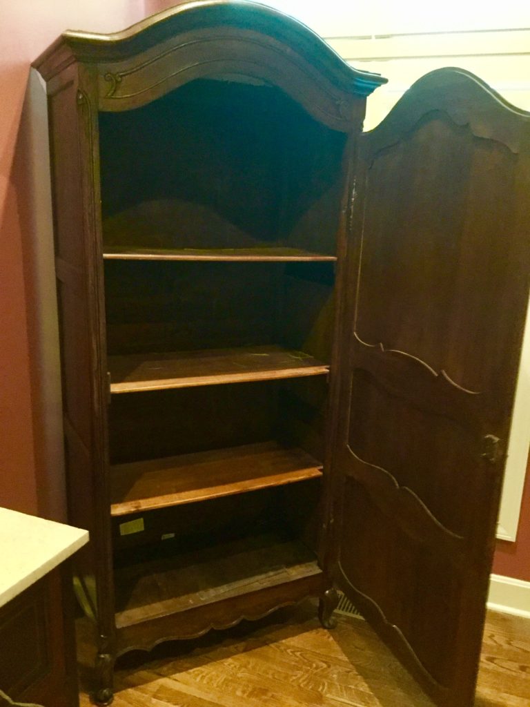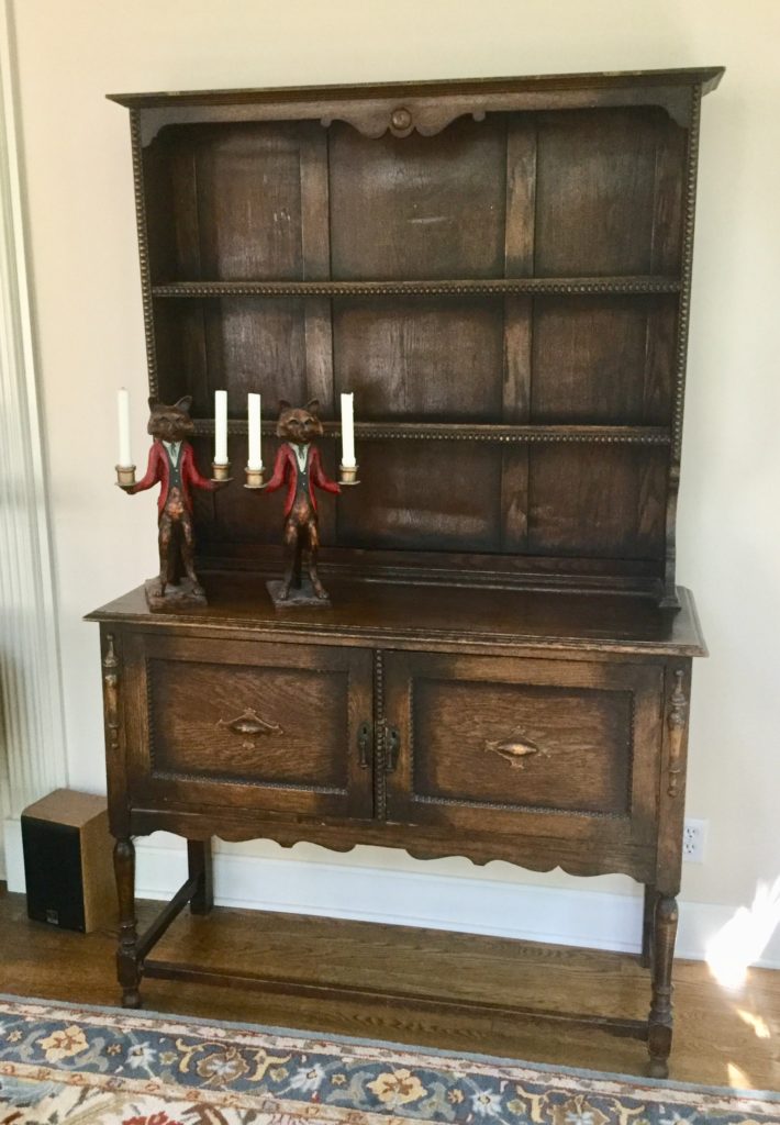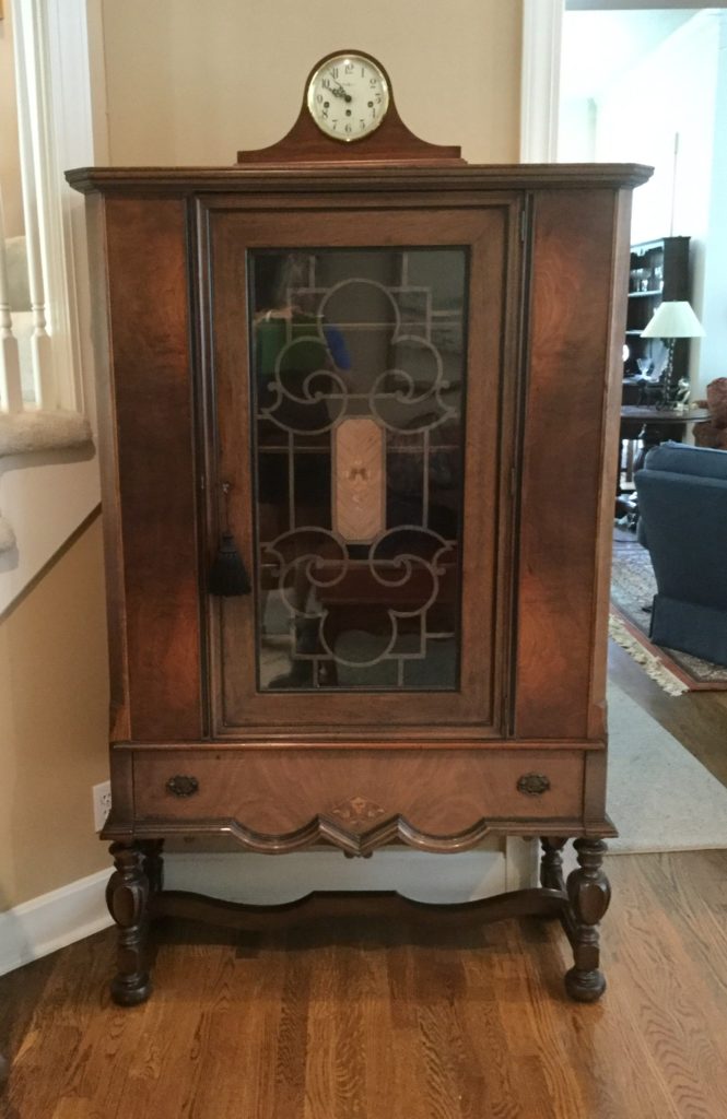 2 storage chests (one red, one brown) with pull out ledges, Mid Century Modern stereo console with Drexel cabinet (radio works, haven’t tried the turntable), carved wood corner chair …