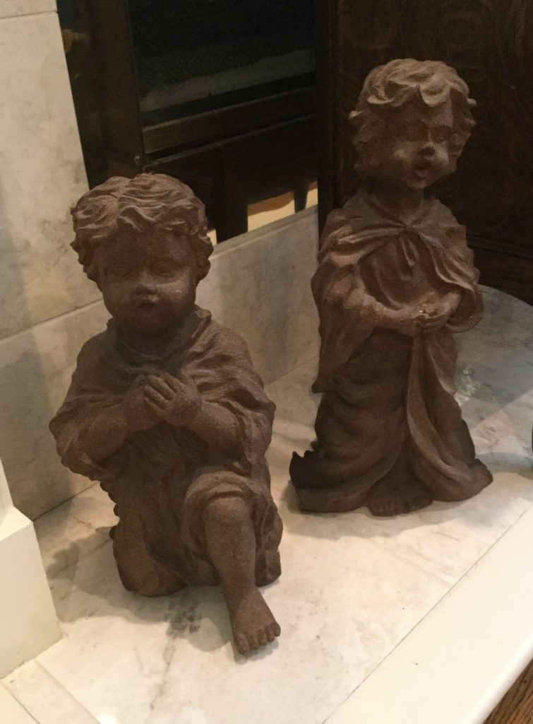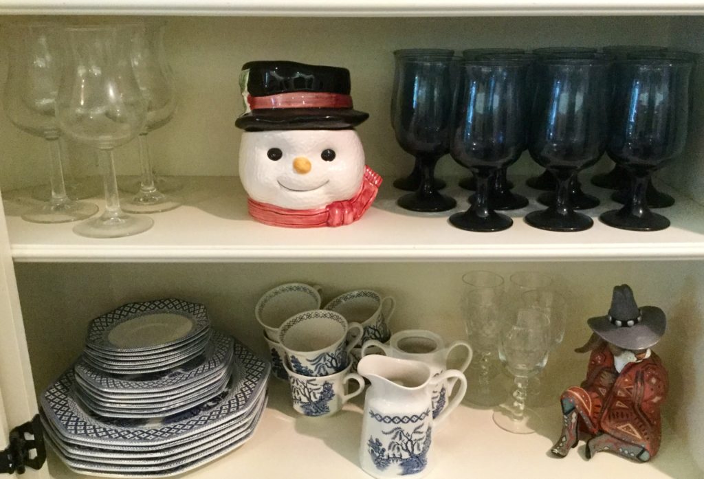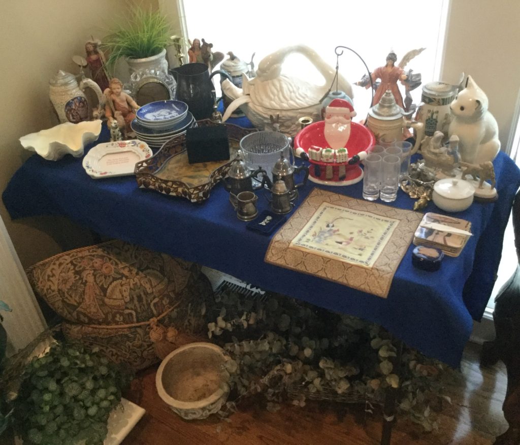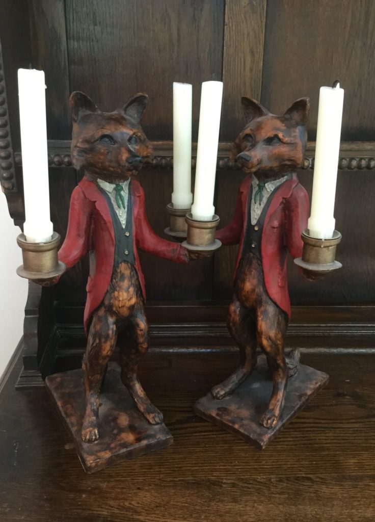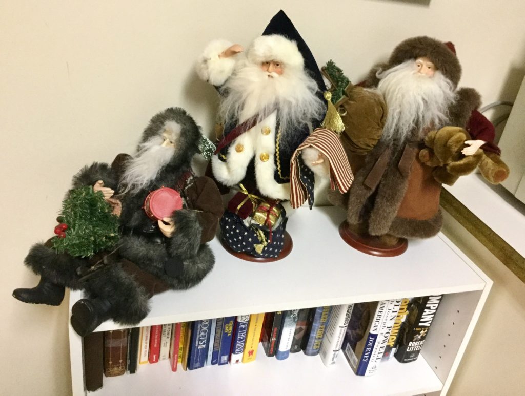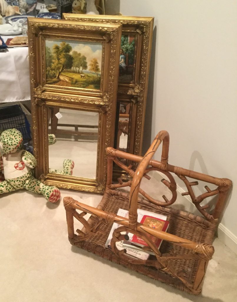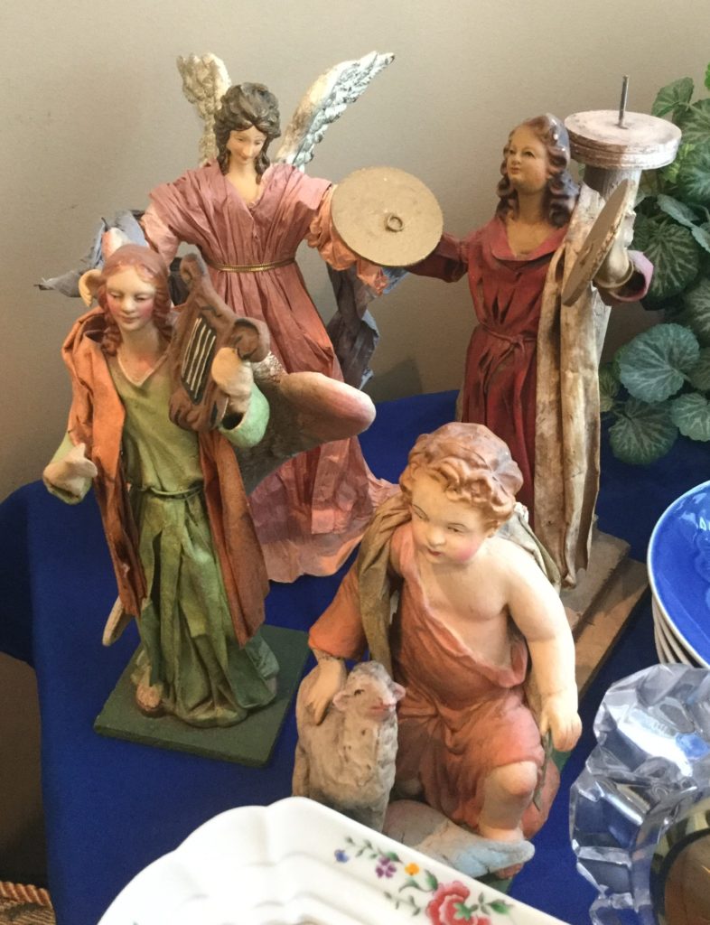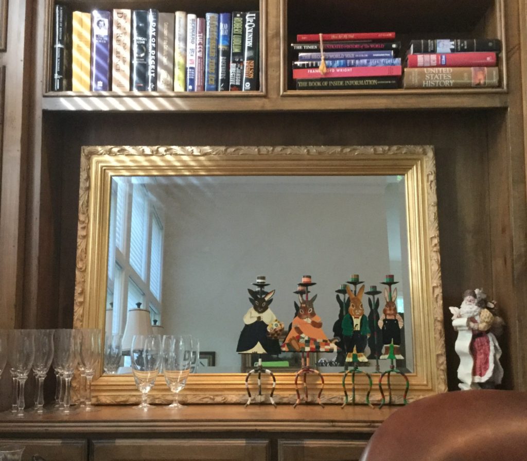 Pair of heavyfox candlestick holders that we’ve named Frank and Dean, Waterford crystal stems (set of 10 and set of 4), manywall mirrors, large selection of Santas (I hear he’s coming to town …) including a darling Lynn Haney Santa in the box …