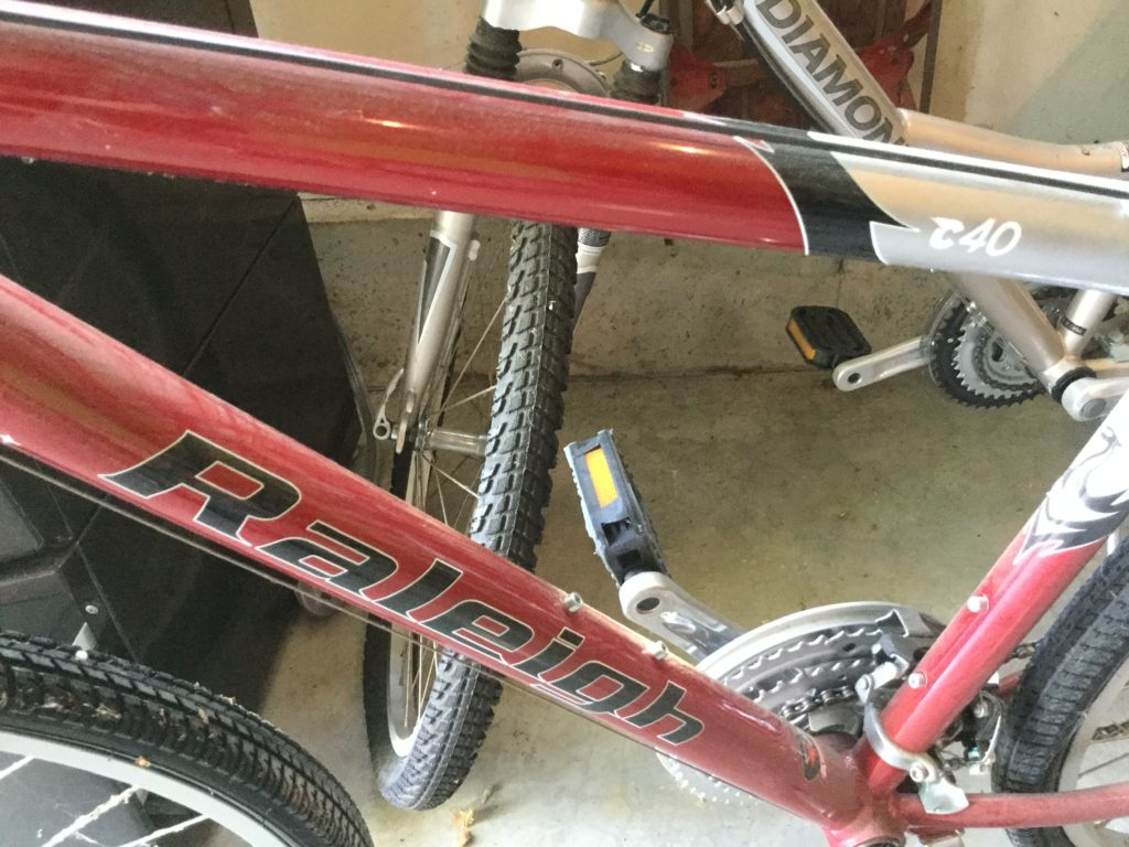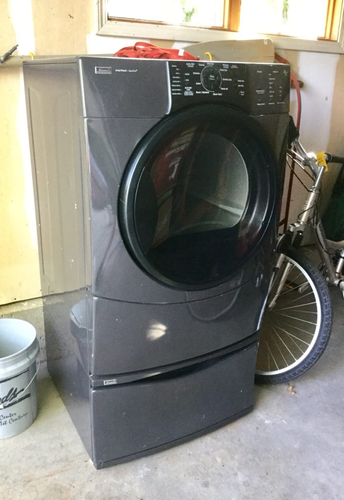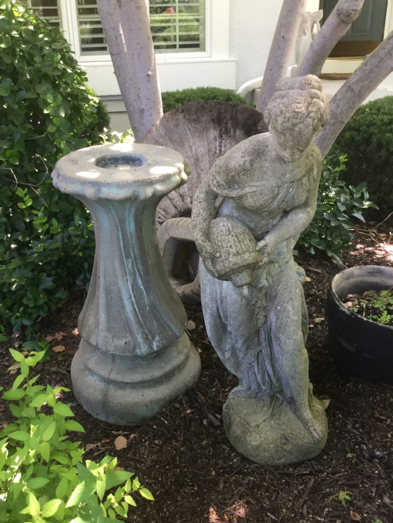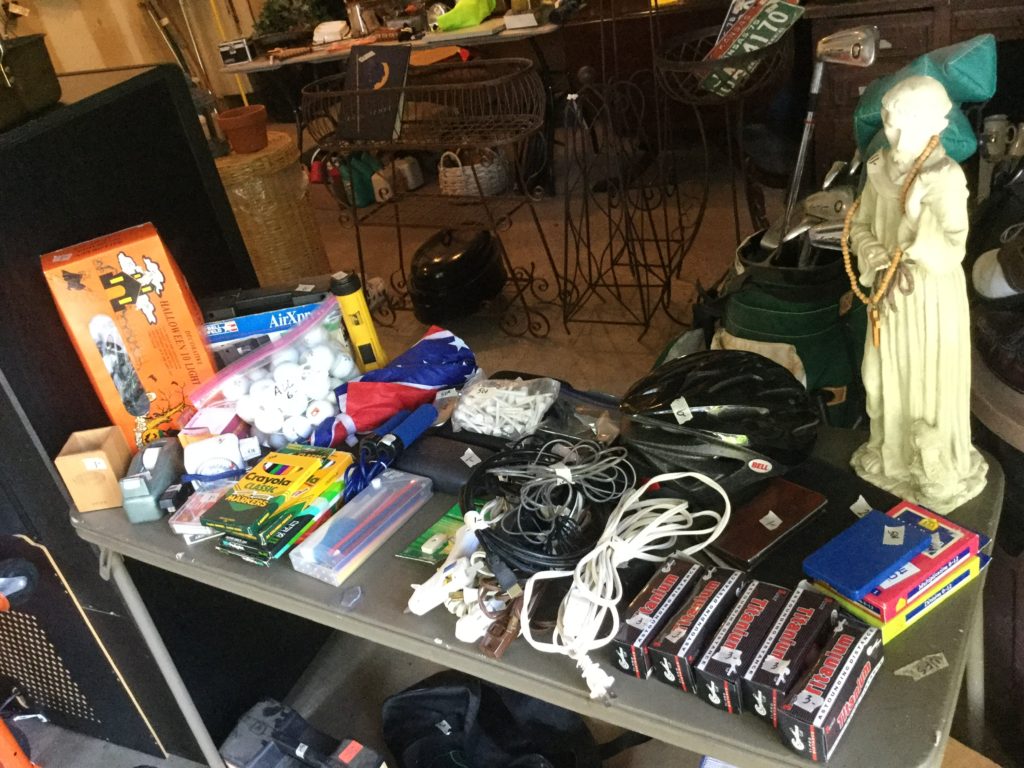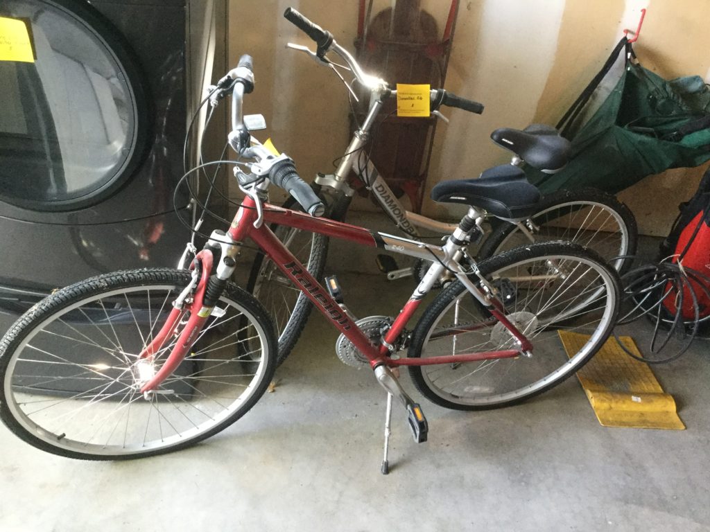 Good selection of concrete statuary, old wood big desk, Coleman camping grill, Char-Broil gas grill, Husky pressure washer, Raleigh and Diamondback bicycles, Kenmore Elite front load washing machine …