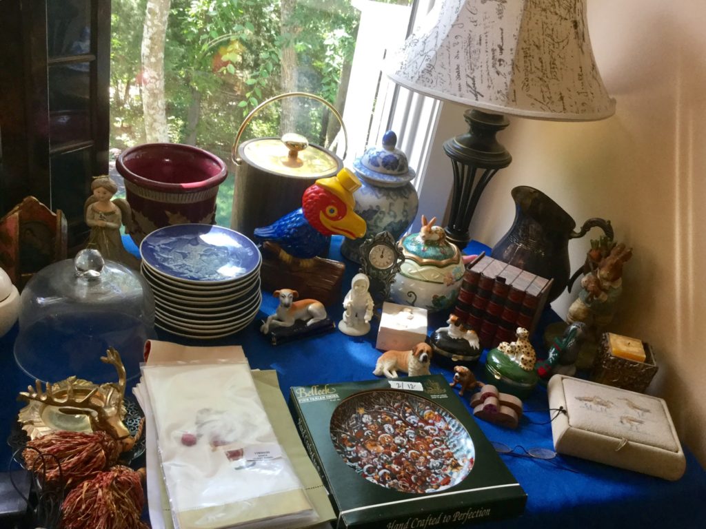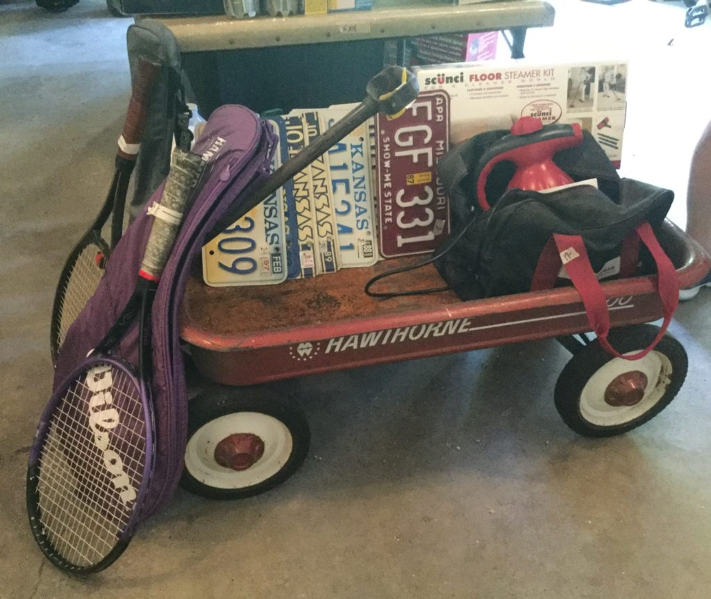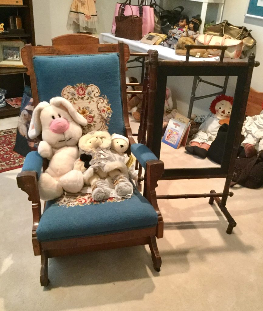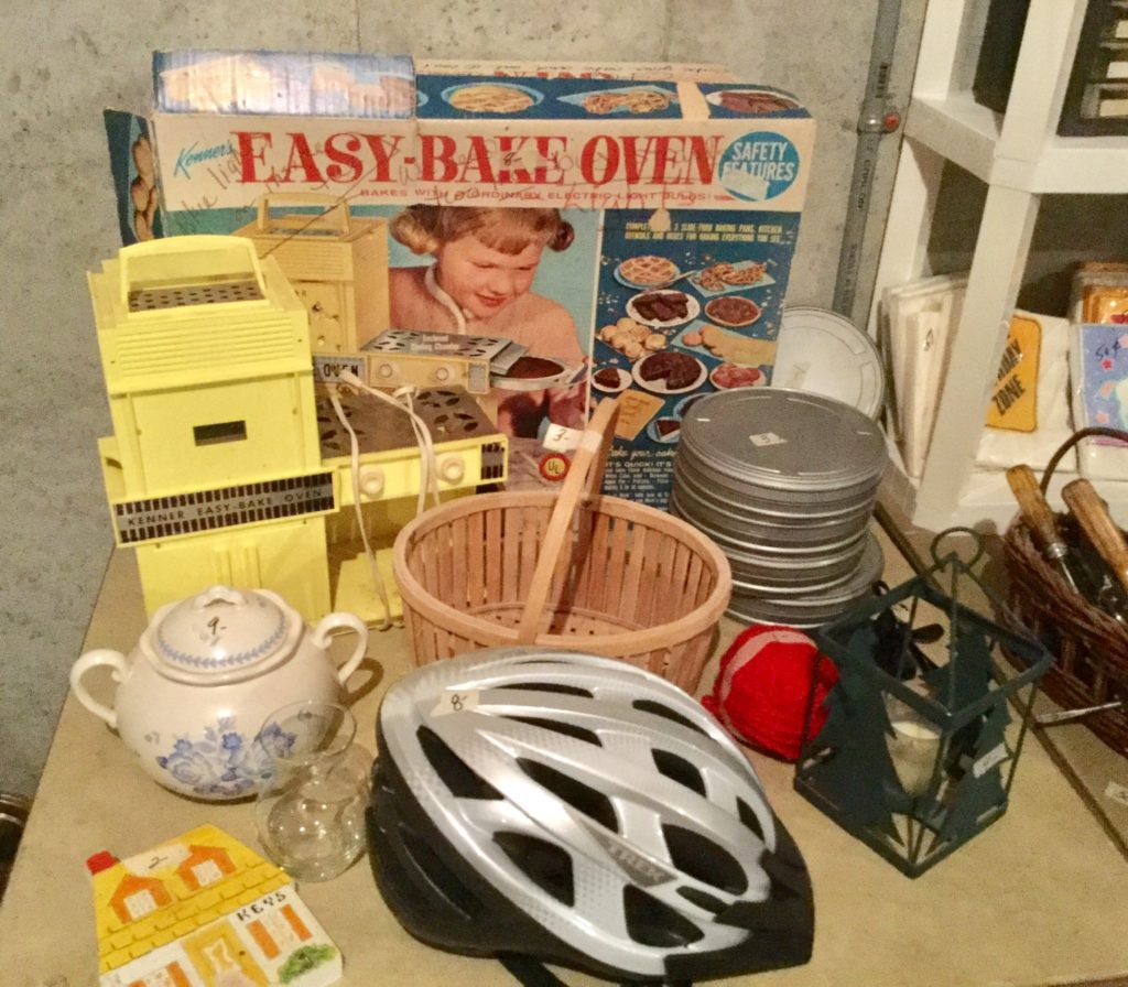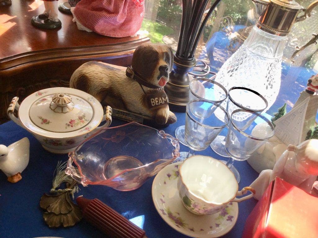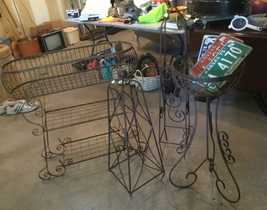Good selection of older dolls, many handbags, antique needlepoint rocker, many outdoor wrought iron pieces, license plates, basic (but working!) Kenmore washer and dryer …
