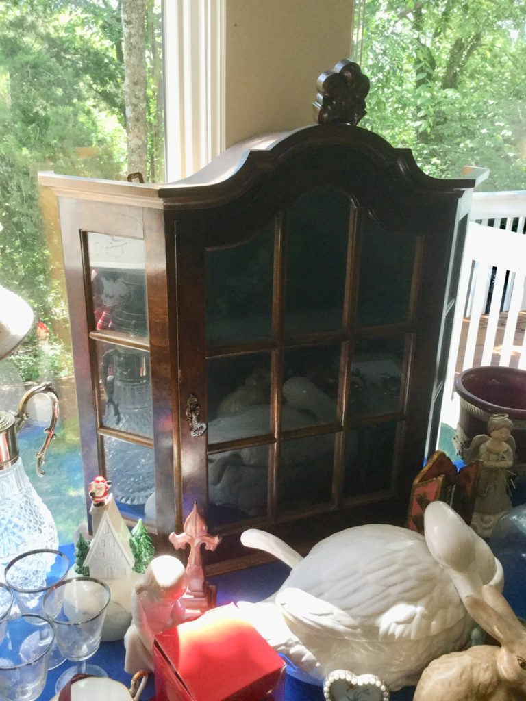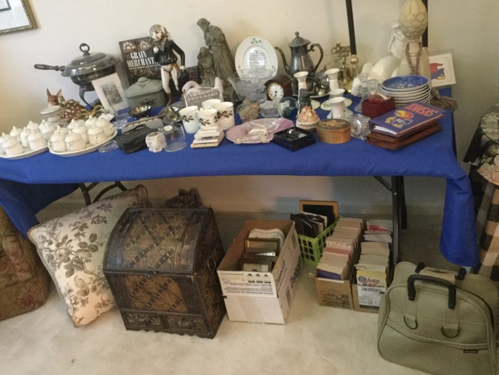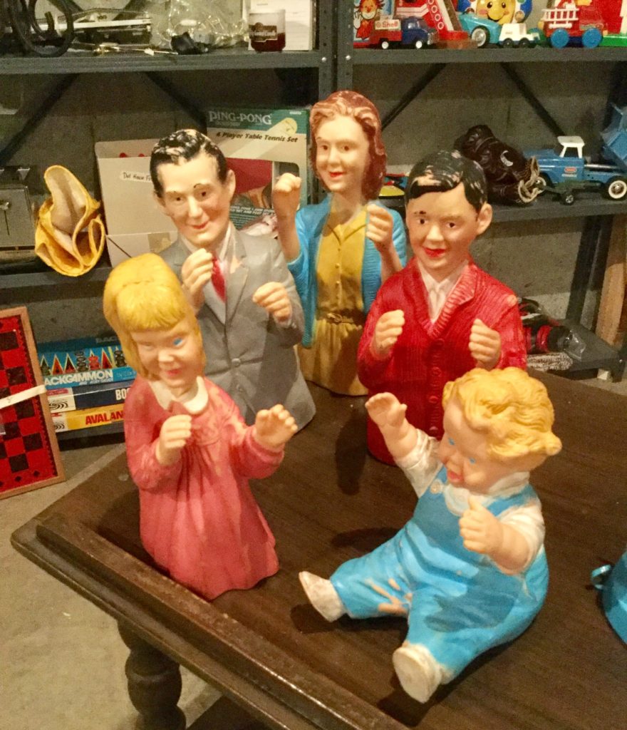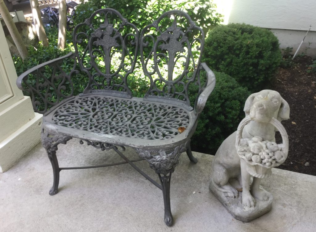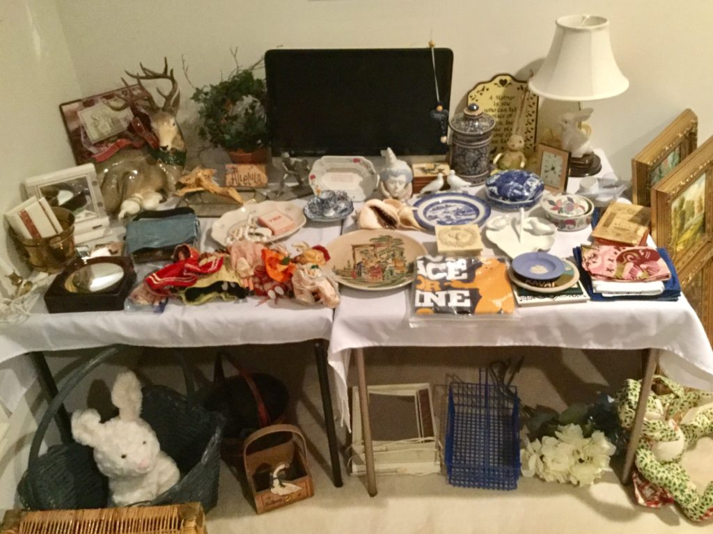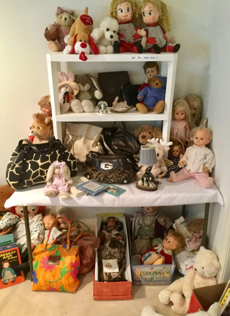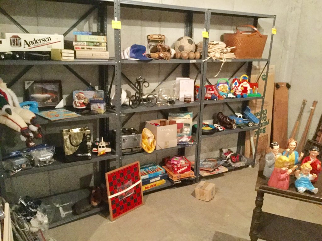 Good selection of older dolls, many handbags, antique needlepoint rocker, many outdoor wrought iron pieces, license plates, basic (but working!) Kenmore washer and dryer …