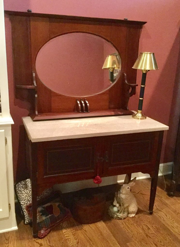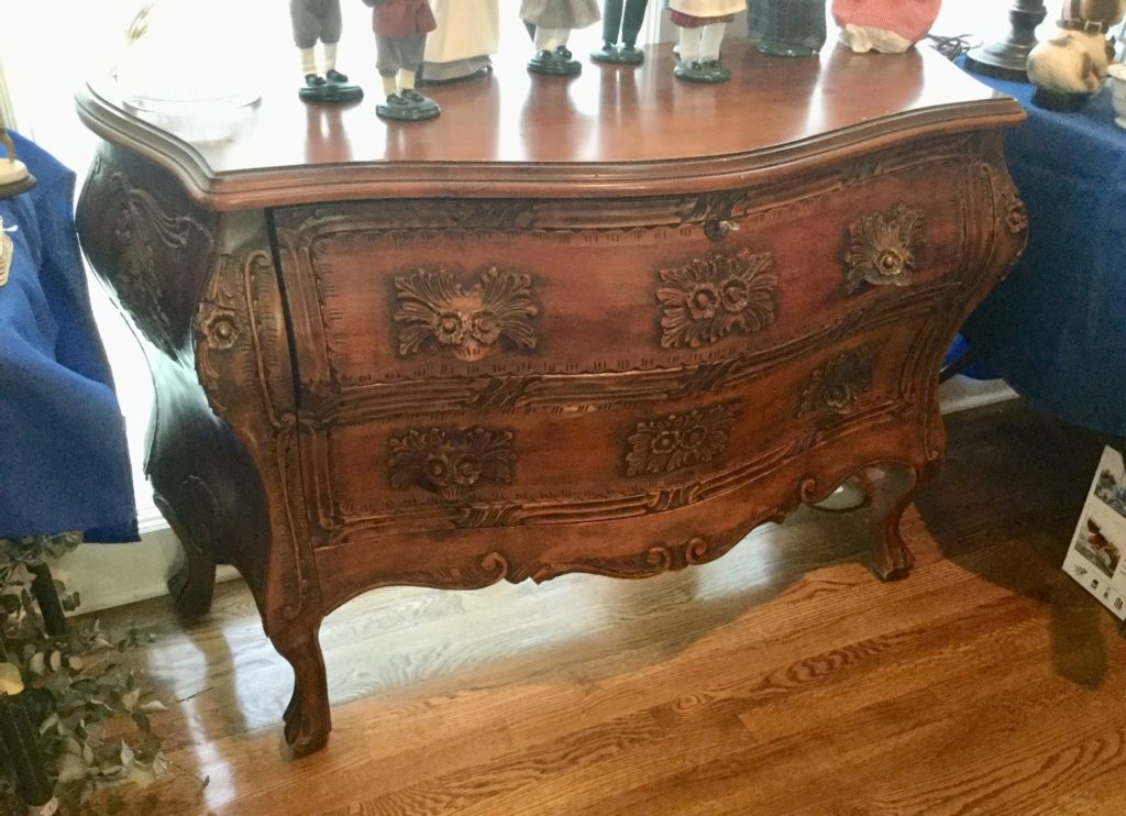 Lane sofa/wall table, fabulous antique armoire, stone top table with oval beveled mirror top, many-many antique chests of drawers, Bombay chest …