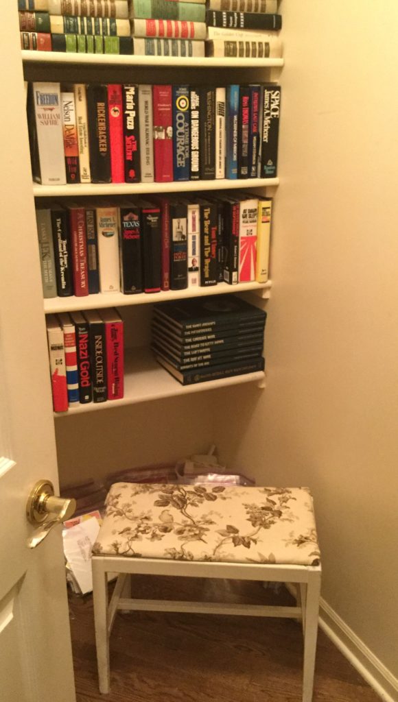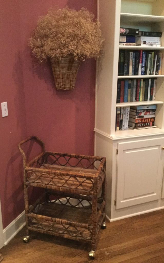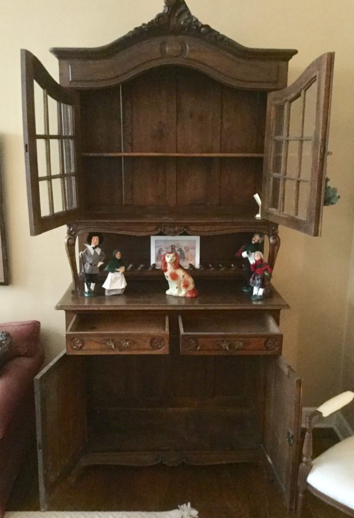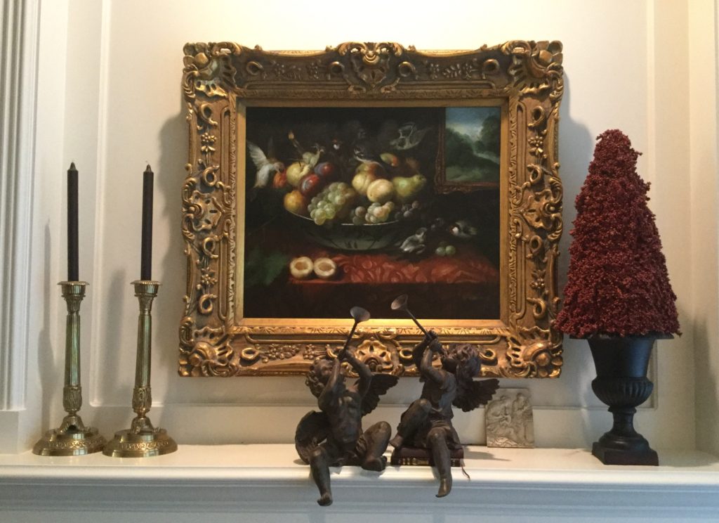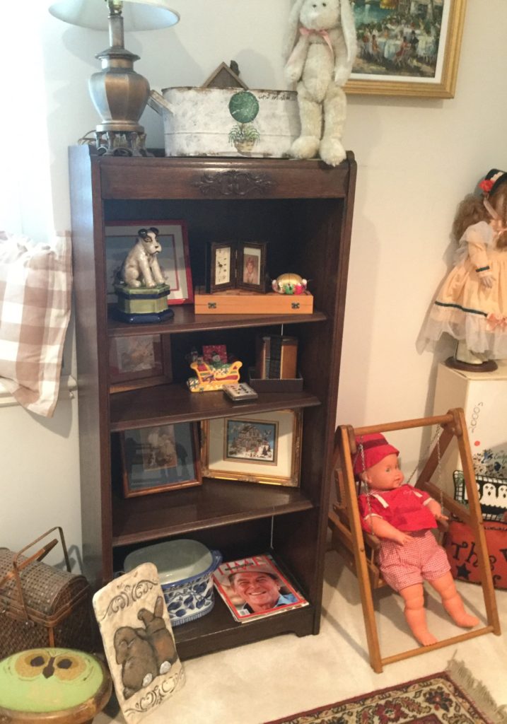 BOOOOOOKS! SO much framed artwork, 13 Byers Carolers, home décor GAAA-LORE (like seriously.), pretty 4-panel wall screen, Roos cedar chest, Toile side chair …
