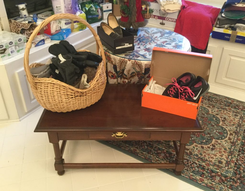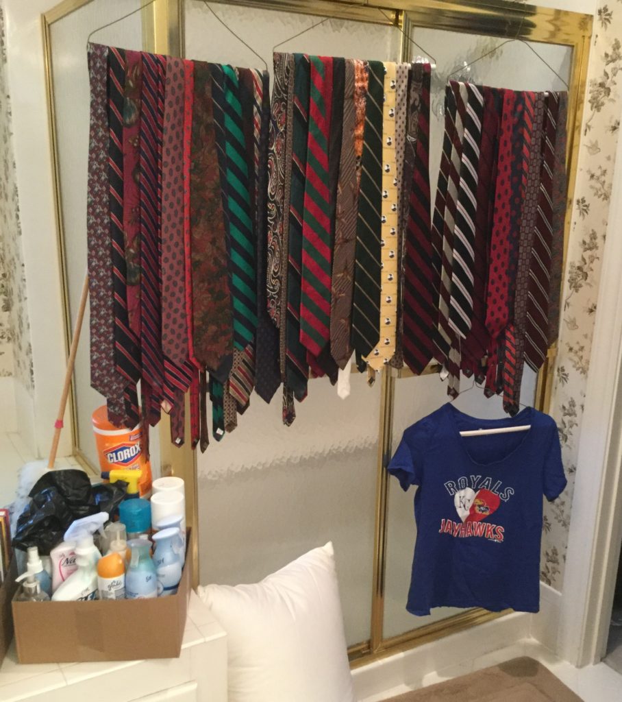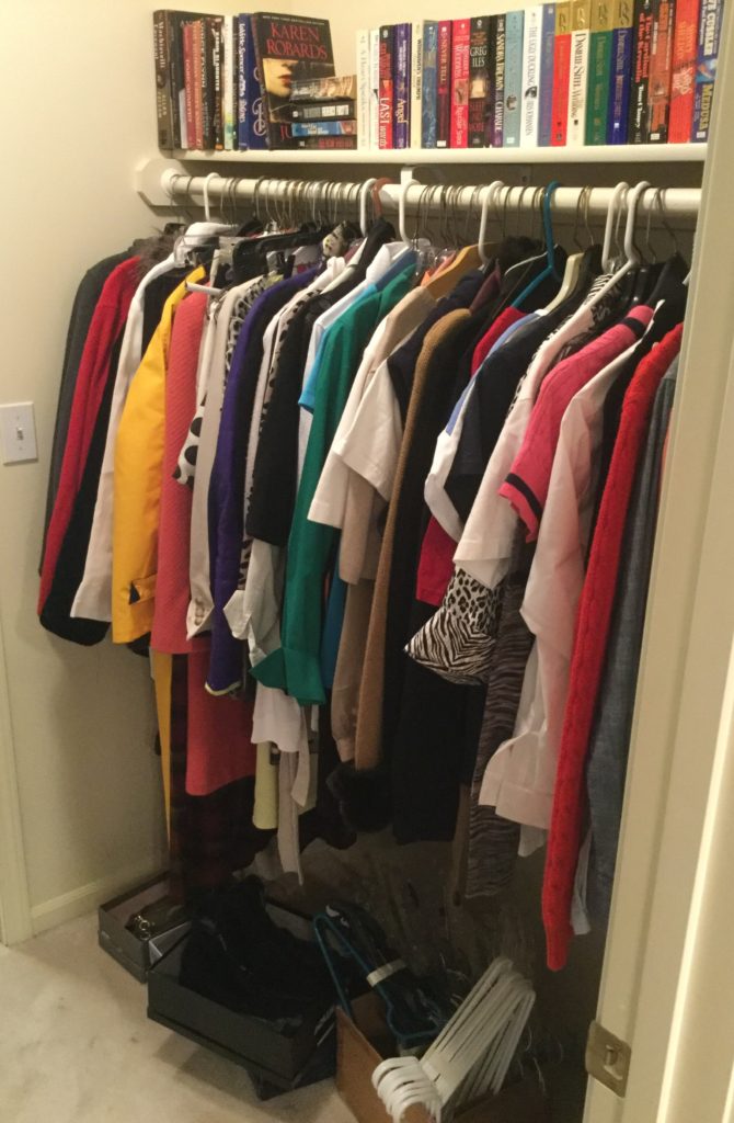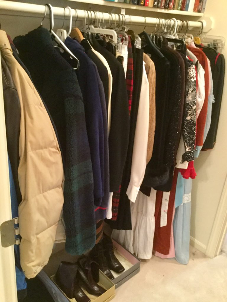 2 HUGE walk-in closets FULLfullFULL of nicenice women’s (sz 6-10) and men’s clothing (L-XL) – coats, jackets, dresses, dress-up dresses, KU jackets/coats, neckties, workout, suits lalala … and OVERRR 100 pairs of shoes and boots including newer Uggs, Cole Haan & Nike …