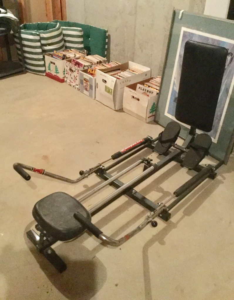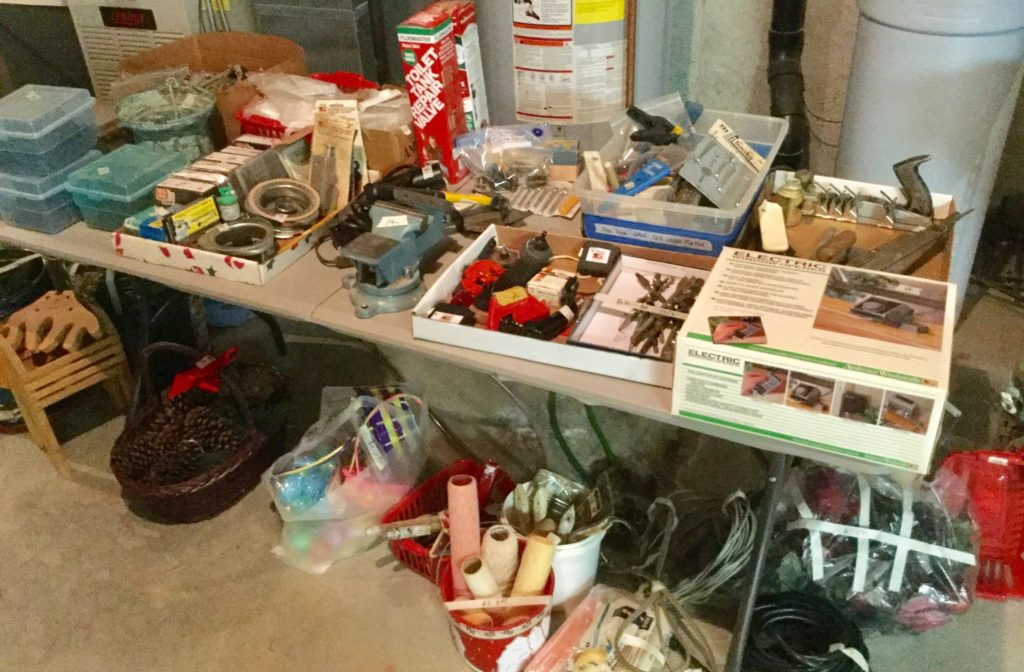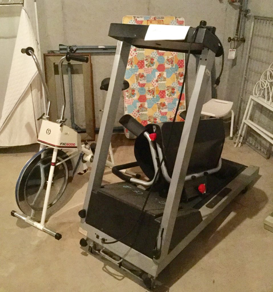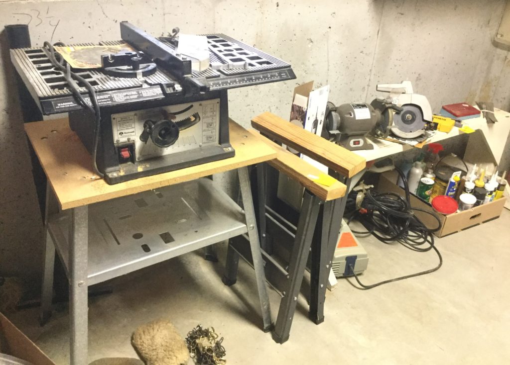 Rockwell table saw, Skil sander, bench grinder, B&D circular saw, sawhorses, hand tools, painting supplies, luggage, Cadence treadmill, DP Bodytone 300, Healthrider ABS, some older toys, train set, …