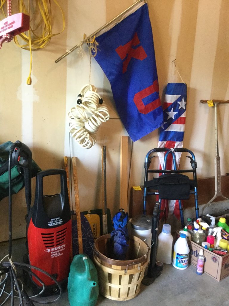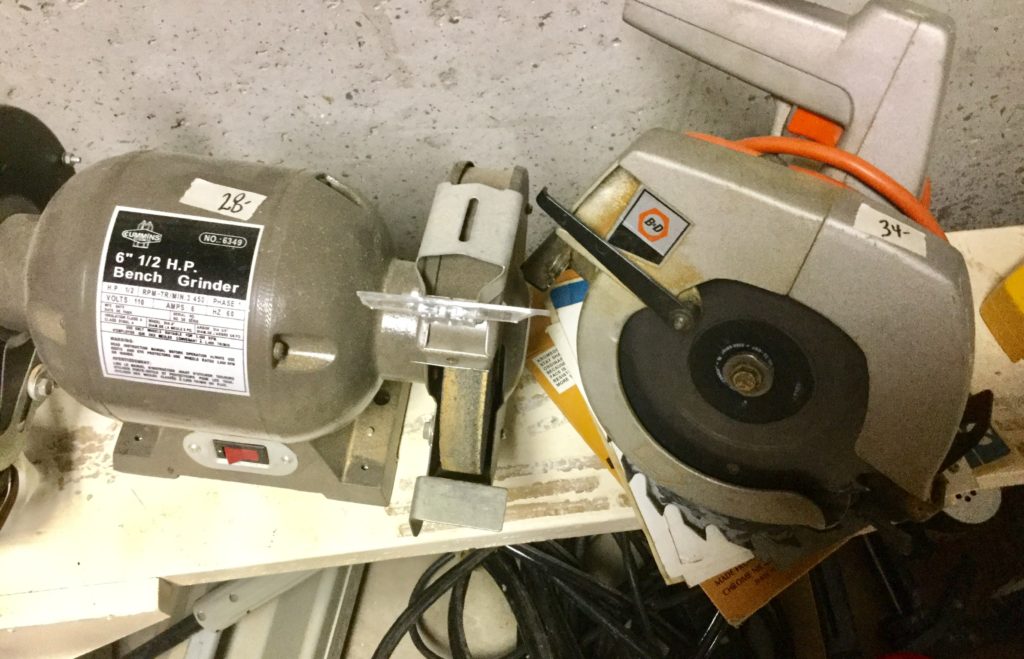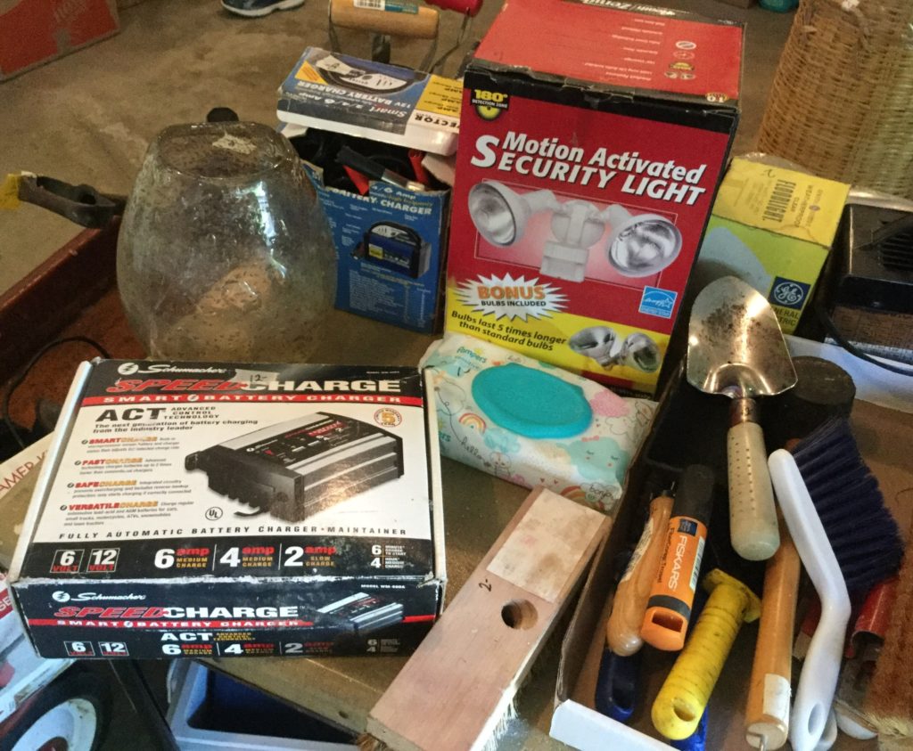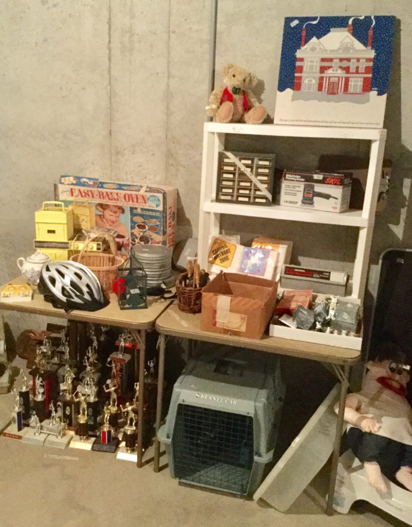 Rockwell table saw, Skil sander, bench grinder, B&D circular saw, sawhorses, hand tools, painting supplies, luggage, Cadence treadmill, DP Bodytone 300, Healthrider ABS, some older toys, train set, …