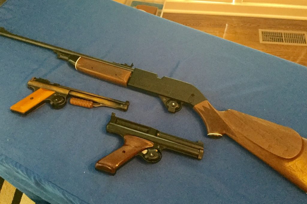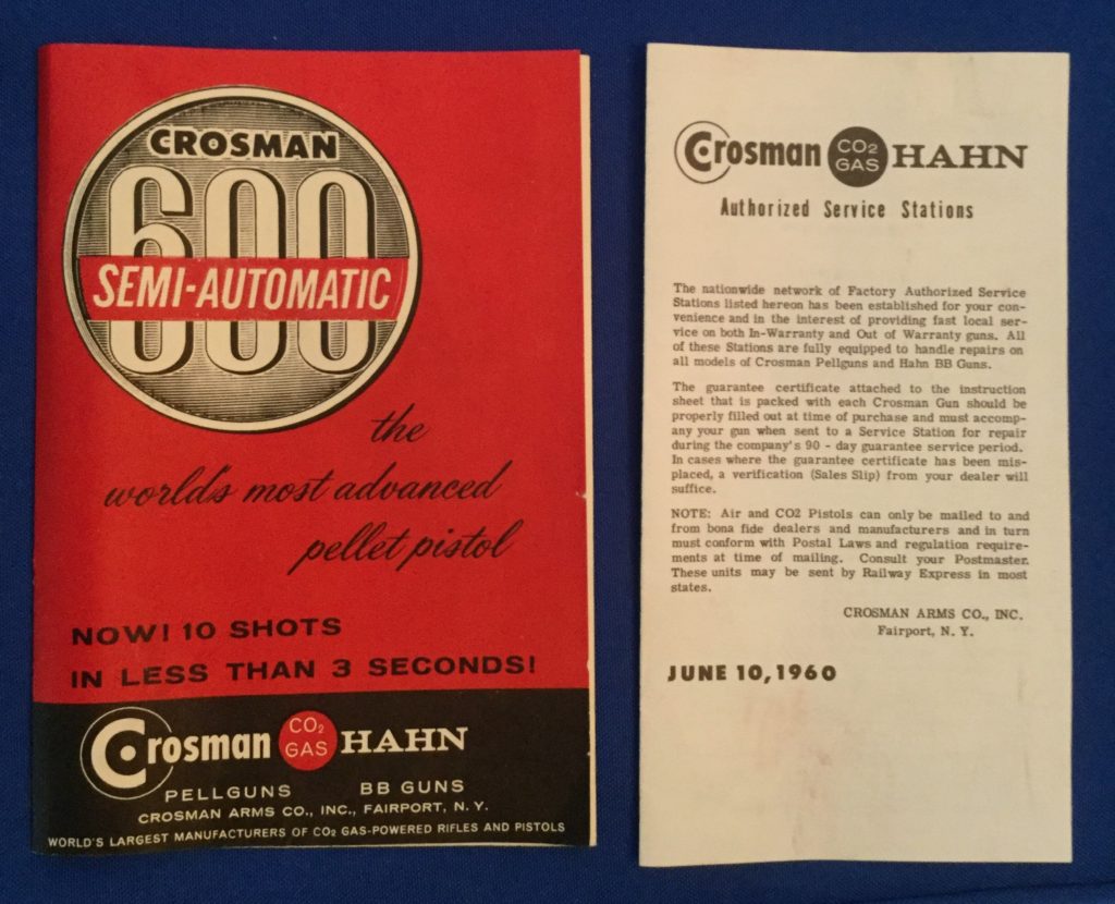 Vintage Crossman 600 semi-automatic pellet pistol, another pellet pistol with no name and a vintage Crossman AirGun …
